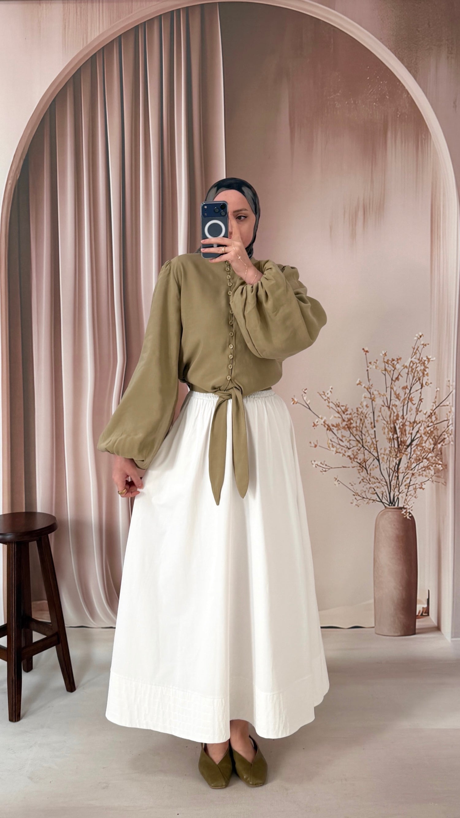 Britli Balon Kol Bel Bağlamalı Cupra Gömlek Ekru
