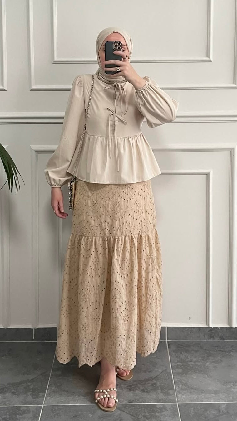 %100 Pamuklu Brode etek Bej
