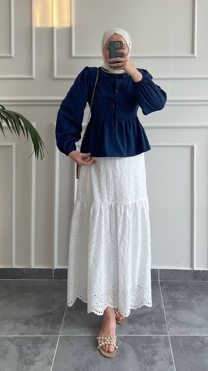 % 100 Pamuklu Brode Etek Beyaz
