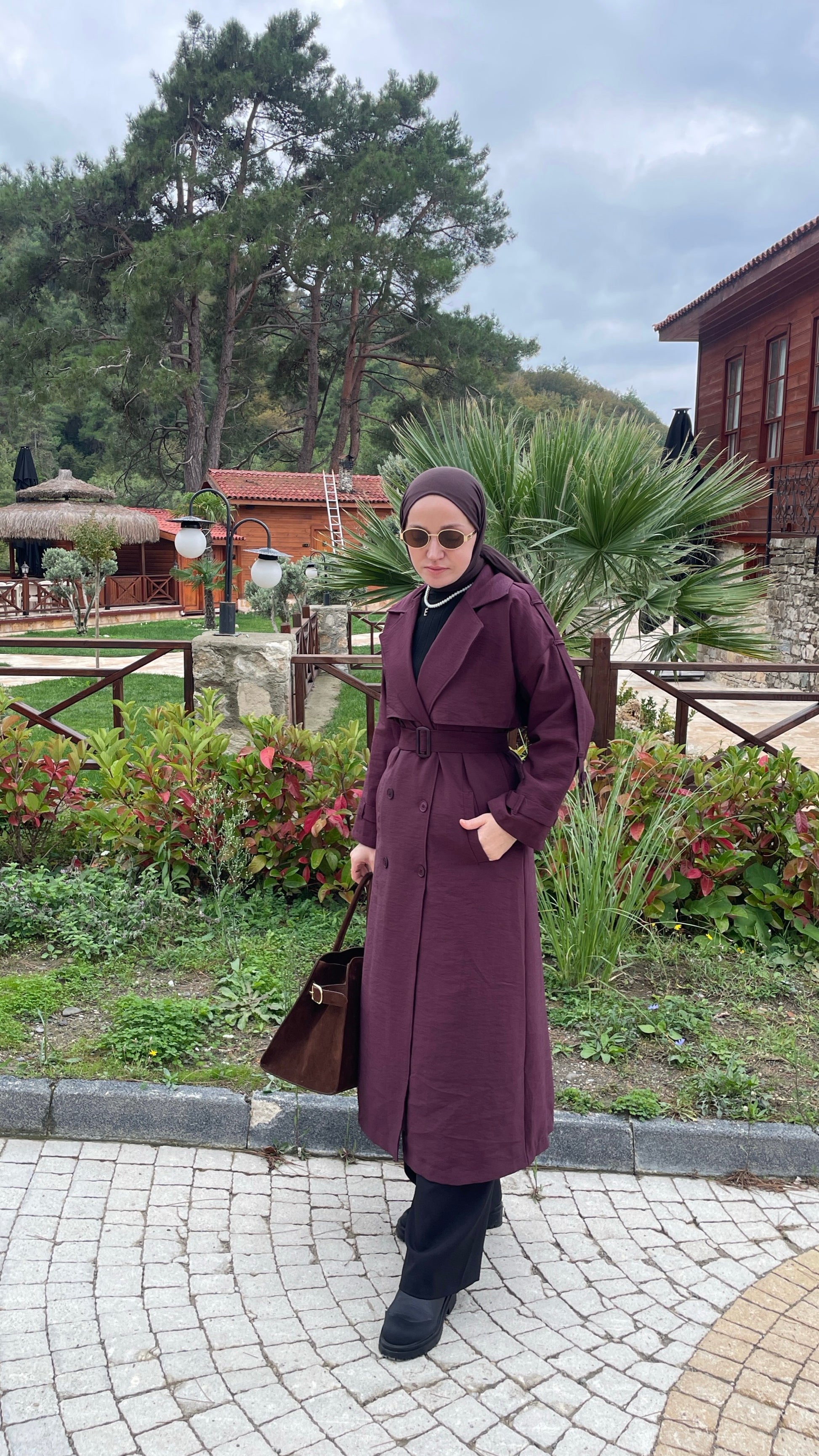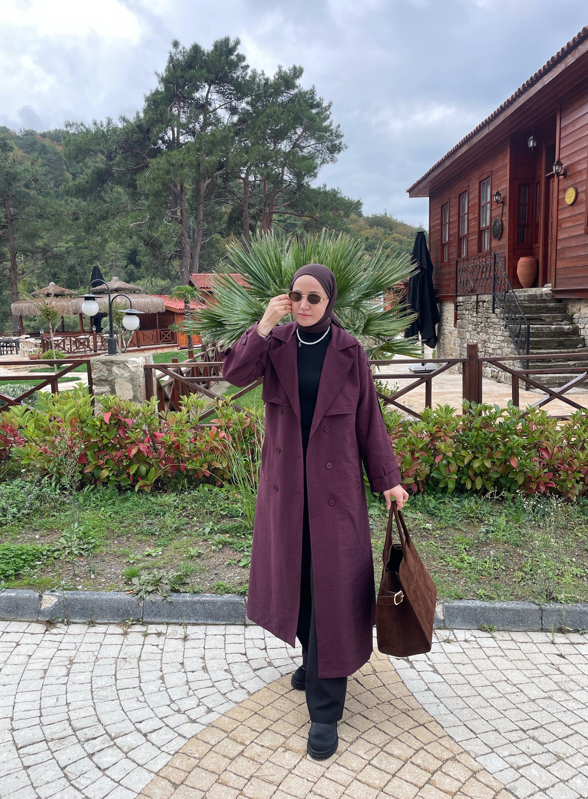 Apoletli ASTARLI Premium Trençkot Bordo