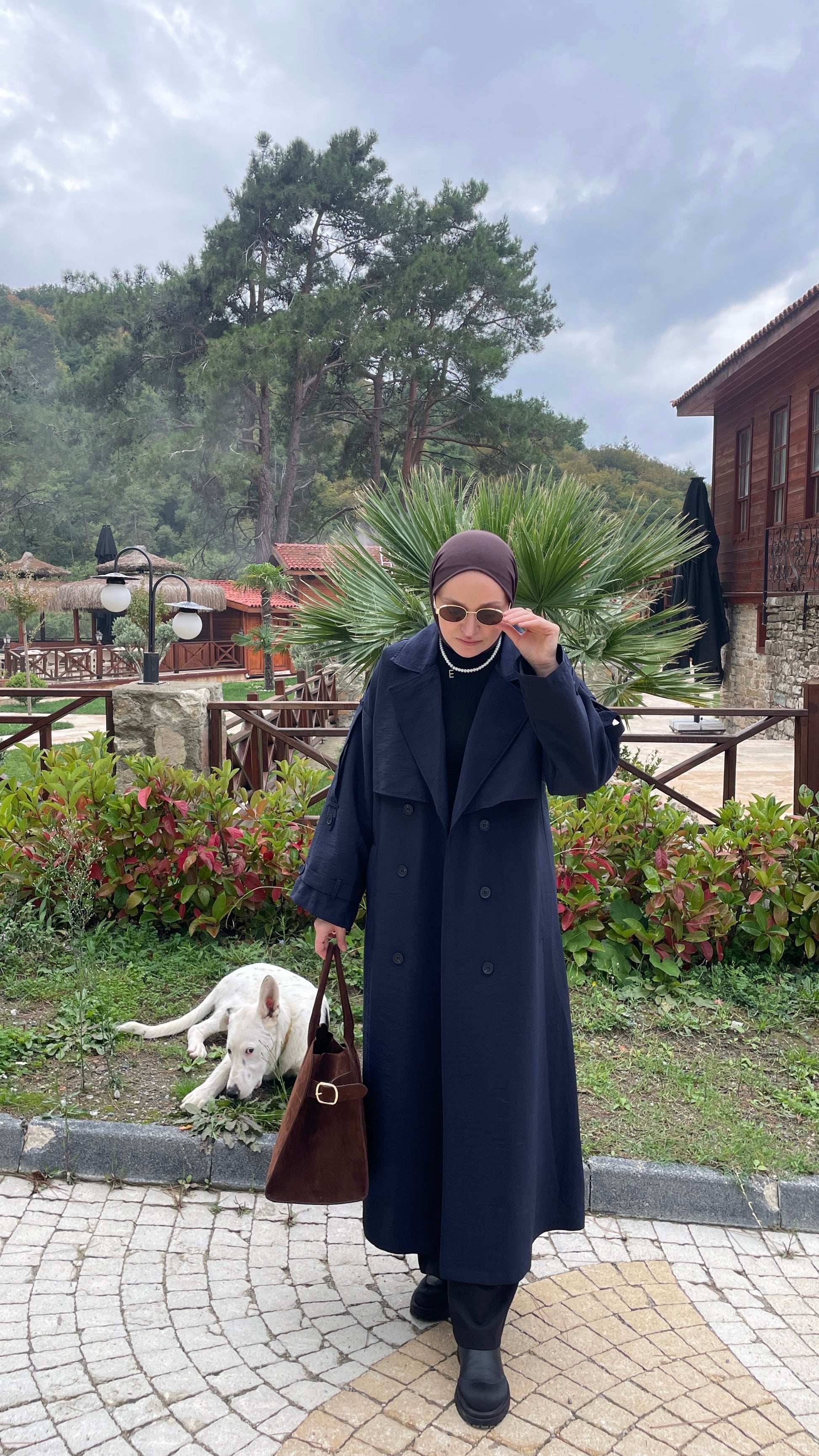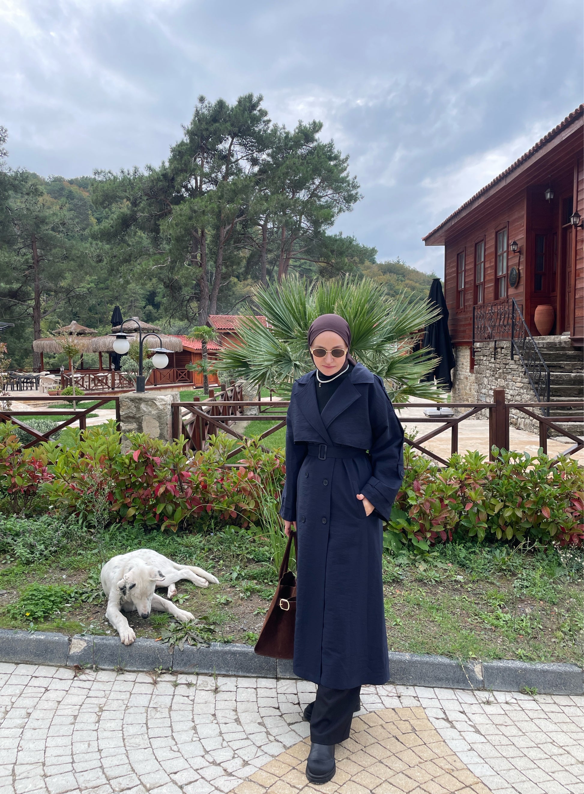Apoletli ASTARLI Premium Trençkot Lacivert