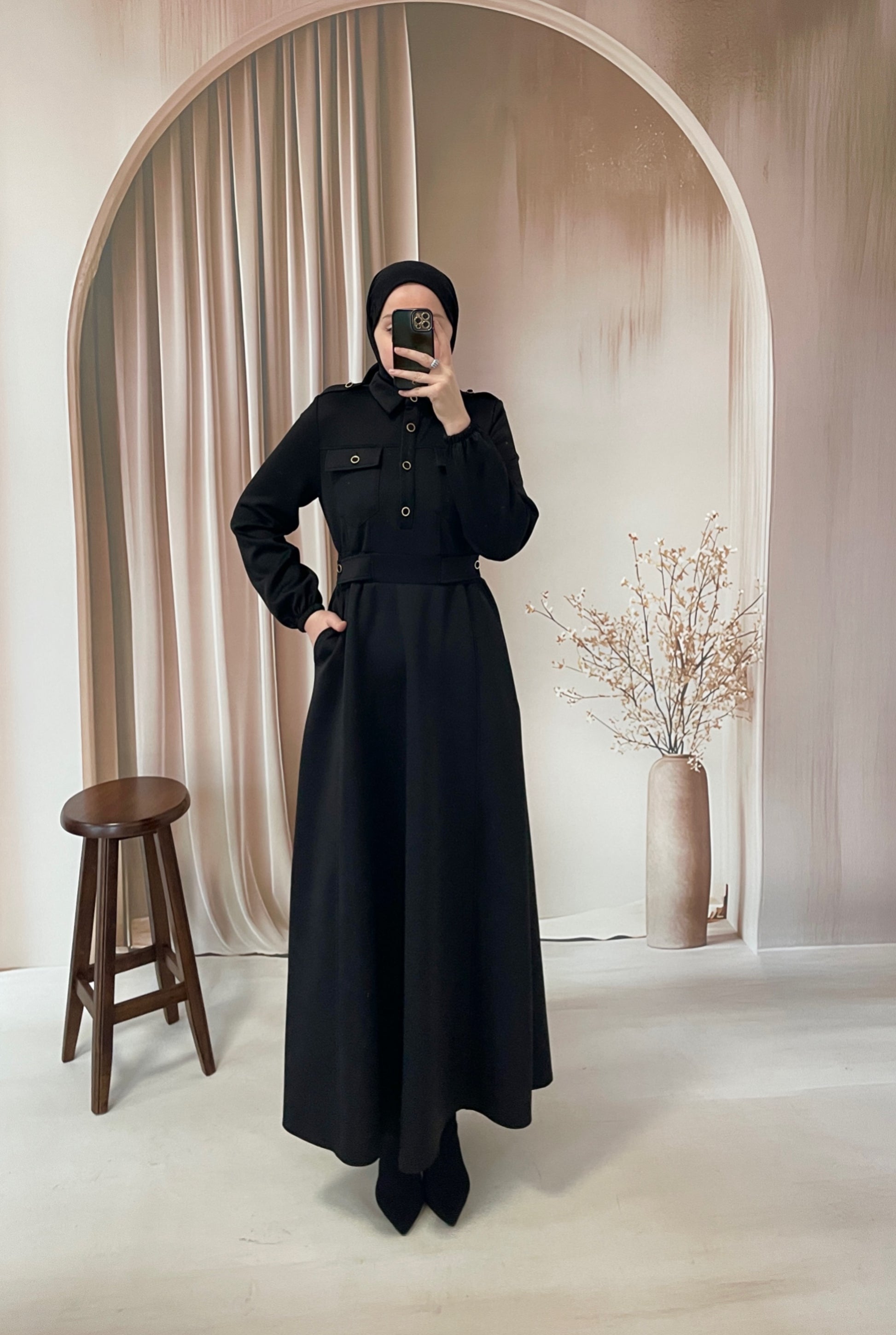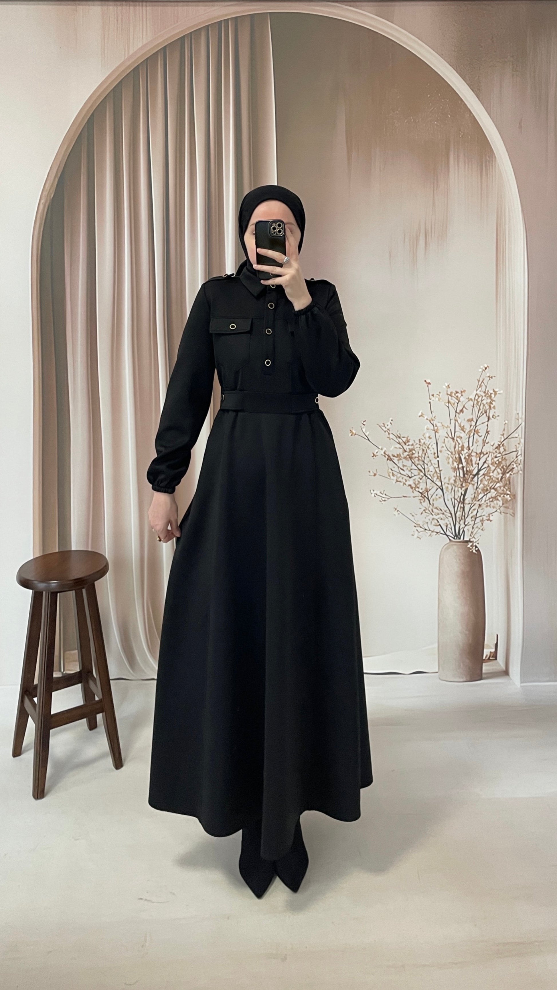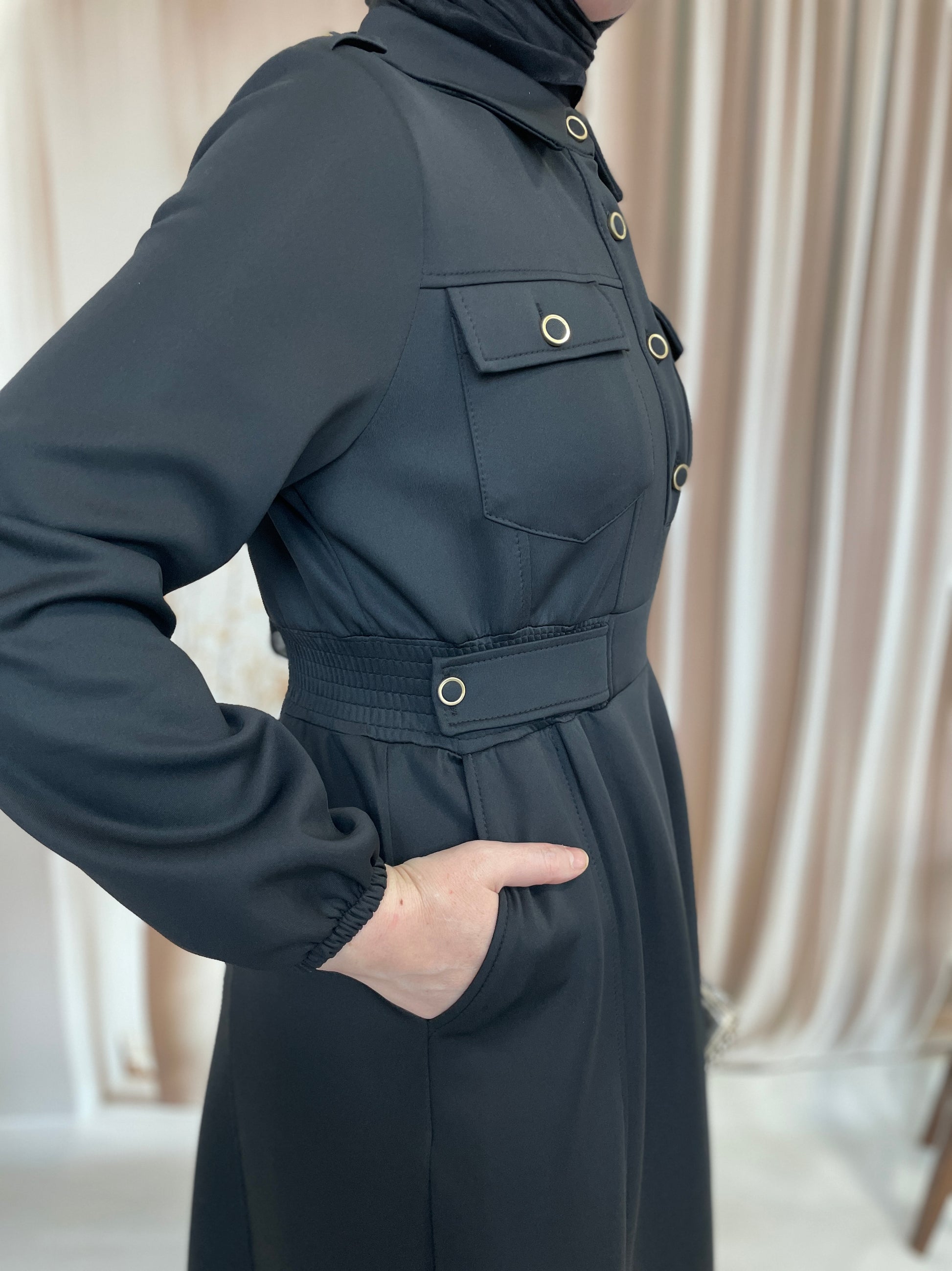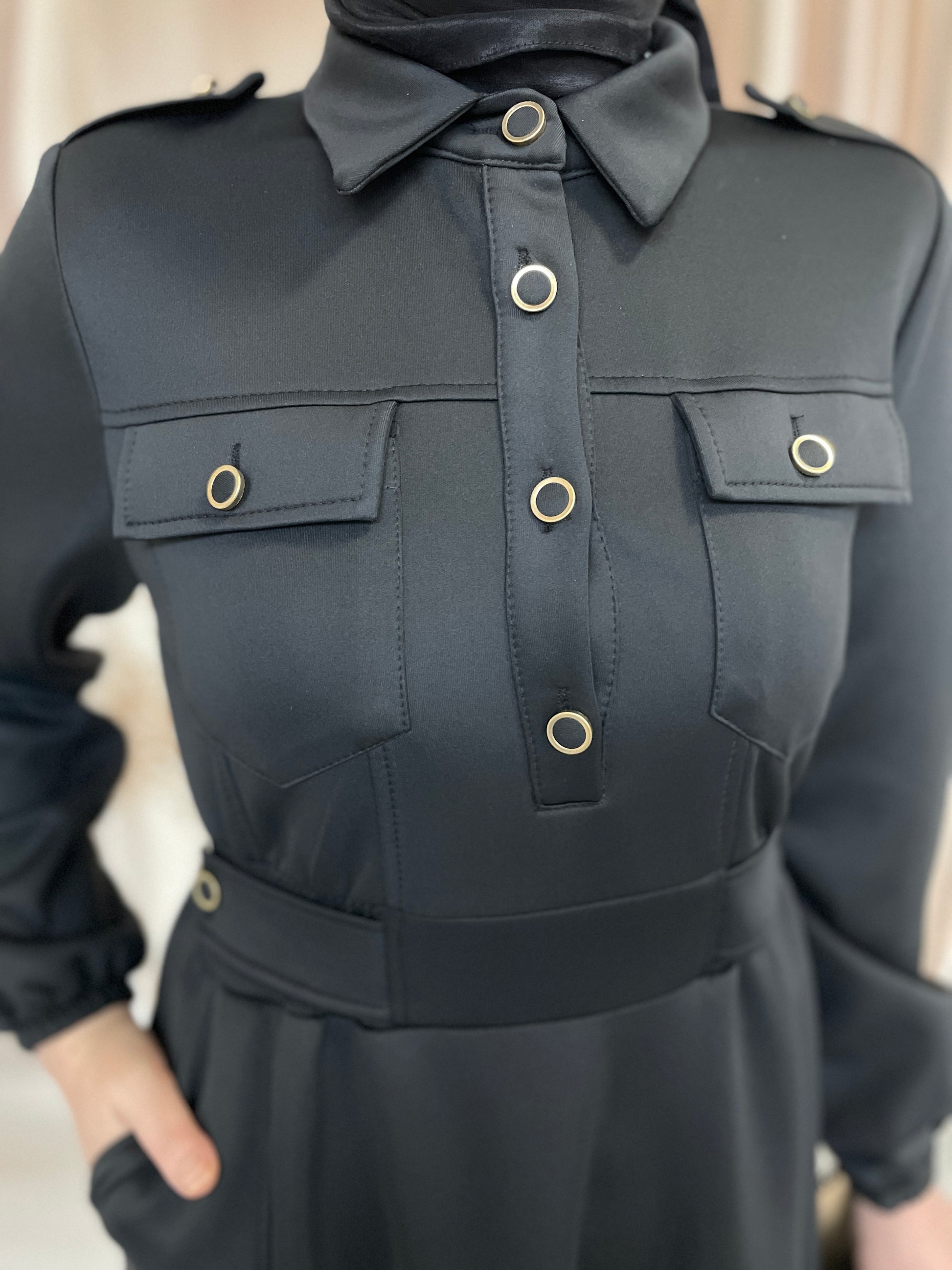 Apoletli Premium Scuba Elbise Siyah