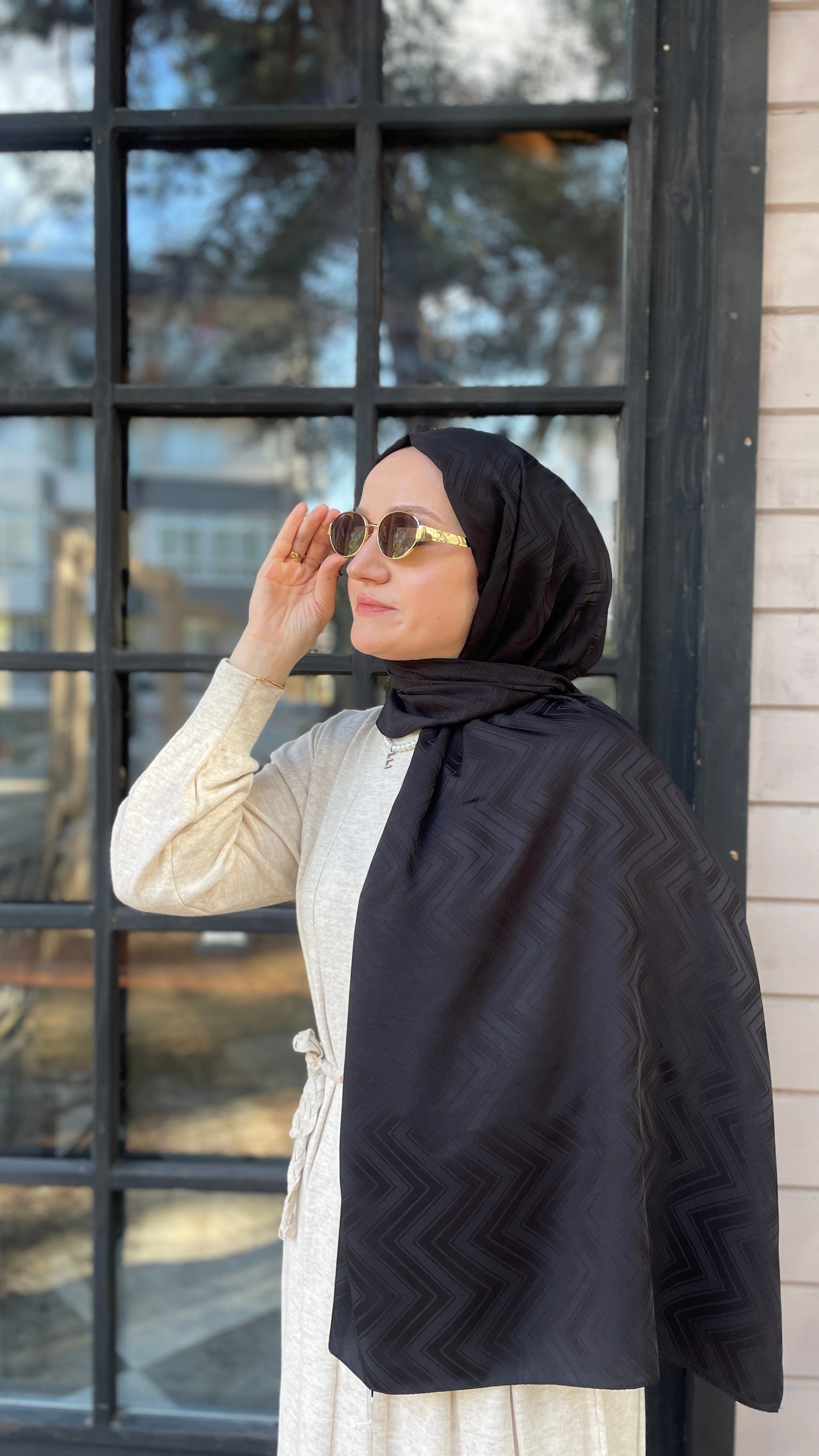 İpeksi Jakar Zikzak Desen Şal Siyah