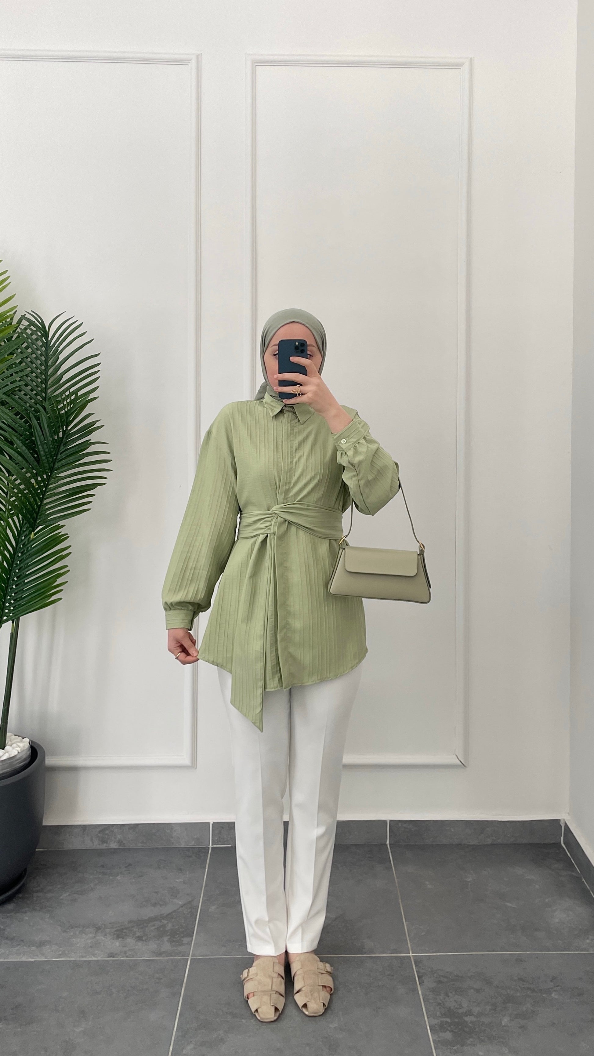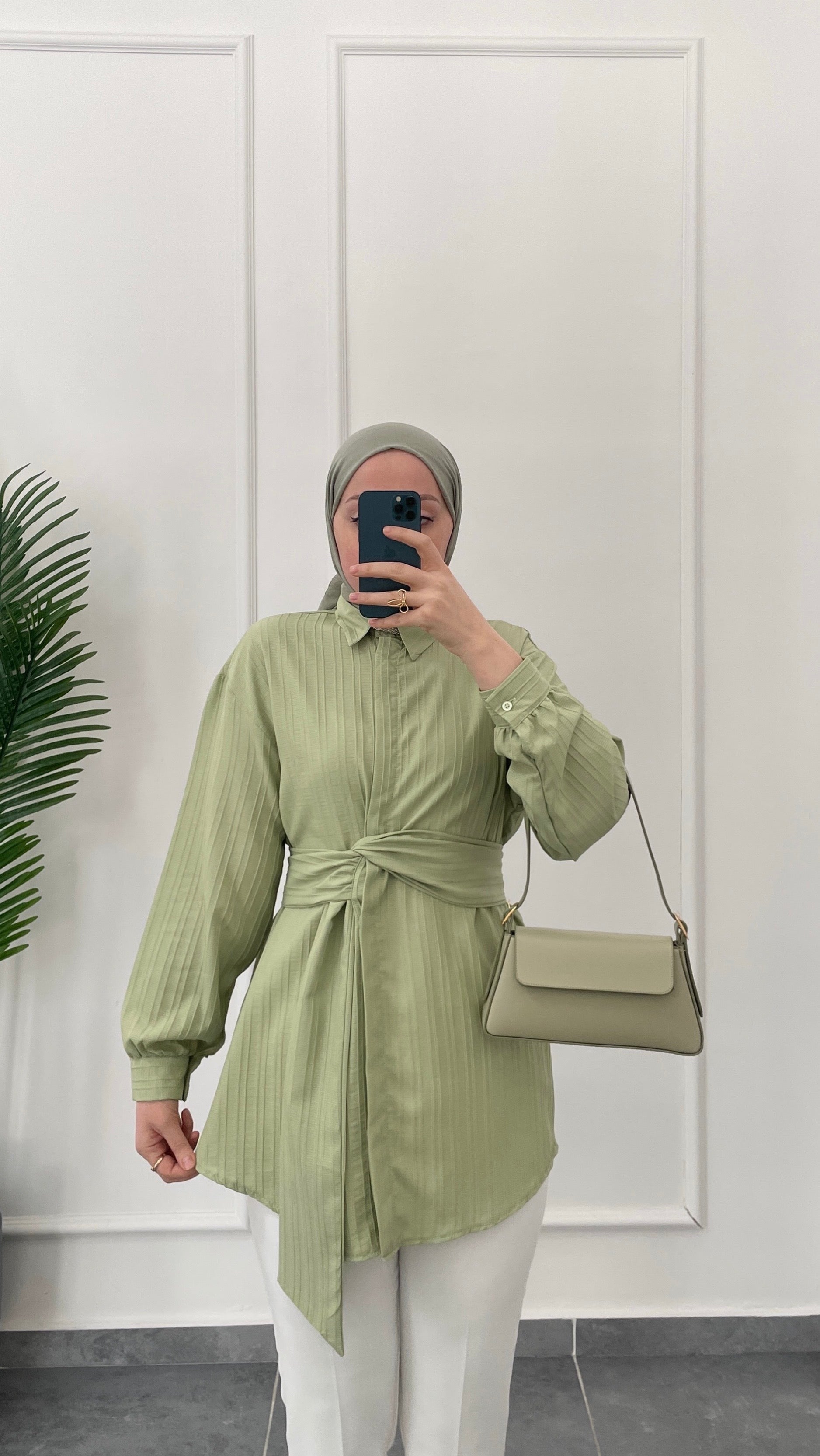 Bel Bağlama Tasarım Gömlek-Çağla