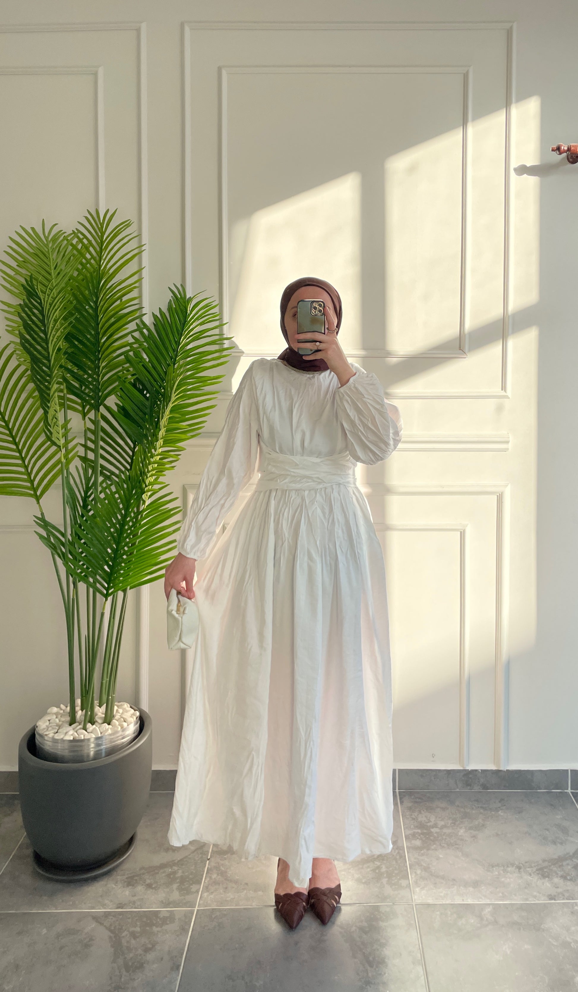 Bel Bağlamalı Kraş Elbise-Beyaz