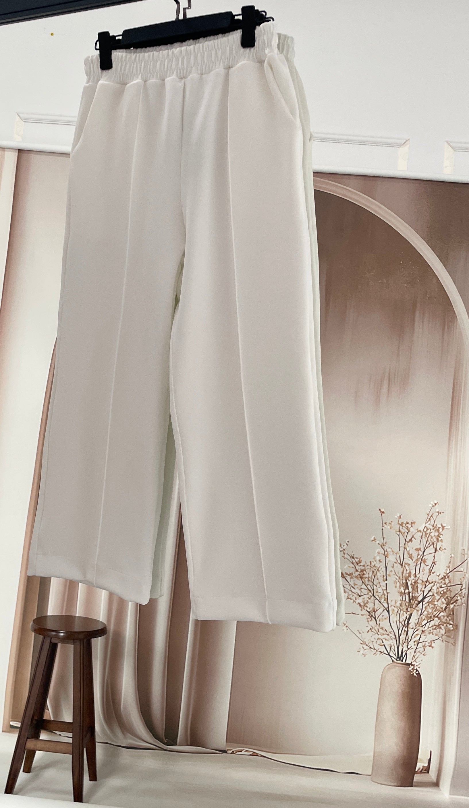 Bilek Boy Çımalı Scuba Palazzo Beyaz