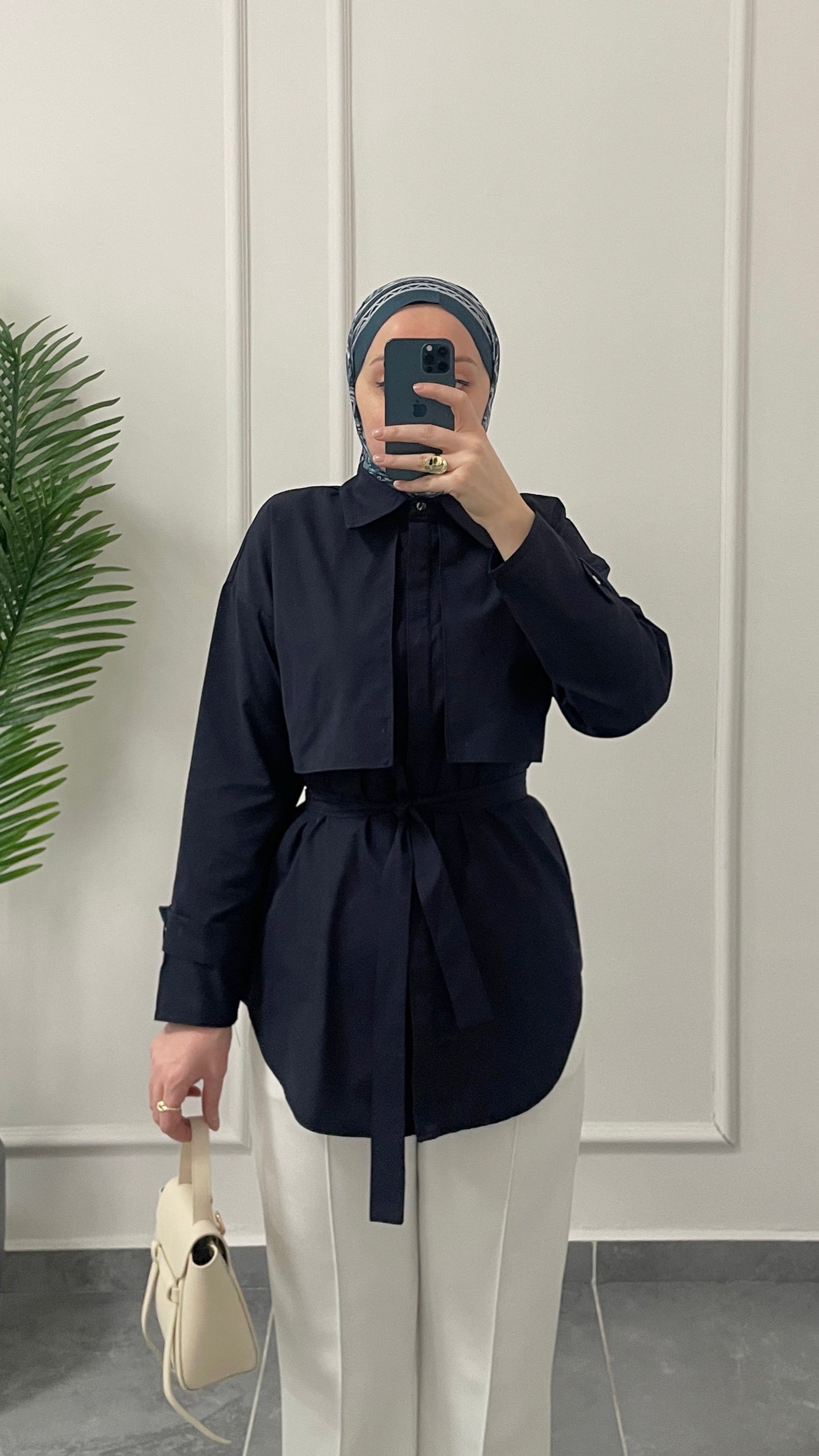 Ceket Tasarım Poplin Gömlek-Lacivert