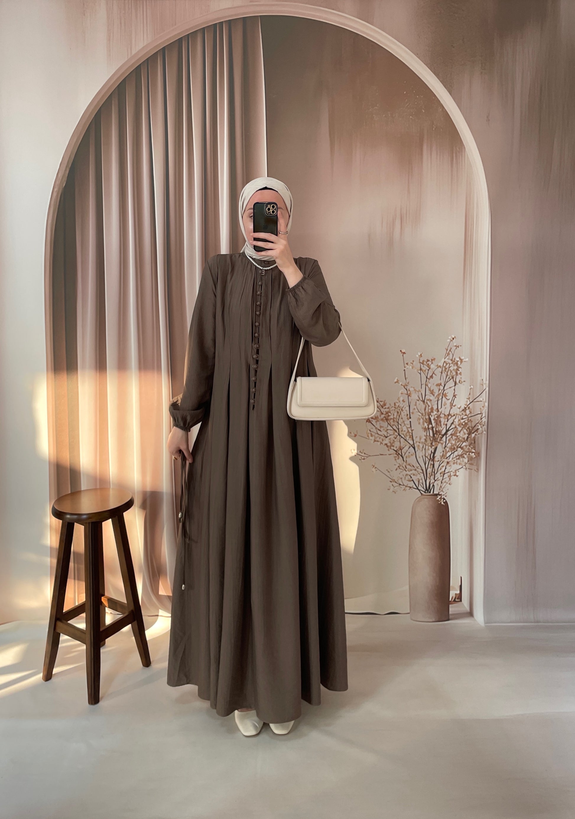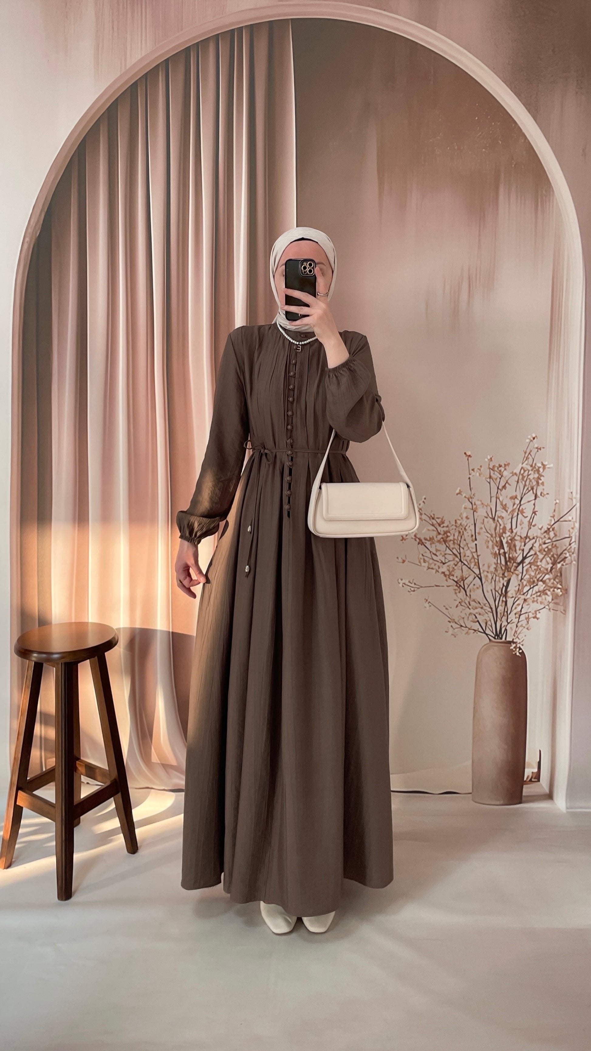 Çilek Kumaş Britli Elbise Boz kahve