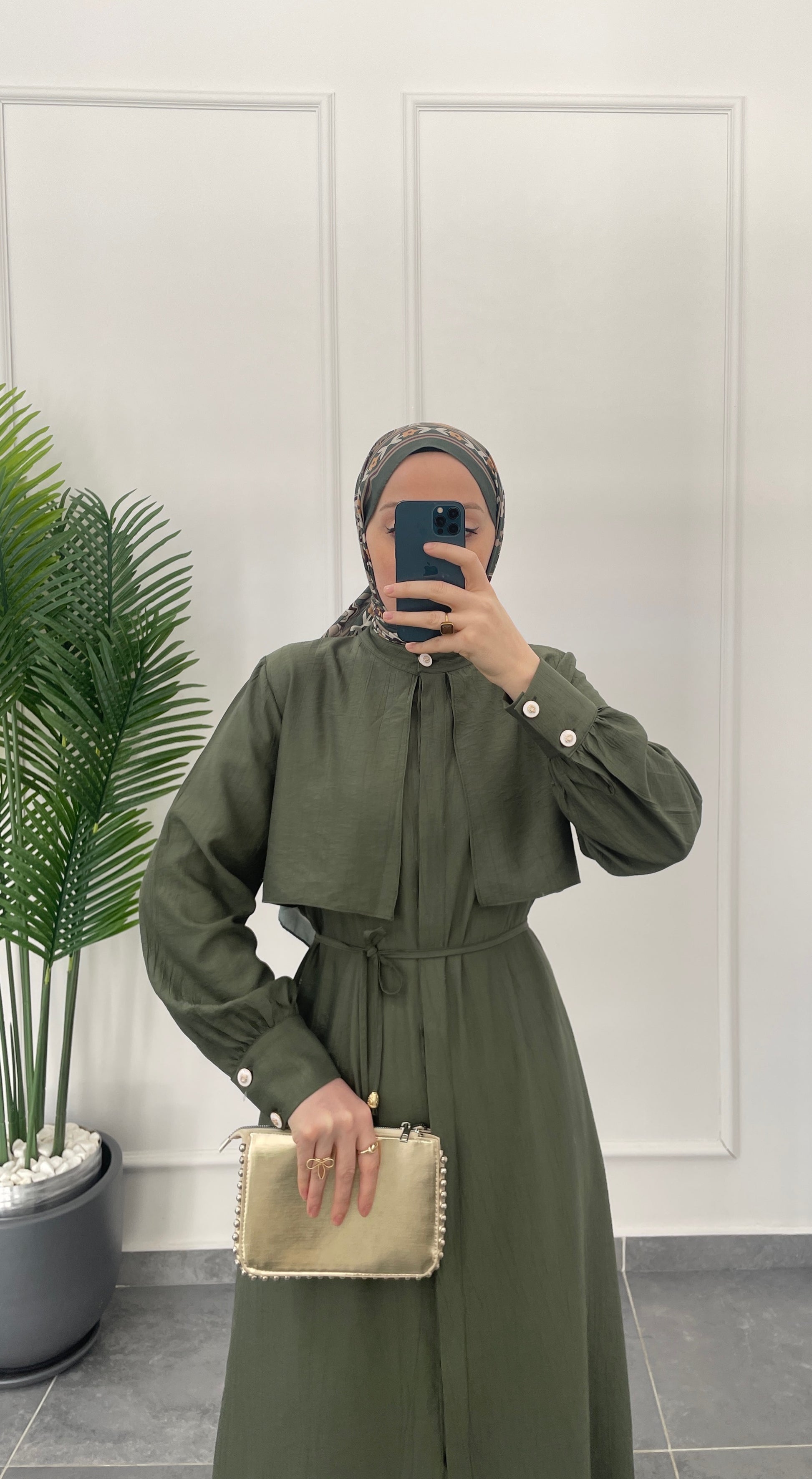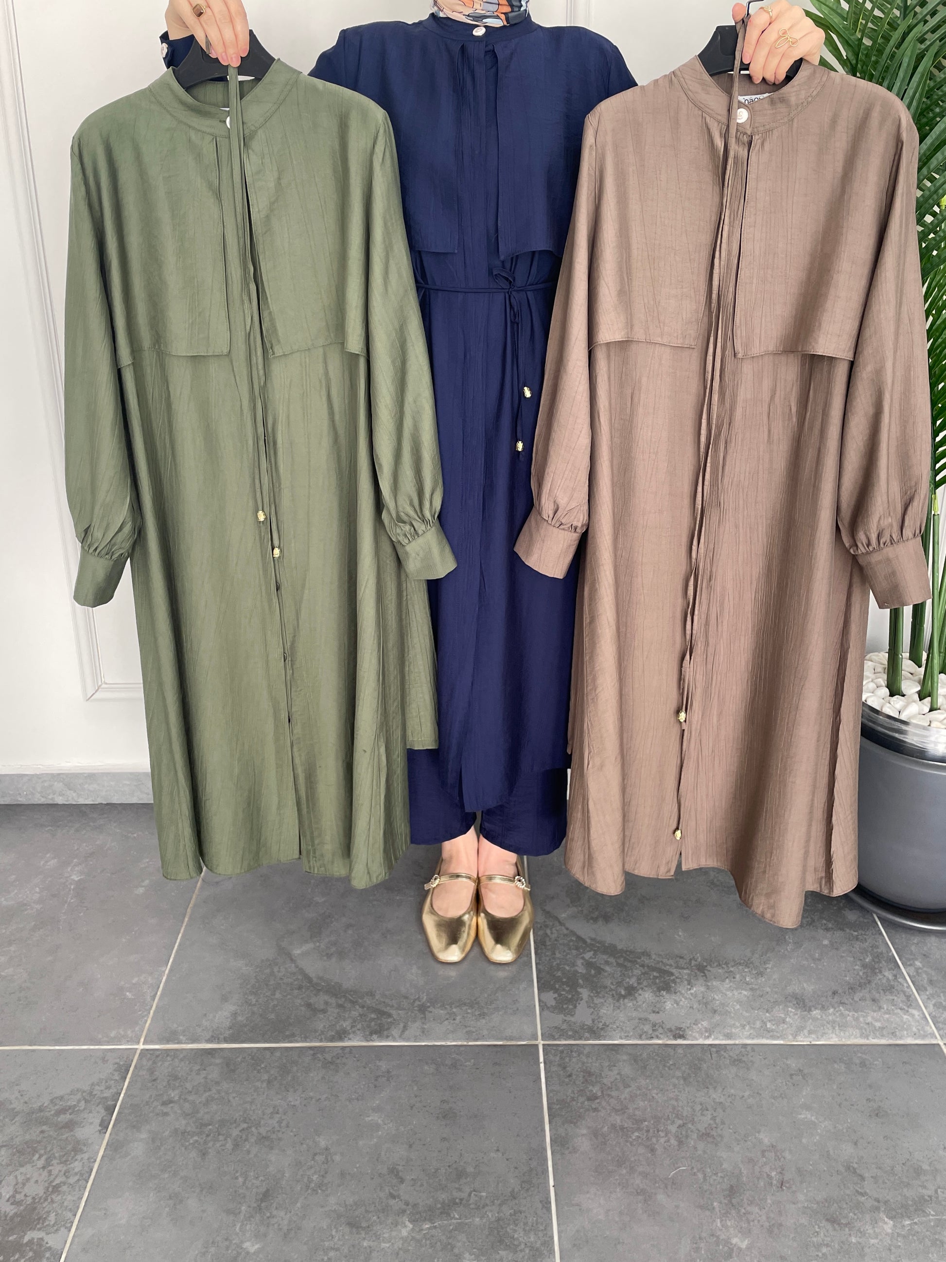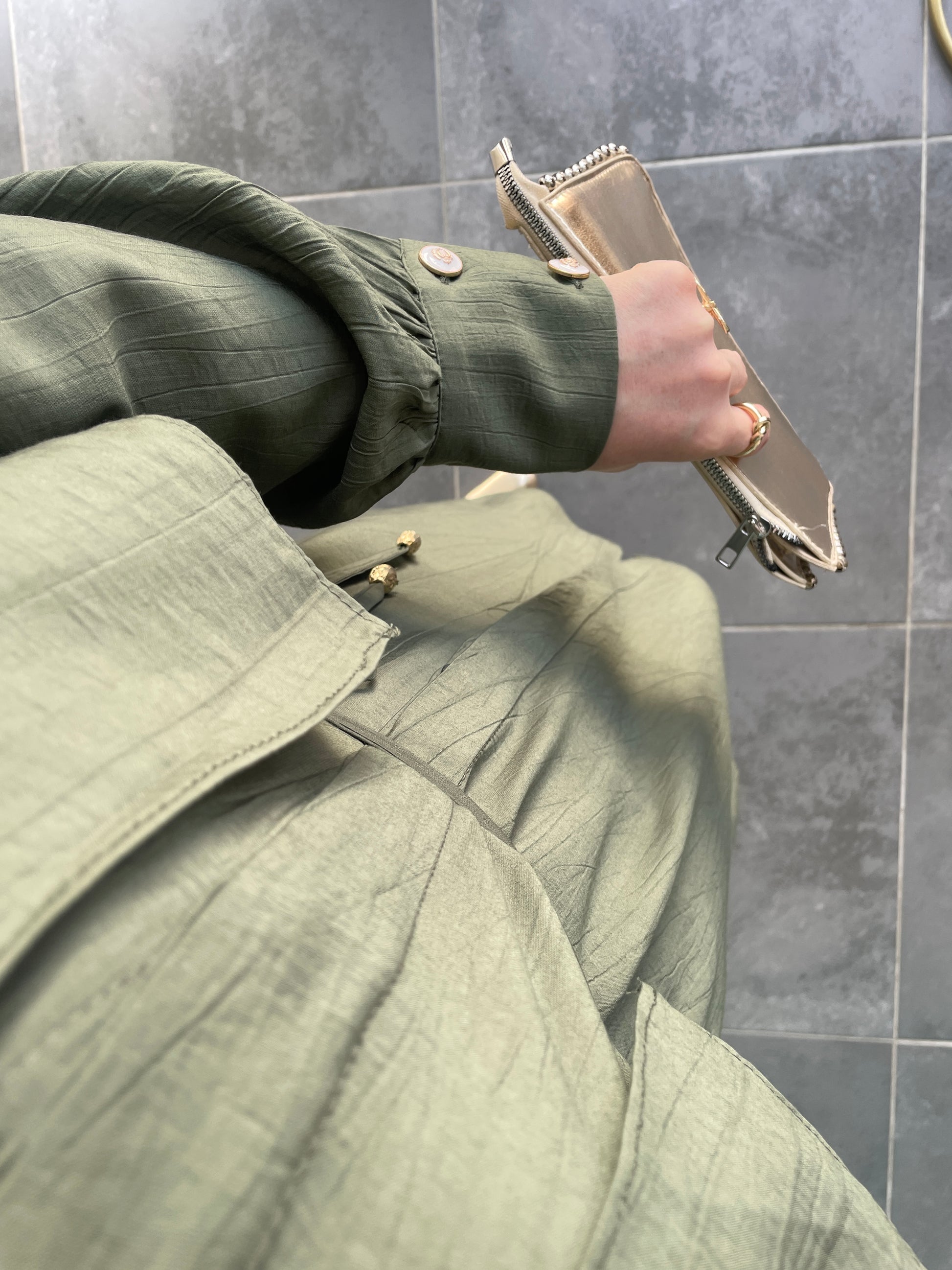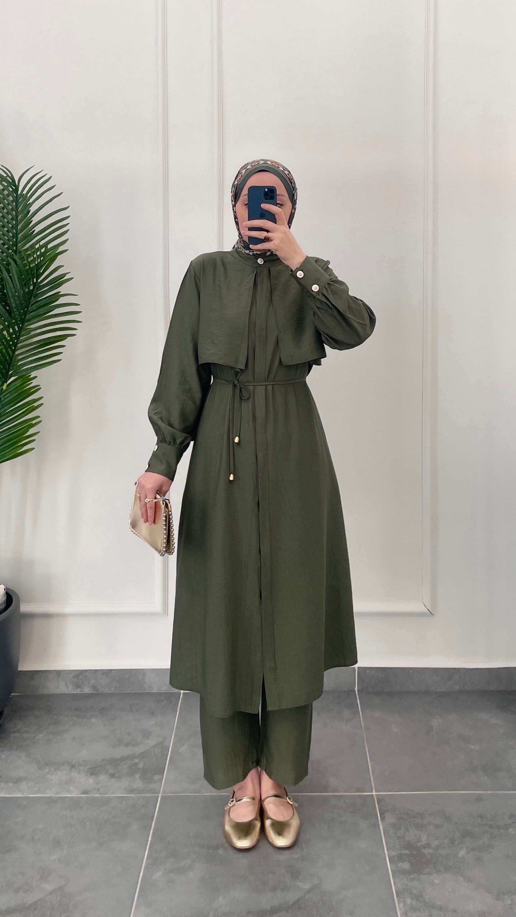 Çilek Kumaş Tunikli Takım-Haki