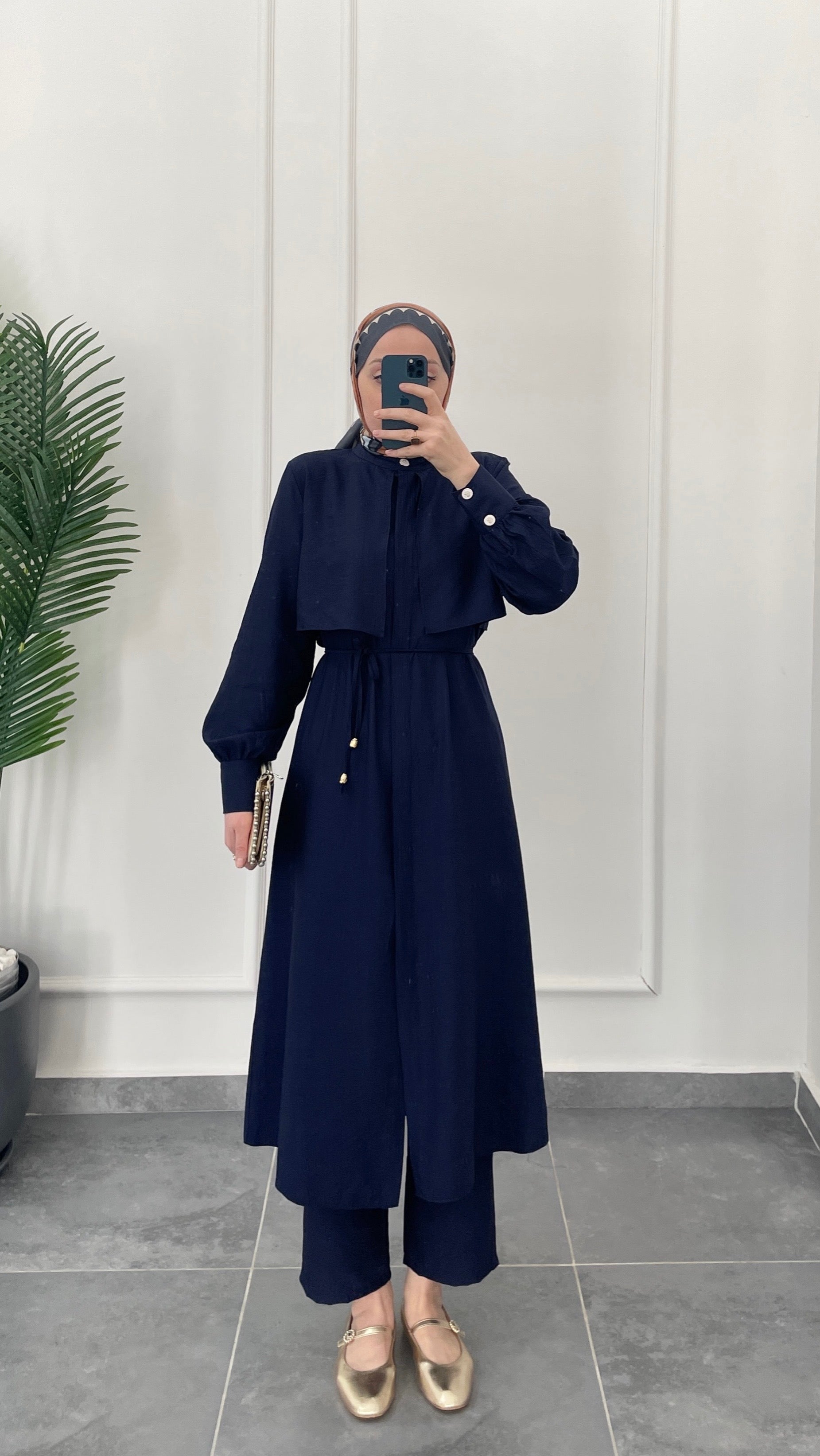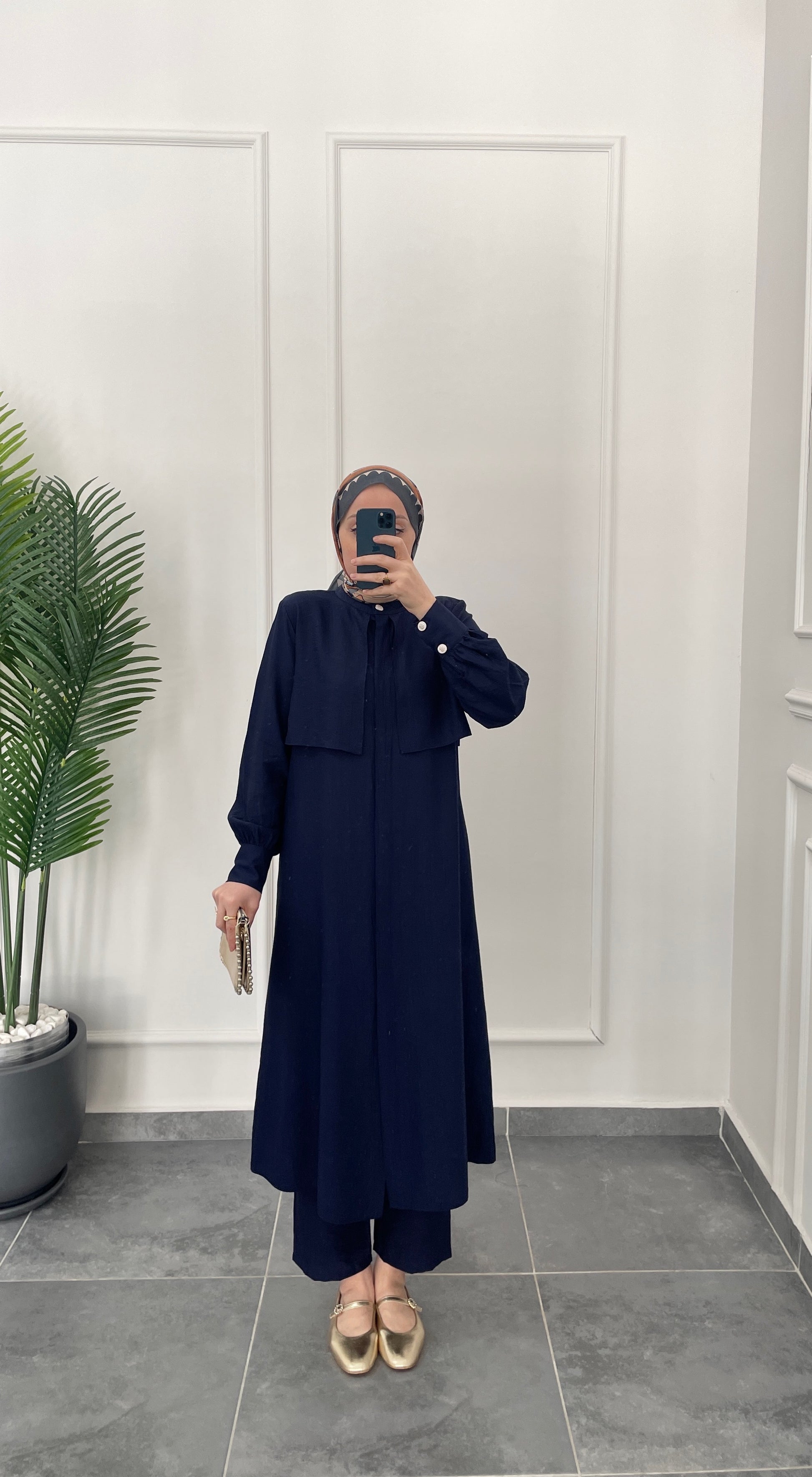 Çilek Kumaş Tunikli Takım-Lacivert