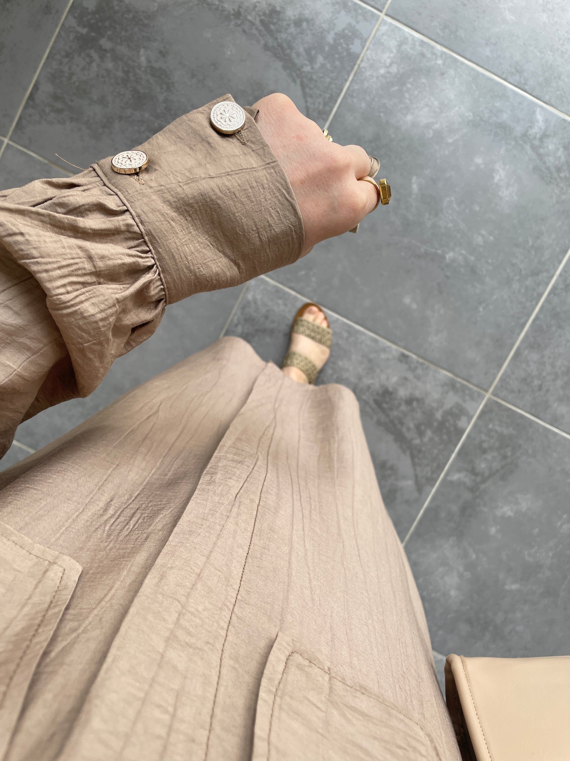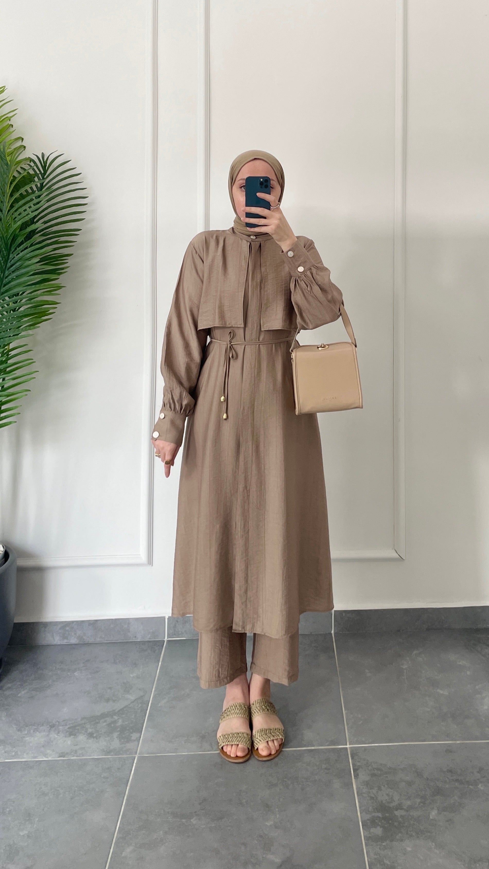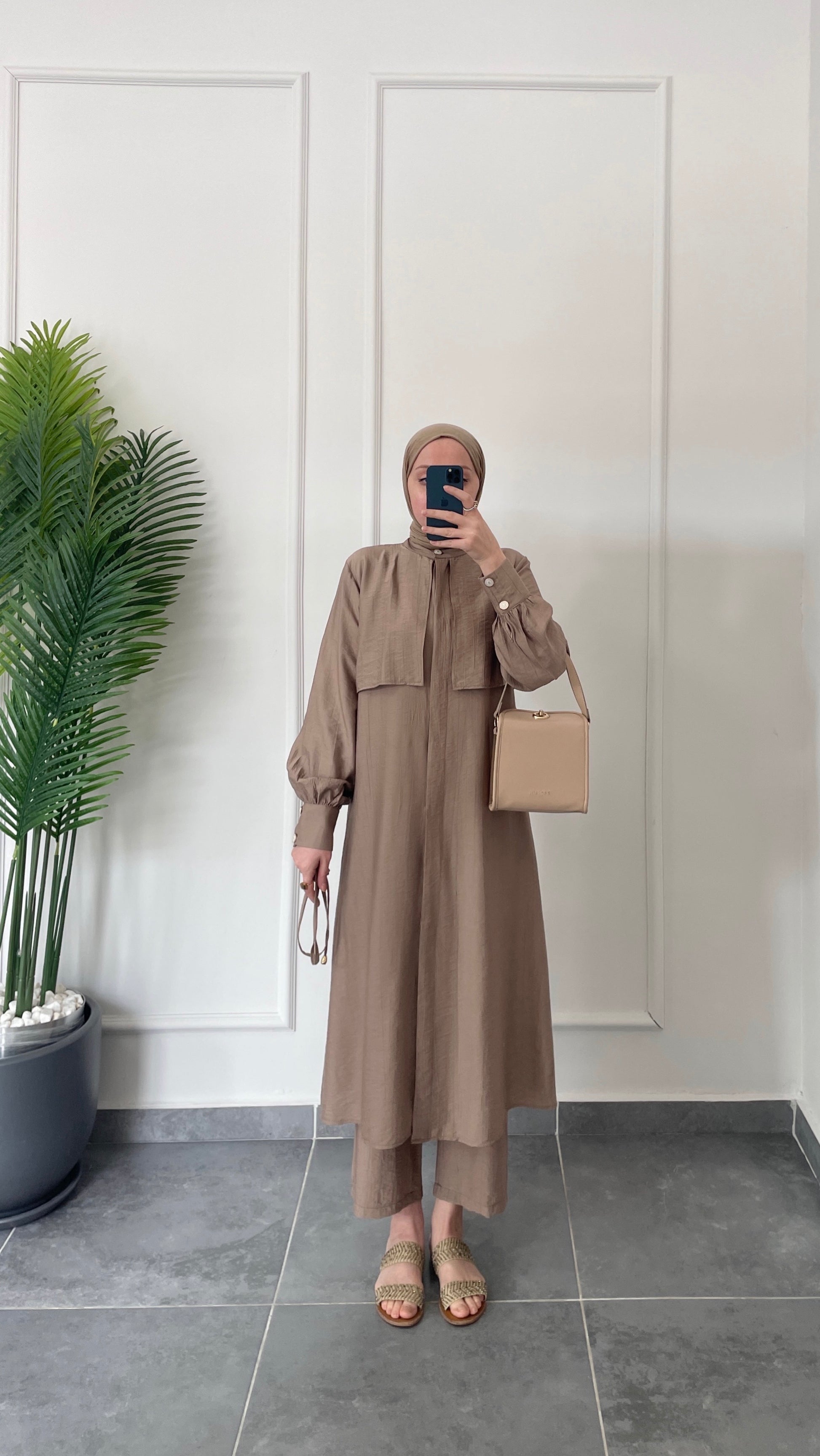 Çilek Kumaş Tunikli Takım-Vizon