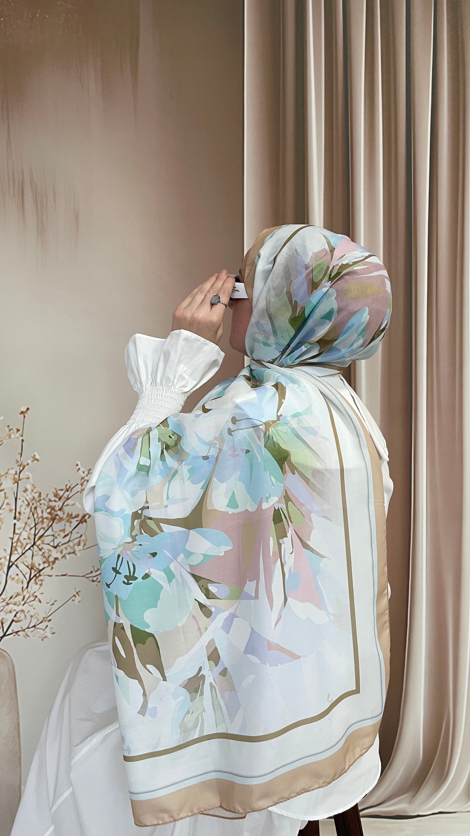 Ebruli Desen Pamuk Soft Şal Latte