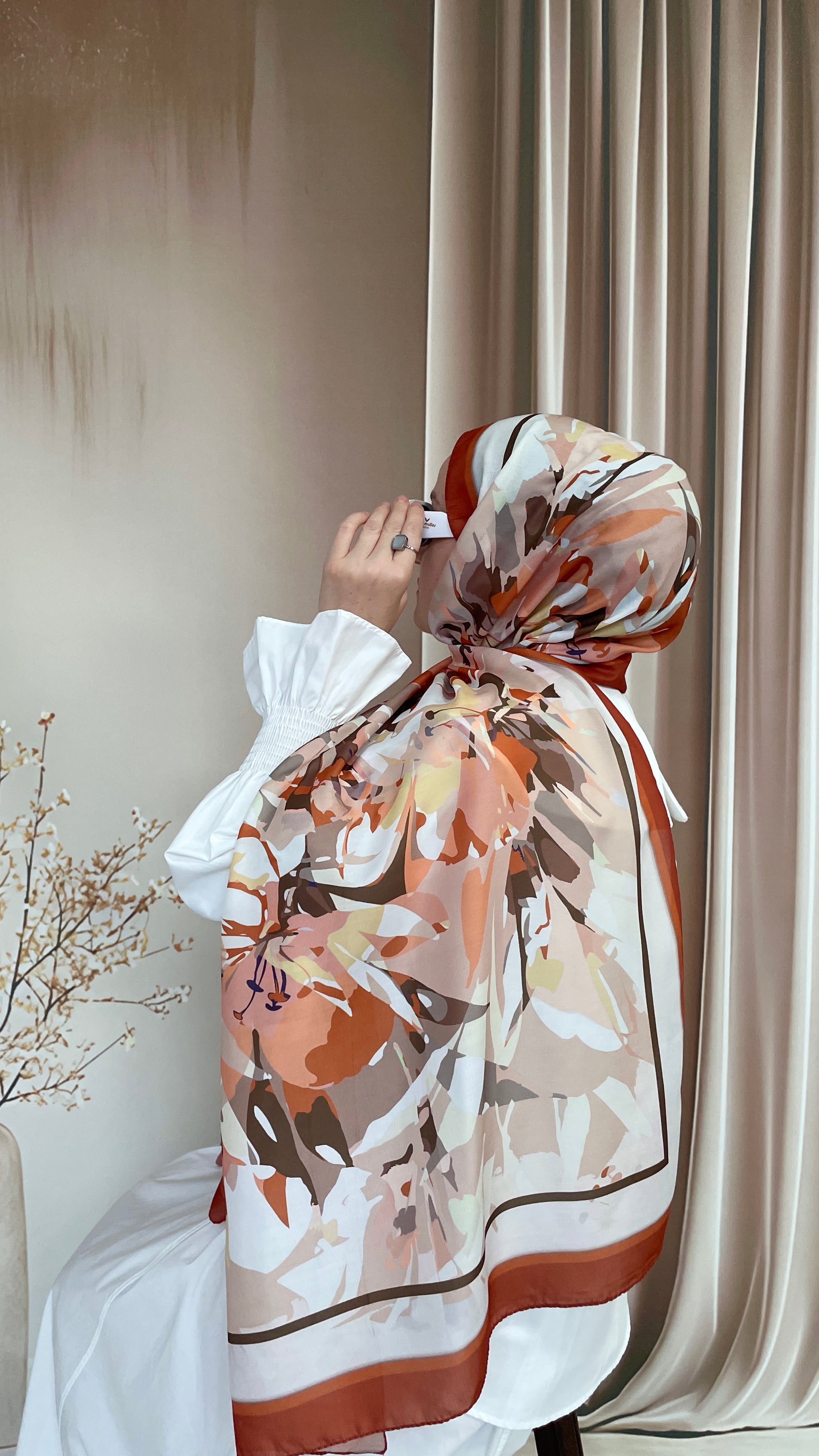 Ebruli Desen Pamuk Soft Şal Tarçın