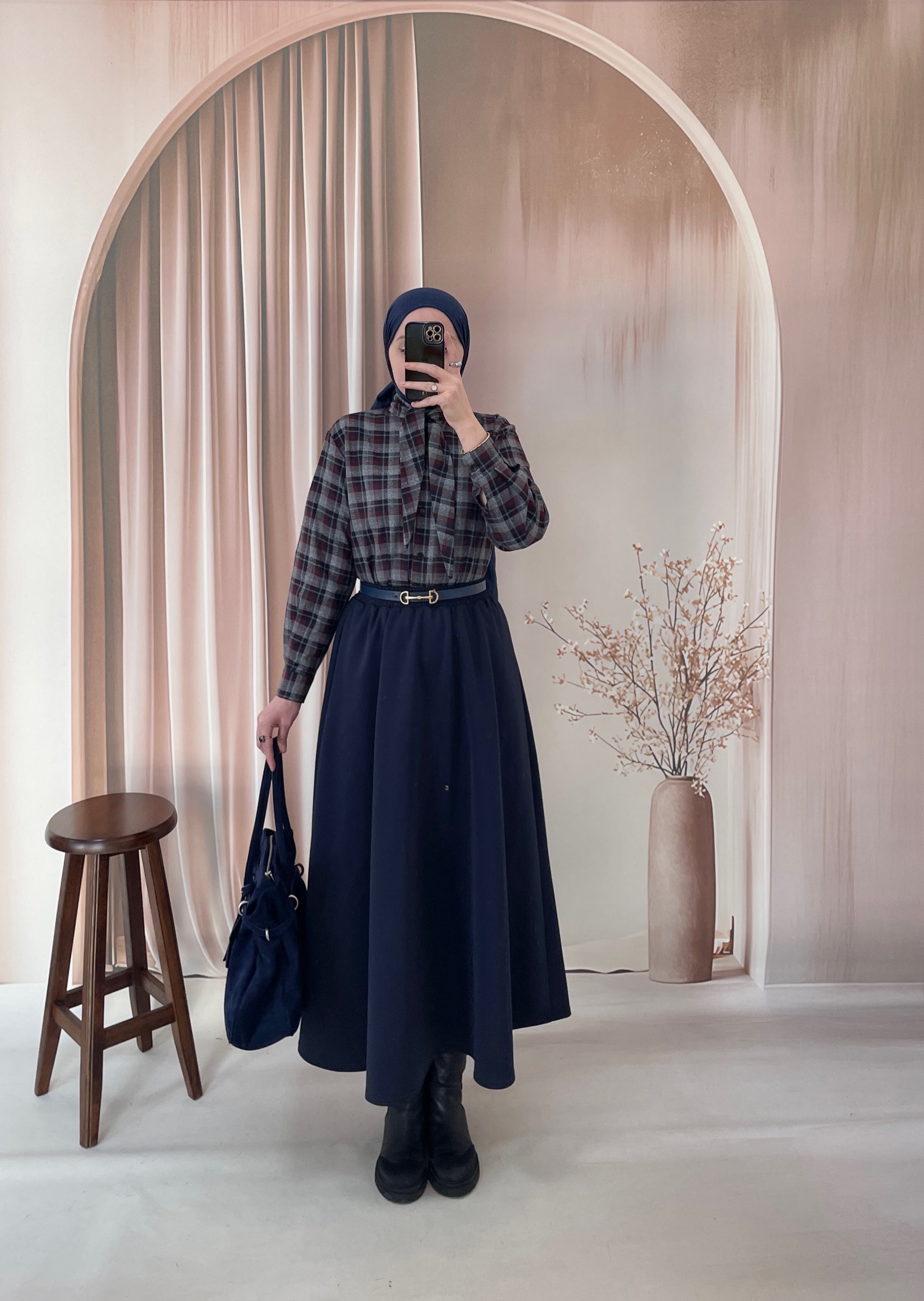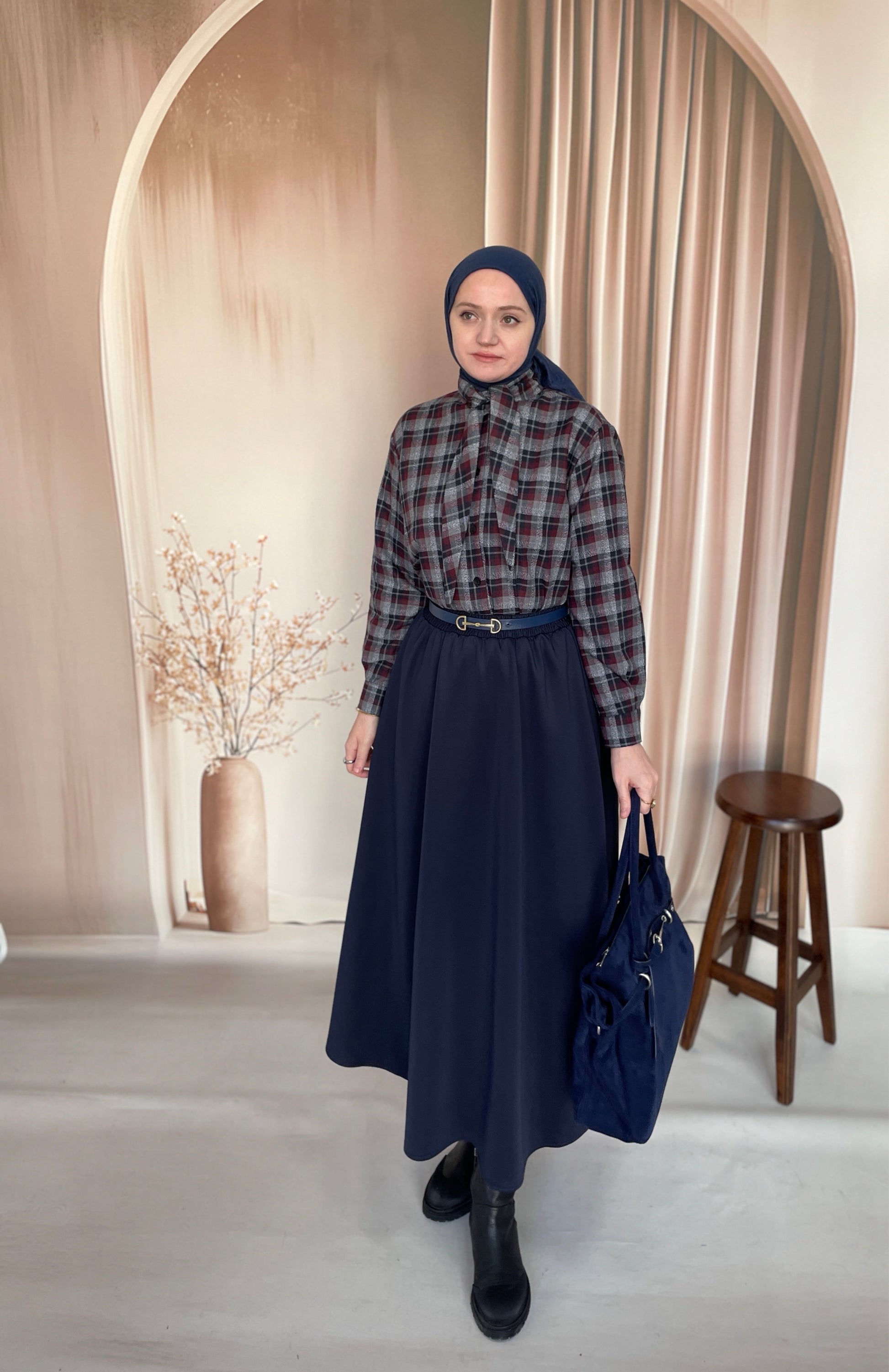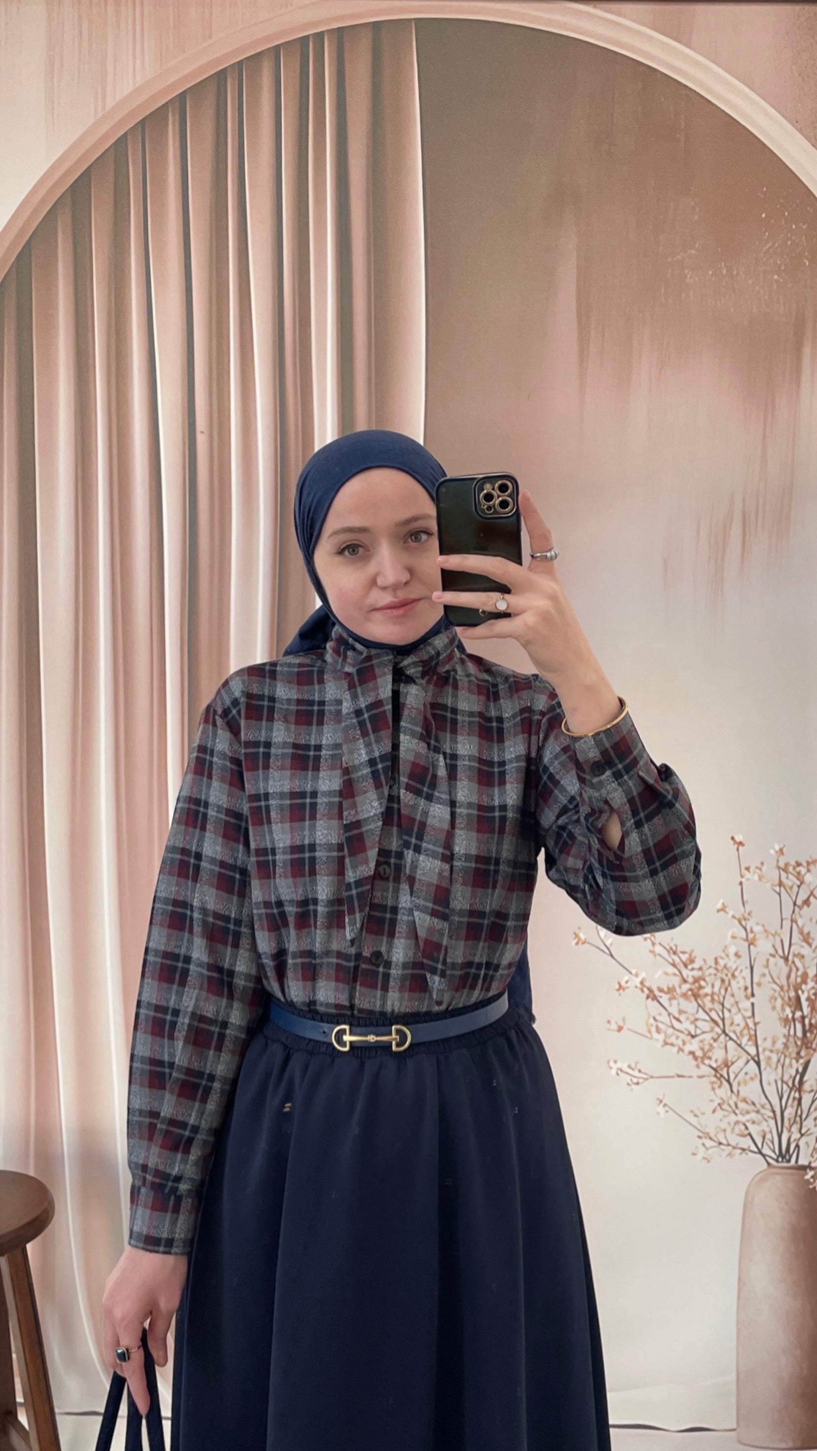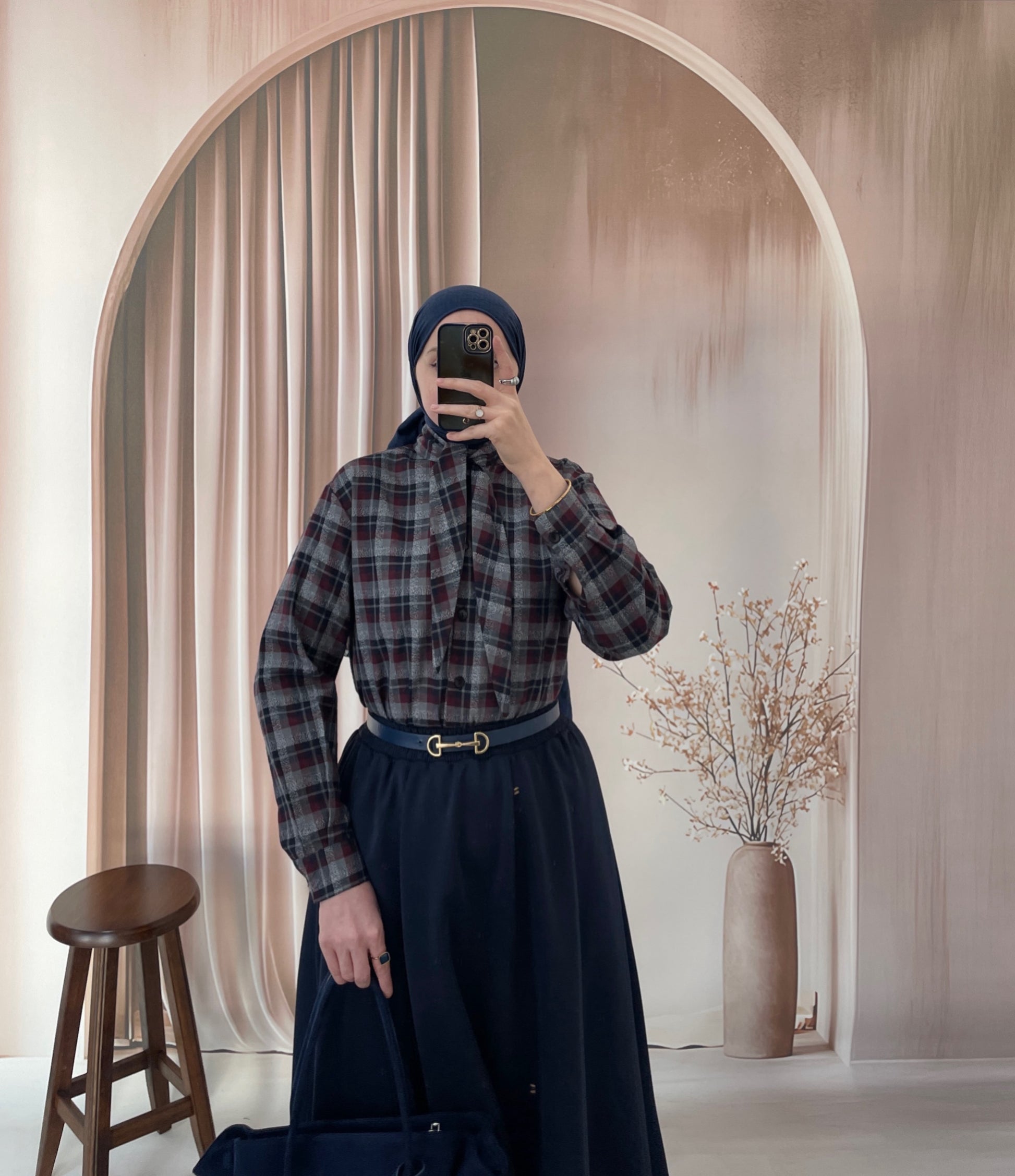 Ekose Desen Fular Tasarım Gömlek Antrasit &Bordo