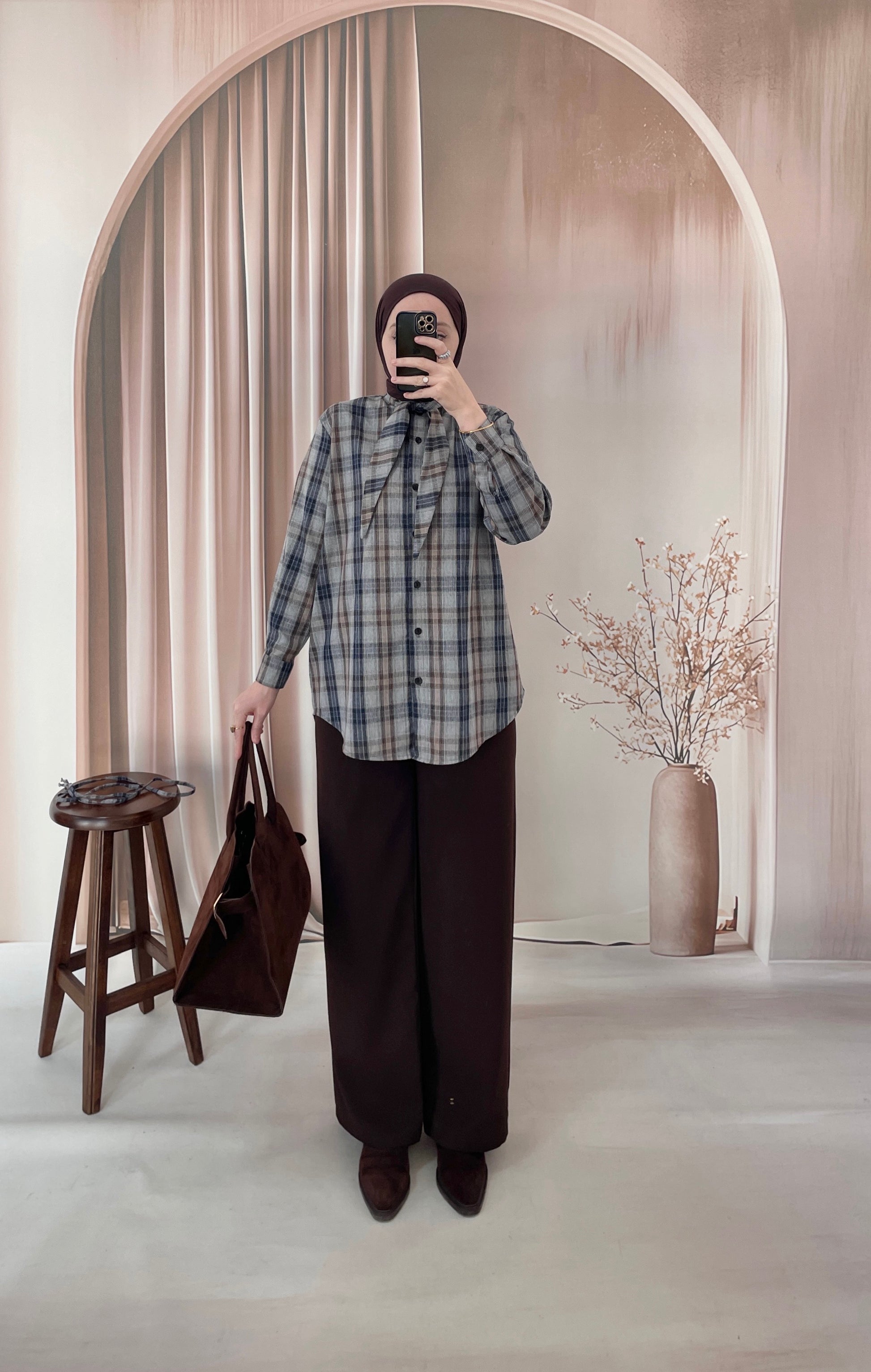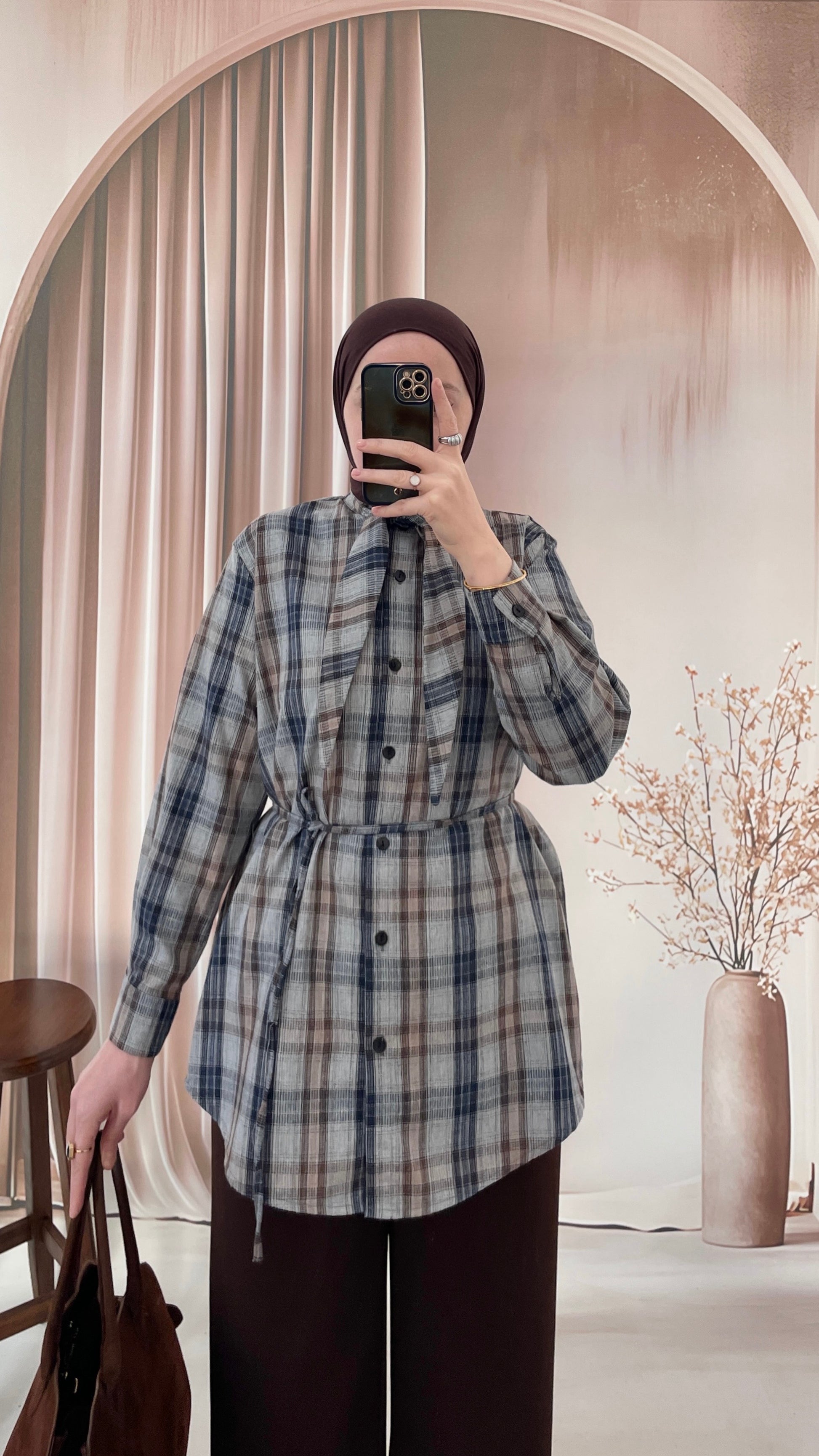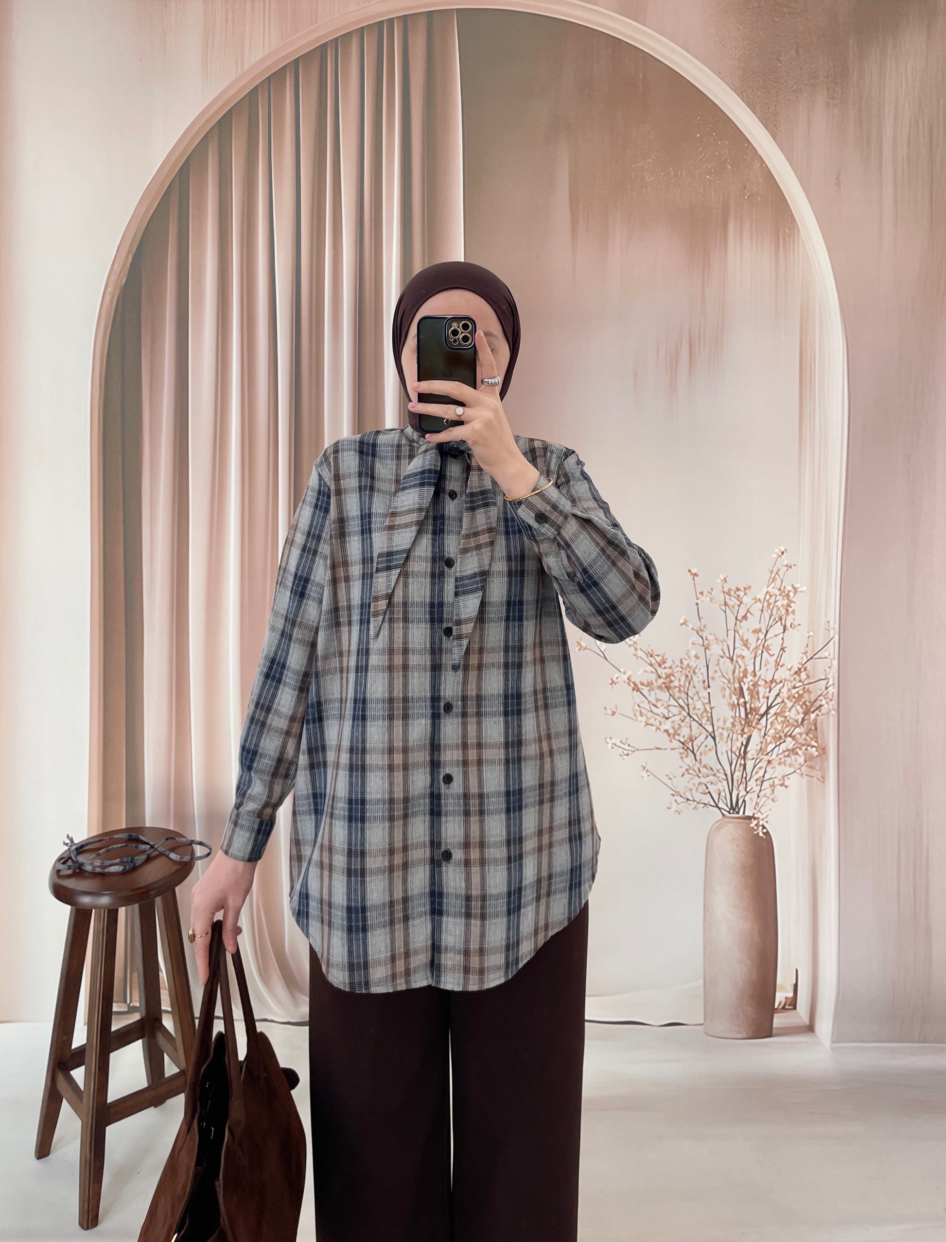 Ekose Desen Fular Tasarım Gömlek BuzMavi&Laci