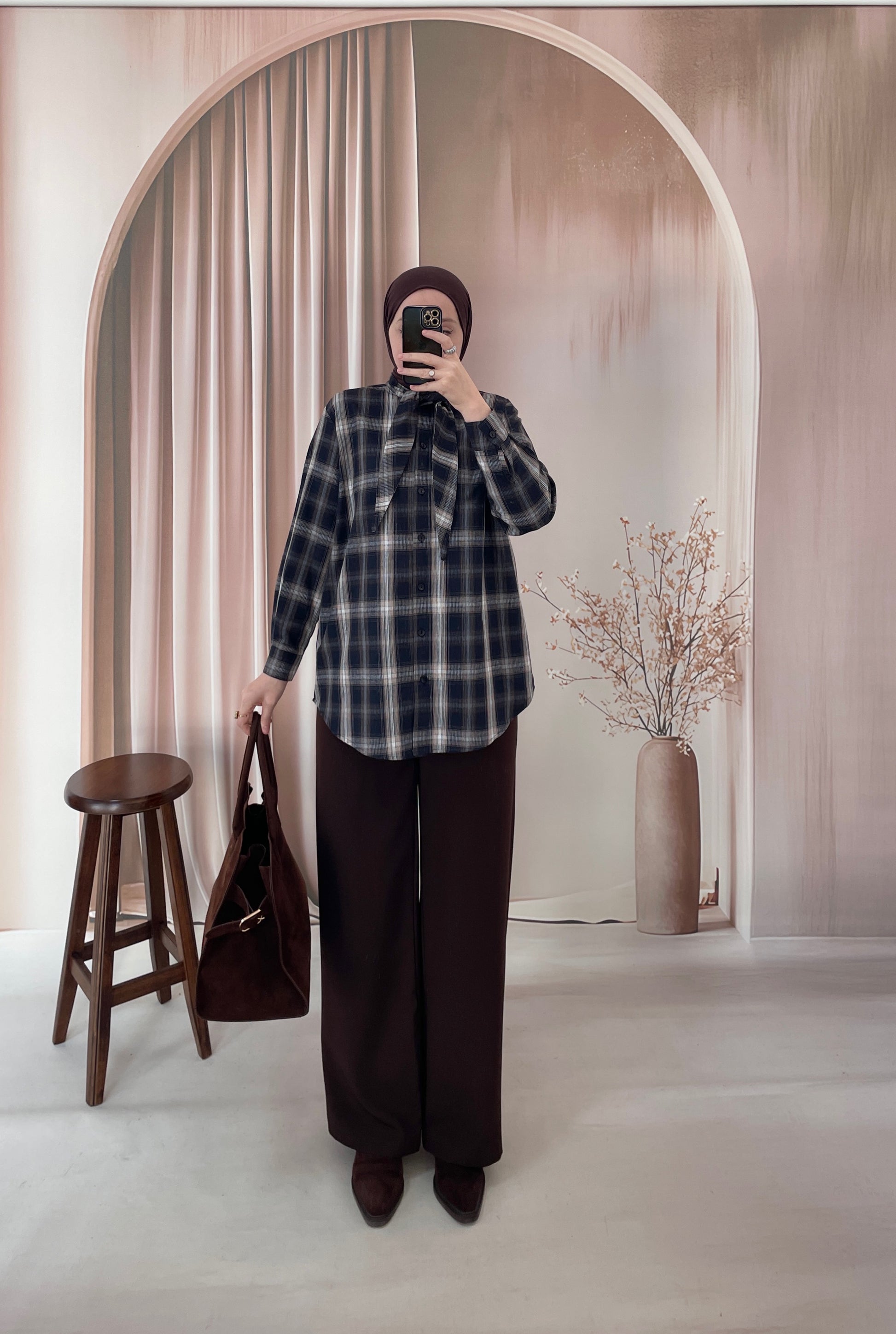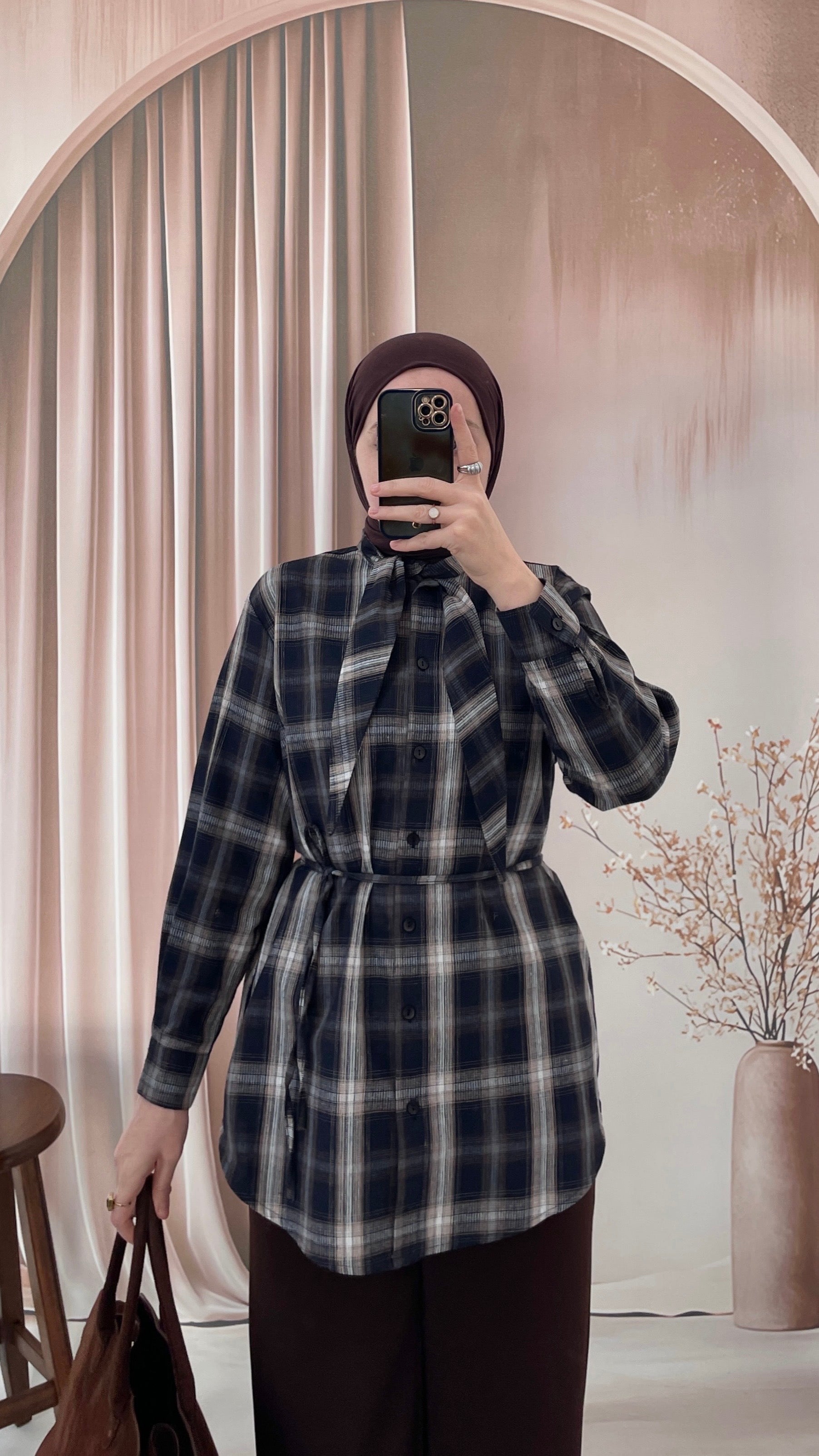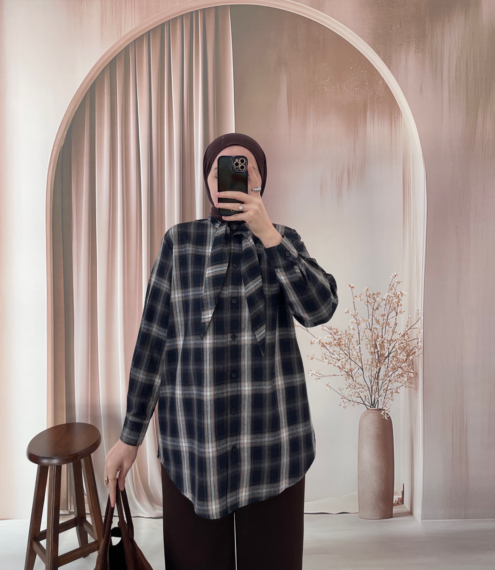 Ekose Desen Fular Tasarım Gömlek Lacivert&Kahve
