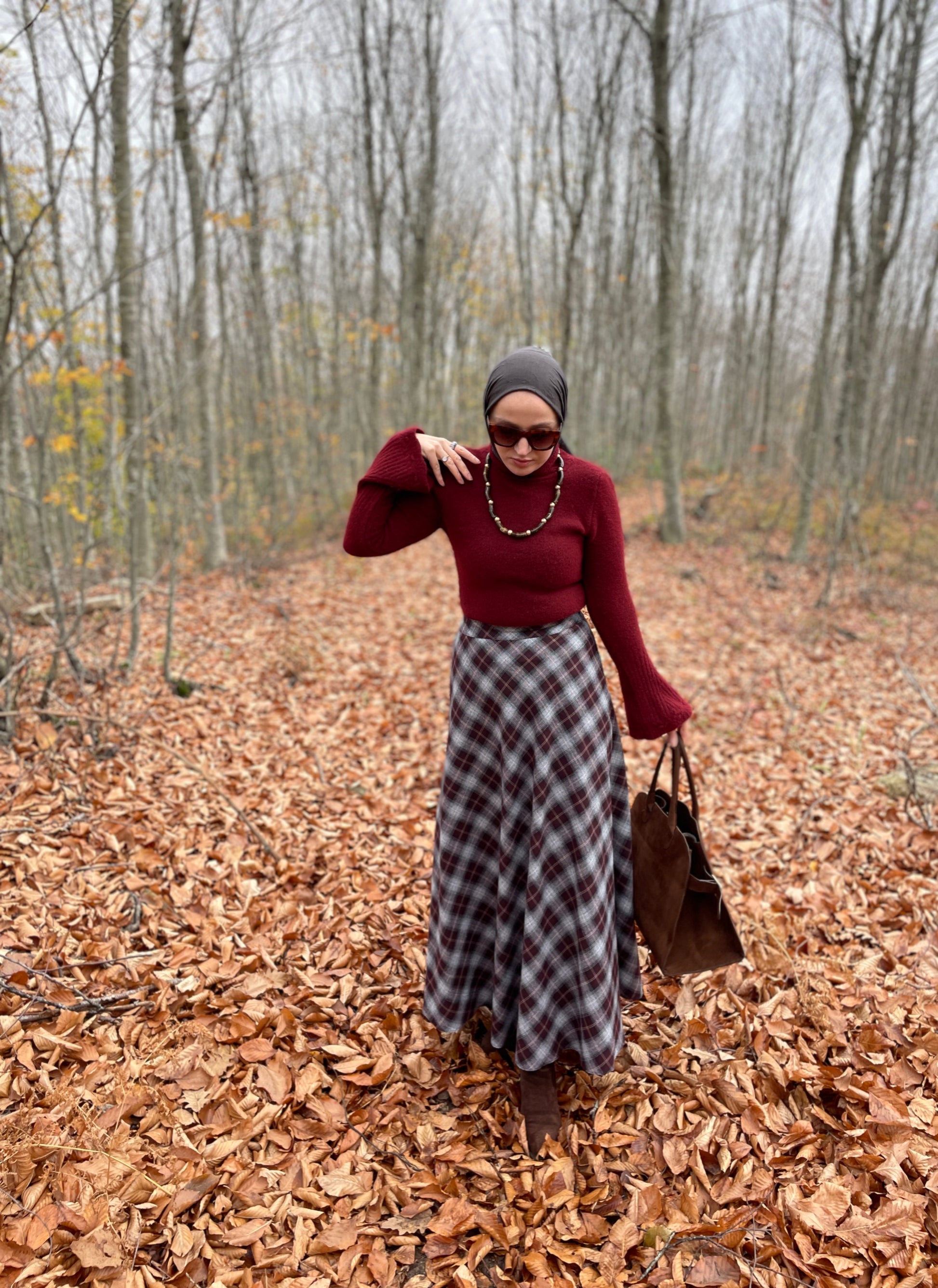 Ekose Desen Kloş Etek Bordo&Antrasit