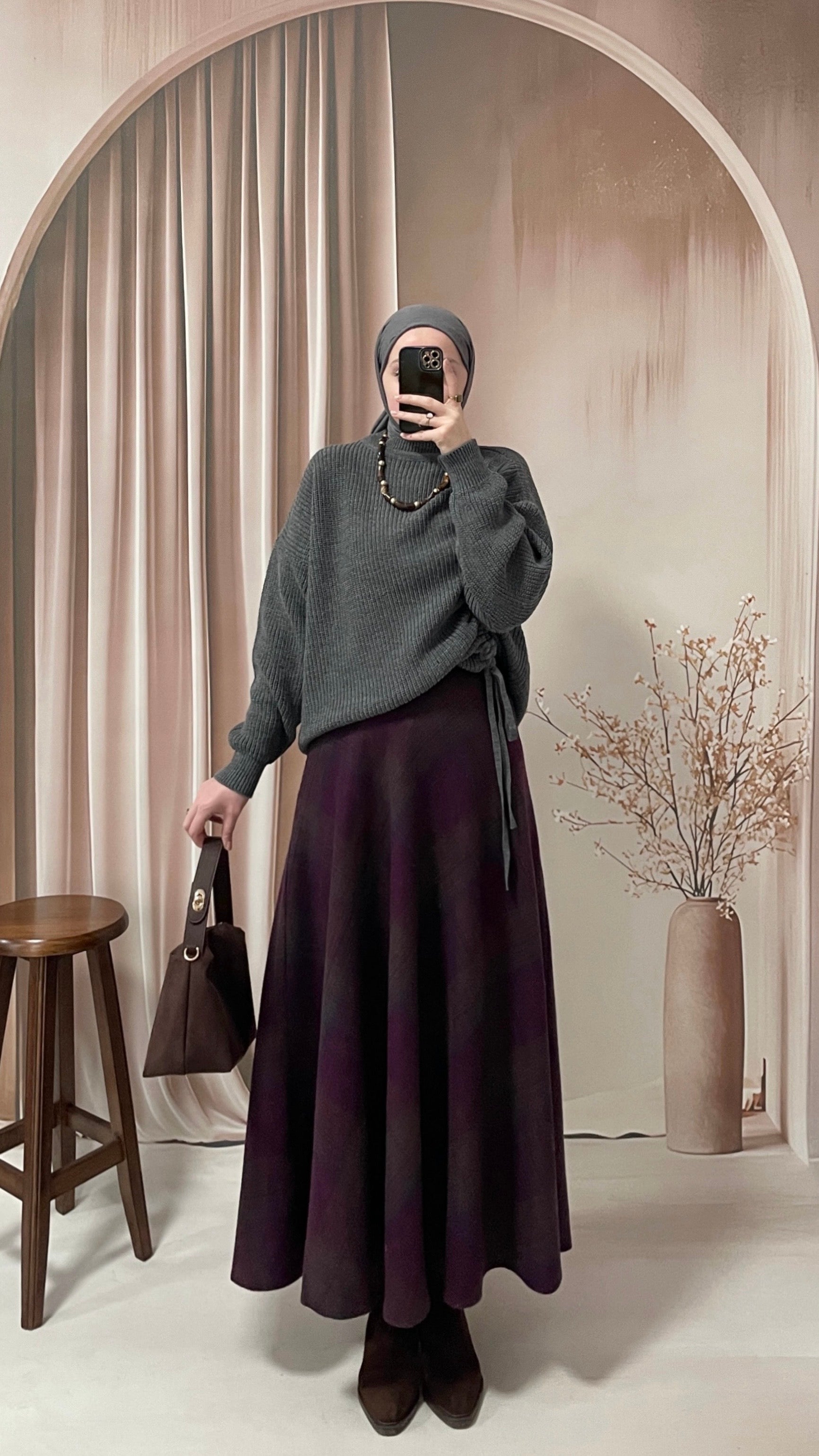 Ekose Kaşe Kloş Etek Mürdüm