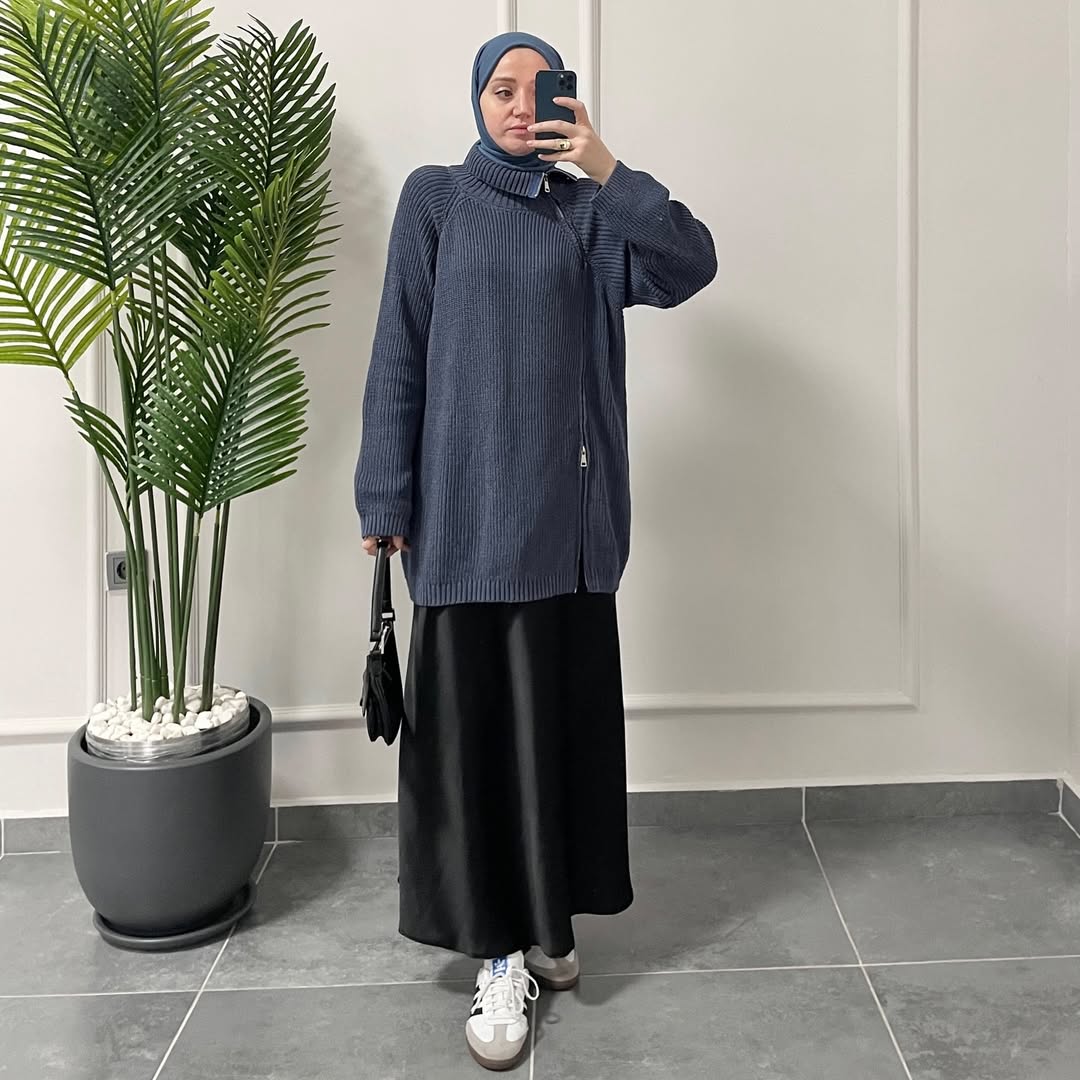 Fermuar Tasarım Kazak İndigo