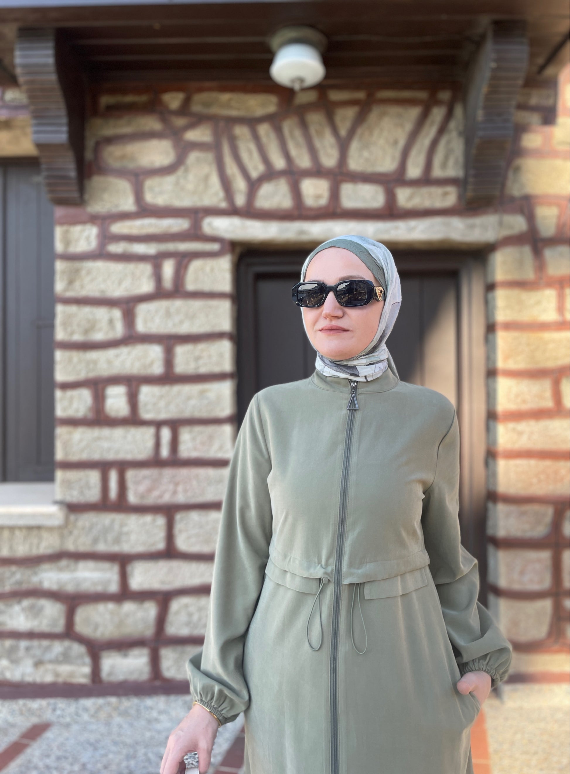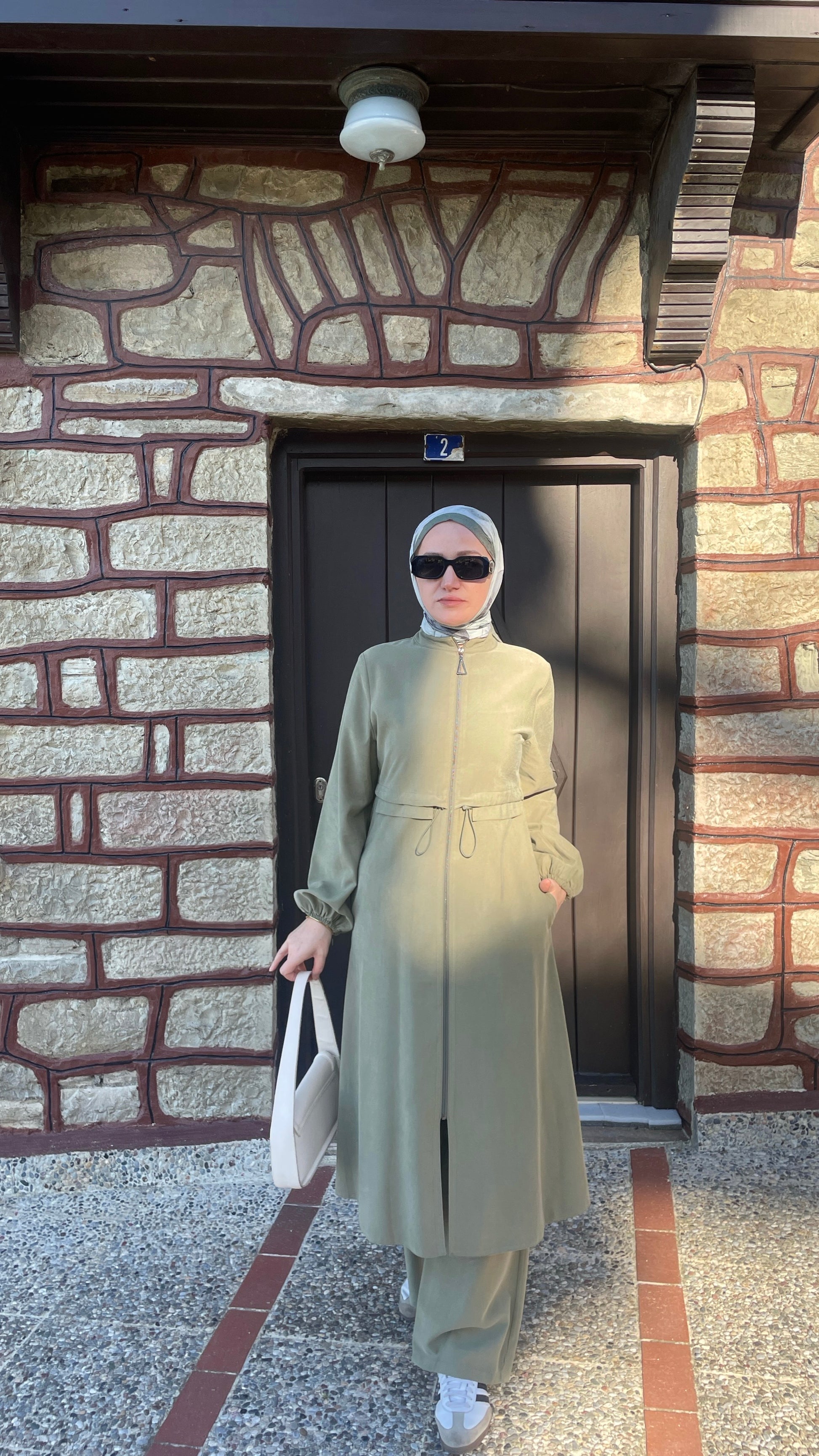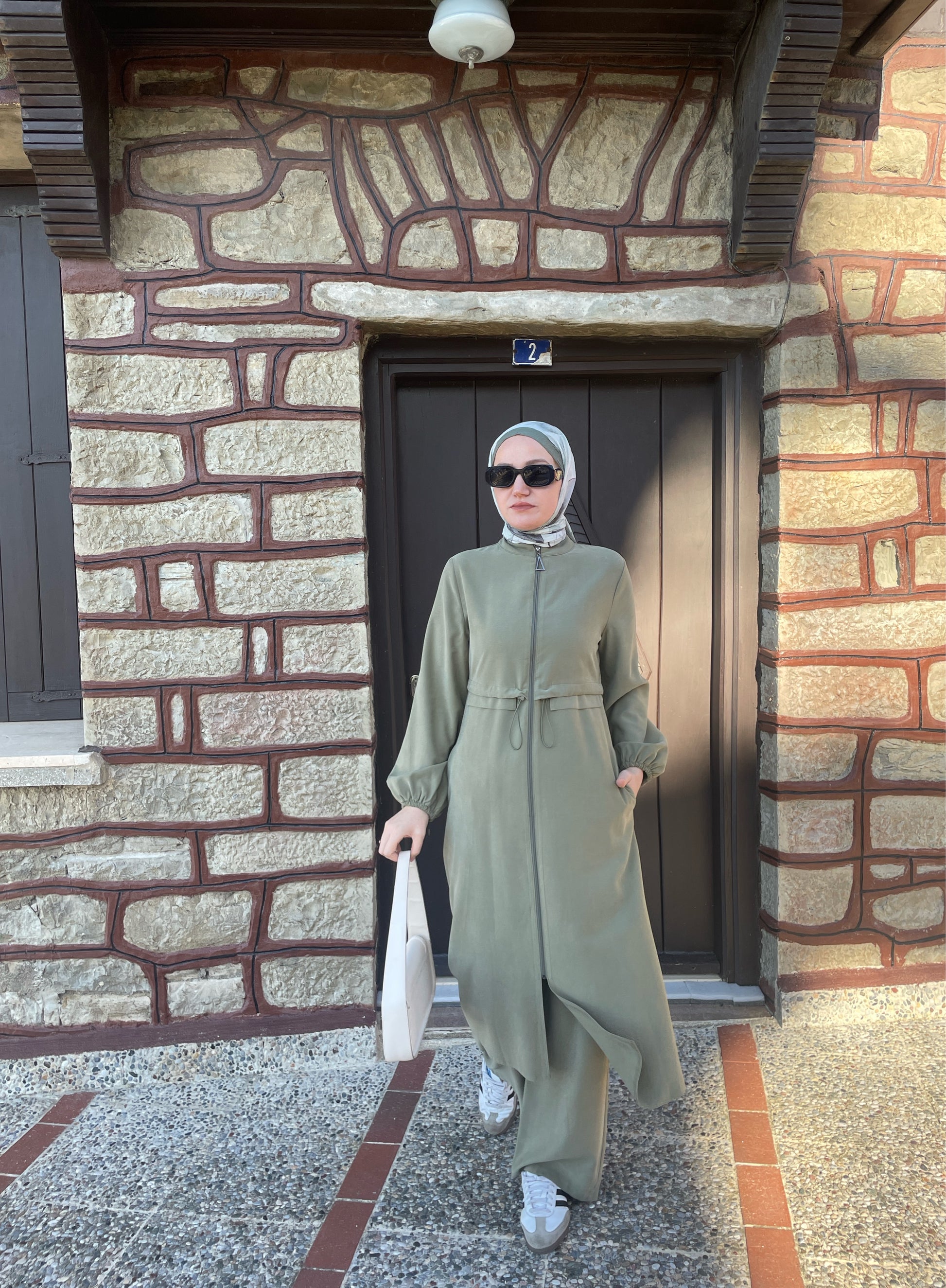 Fermuarlı Kap&Pantolonlu Koton Takım Haki