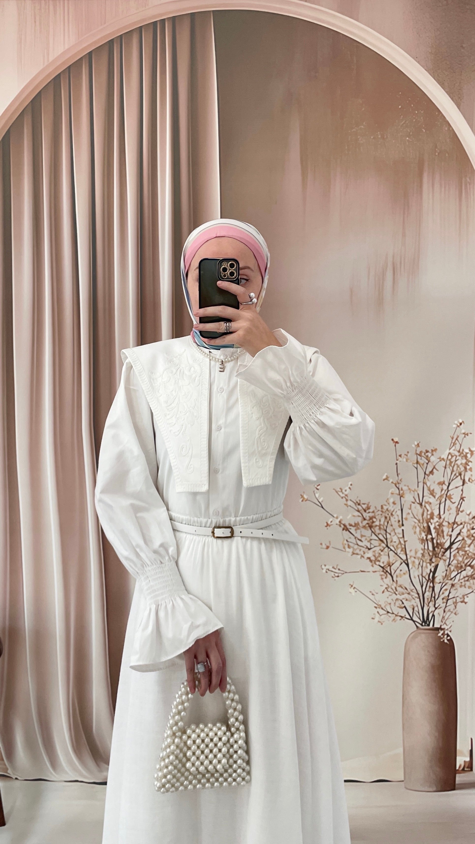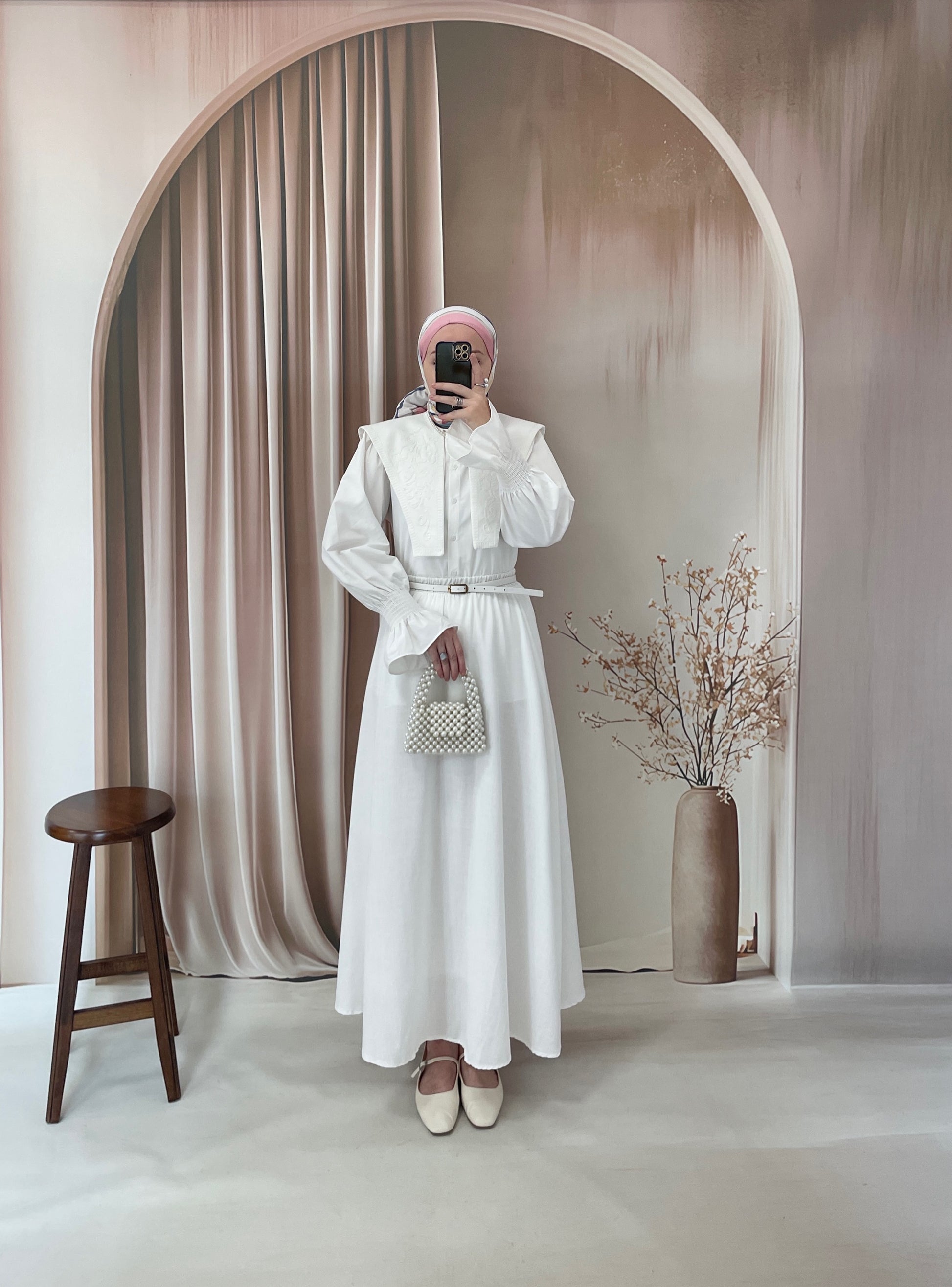 Geniş Yakalı Nakışlı Vintage Gömlek Beyaz