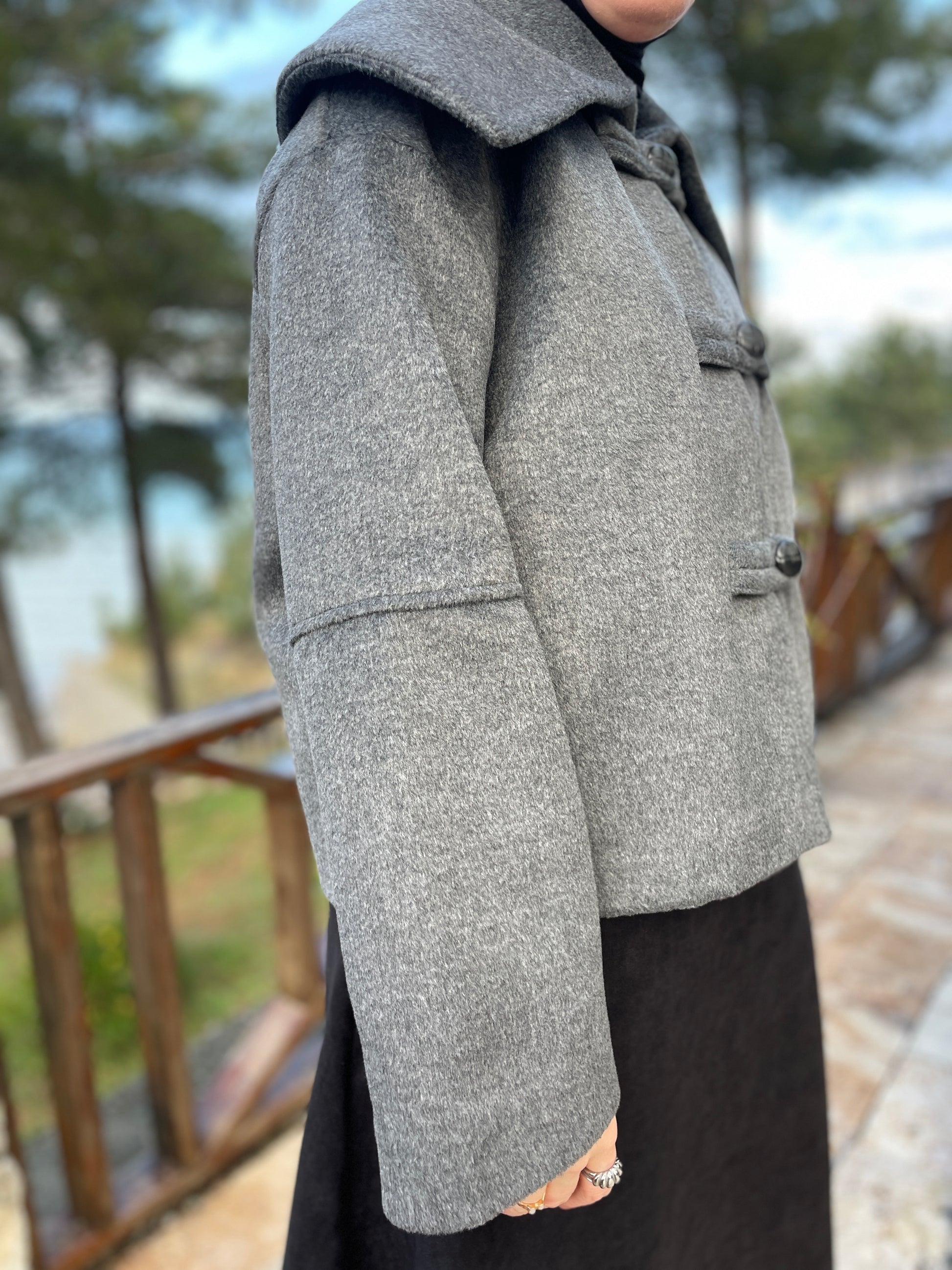 Geniş Yakalı Teddy Kısa Kaban Antrasit