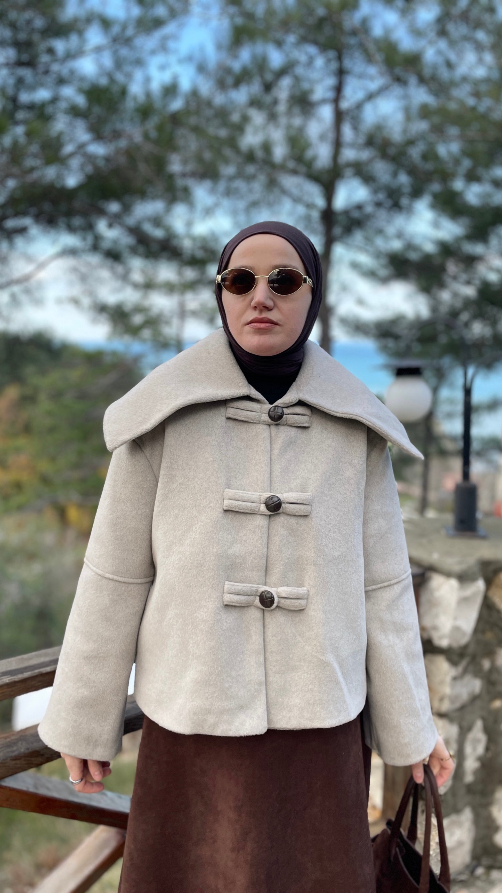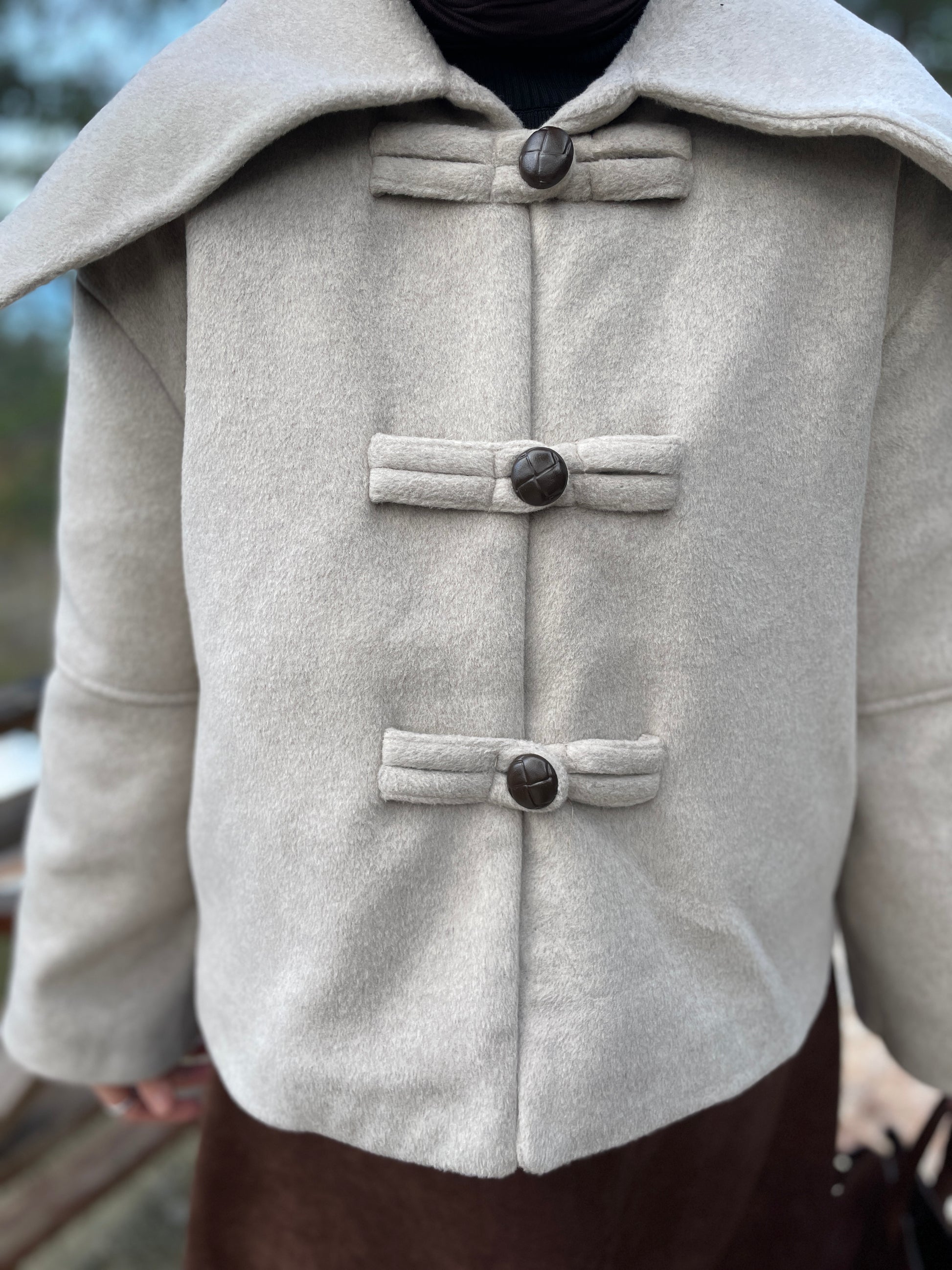 Geniş Yakalı Teddy Kısa Kaban TAŞ