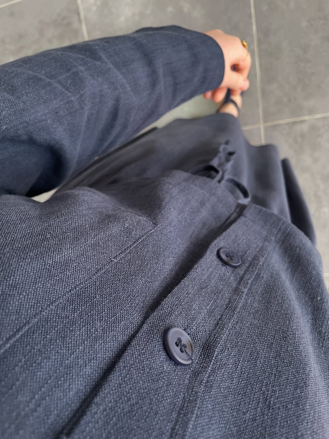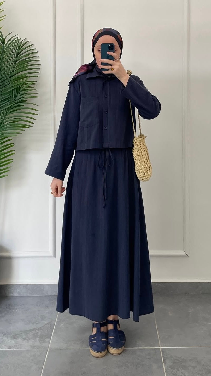 Ham Keten Düğmeli Etekli Takım-Lacivert