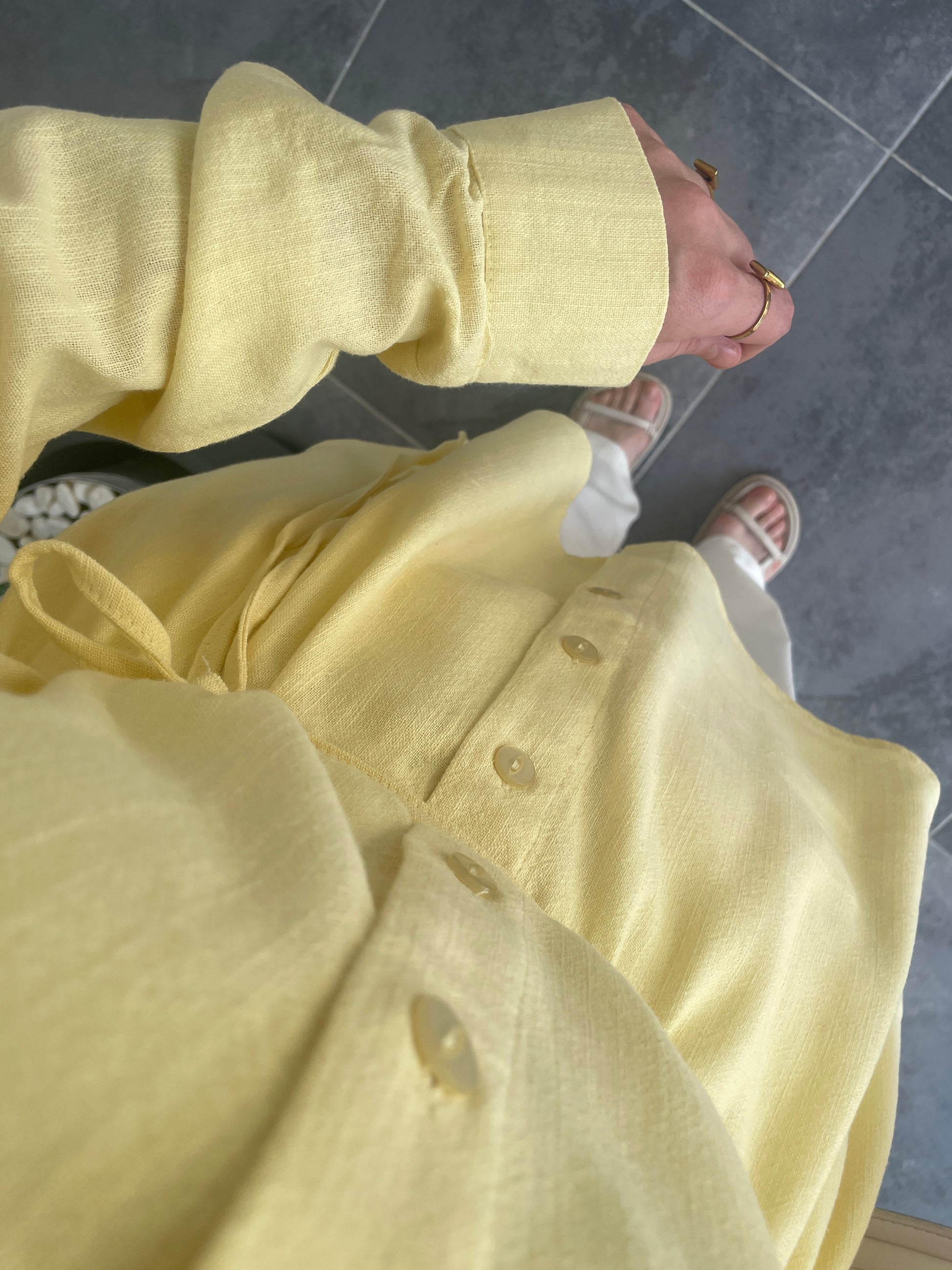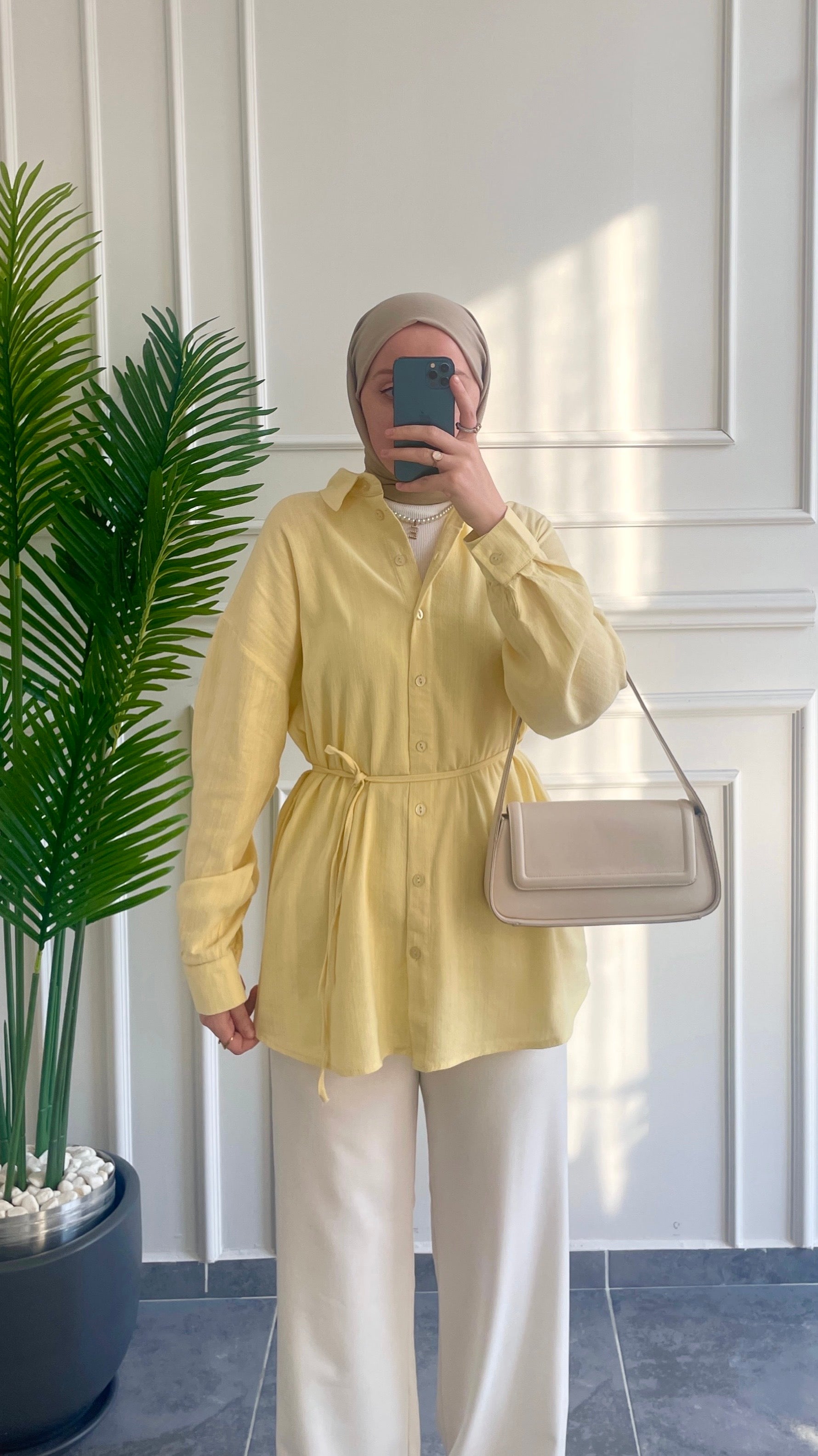 Ham Keten Seyyar Kemerli Gömlek-Soft Sarı