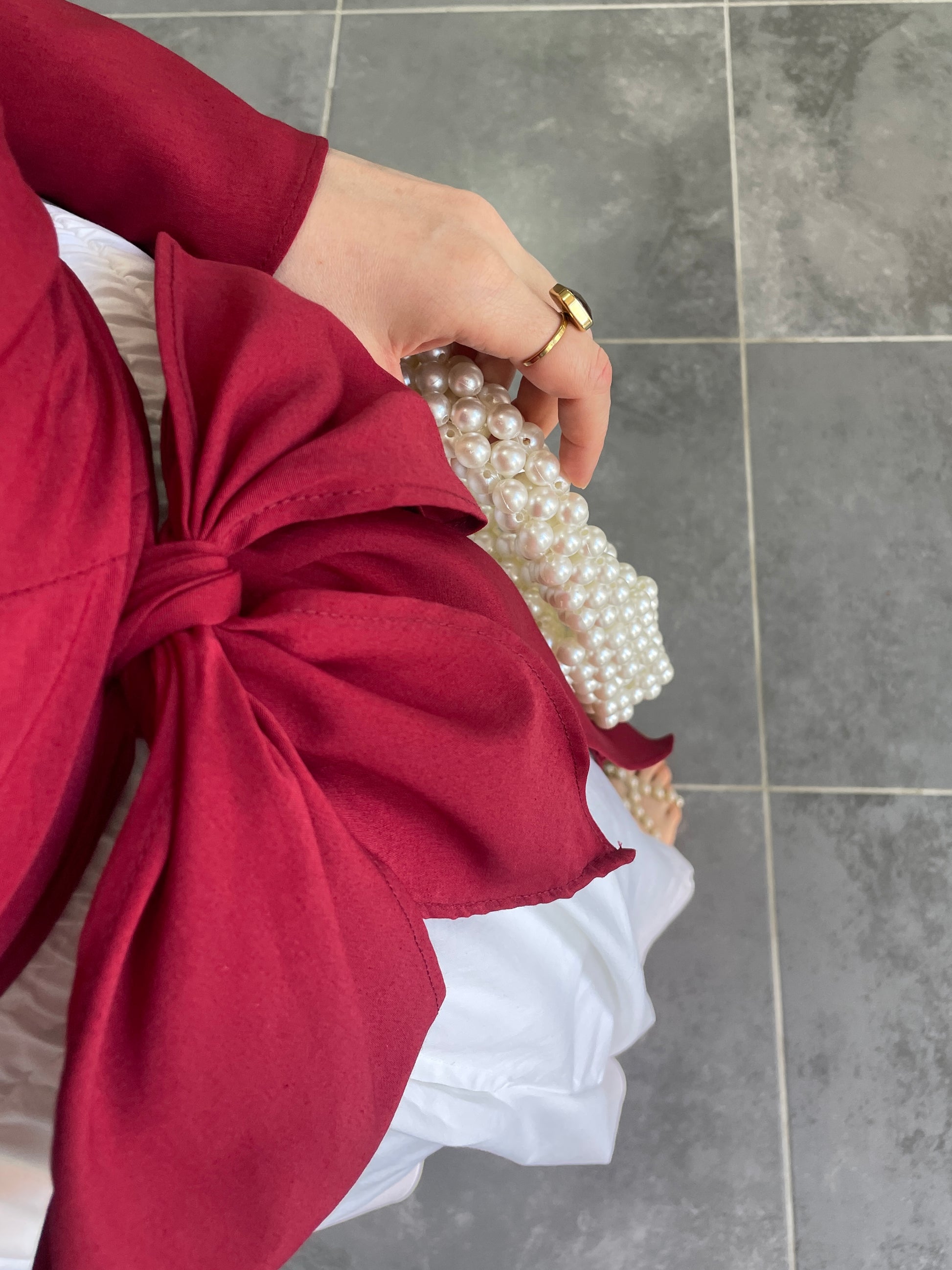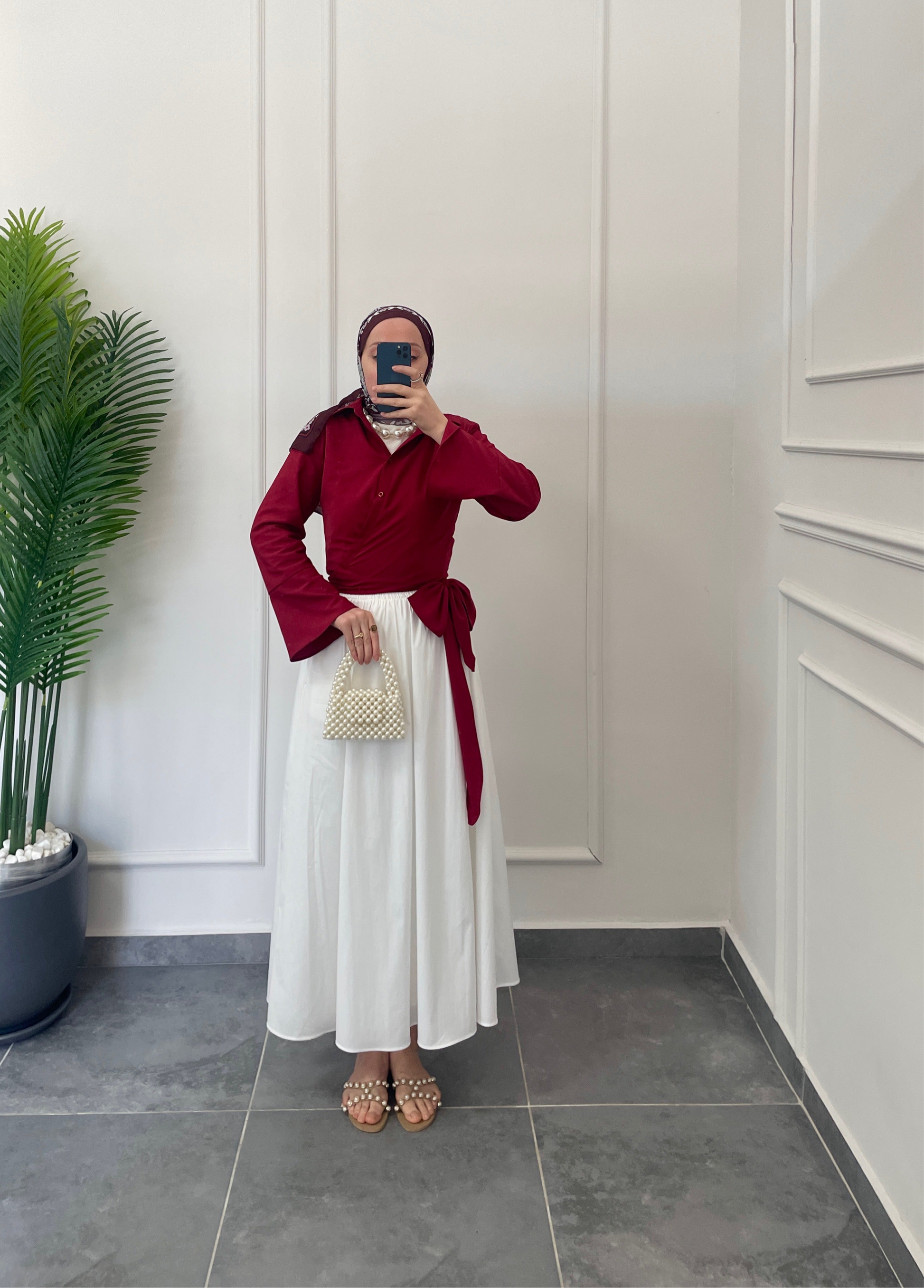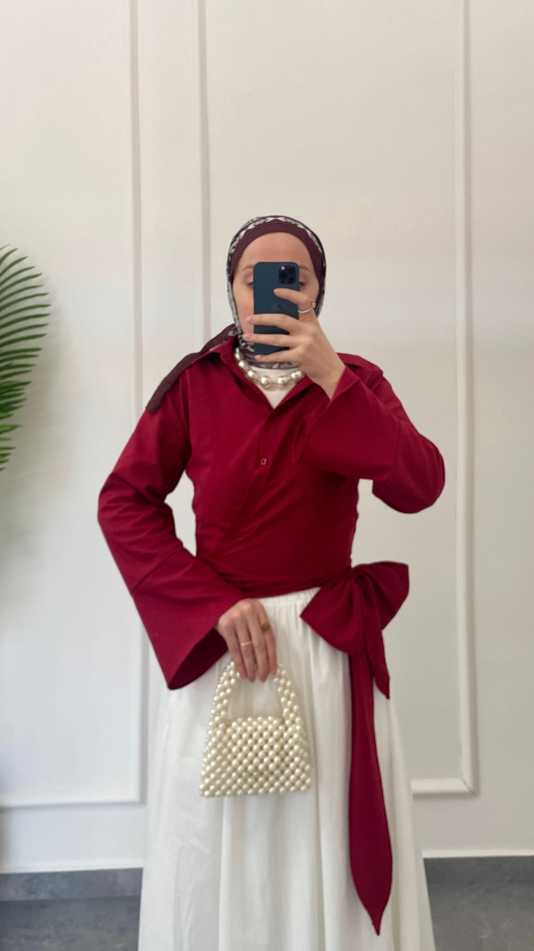 İspanyol Kol Bel Bağlamalı Gömlek-Bordo