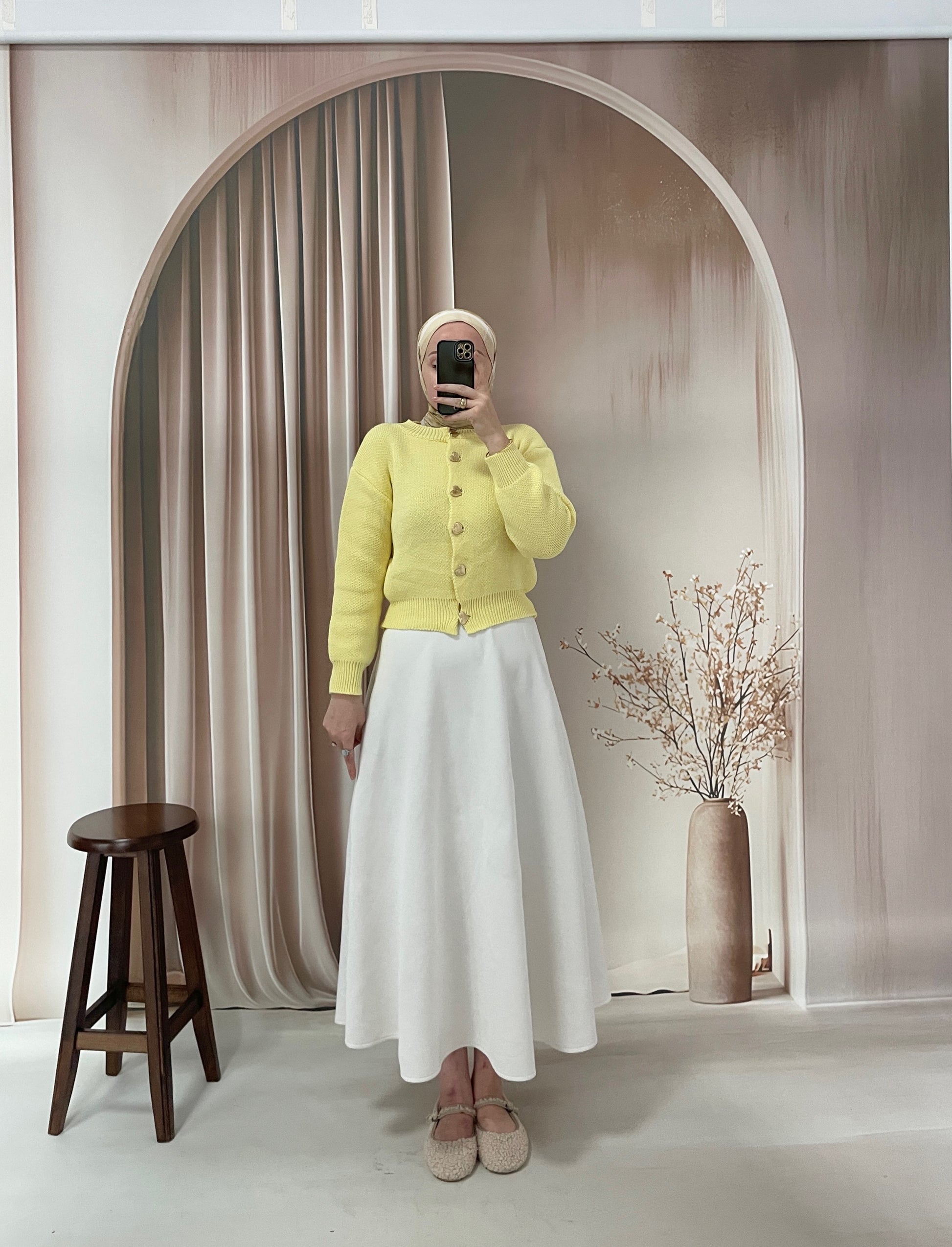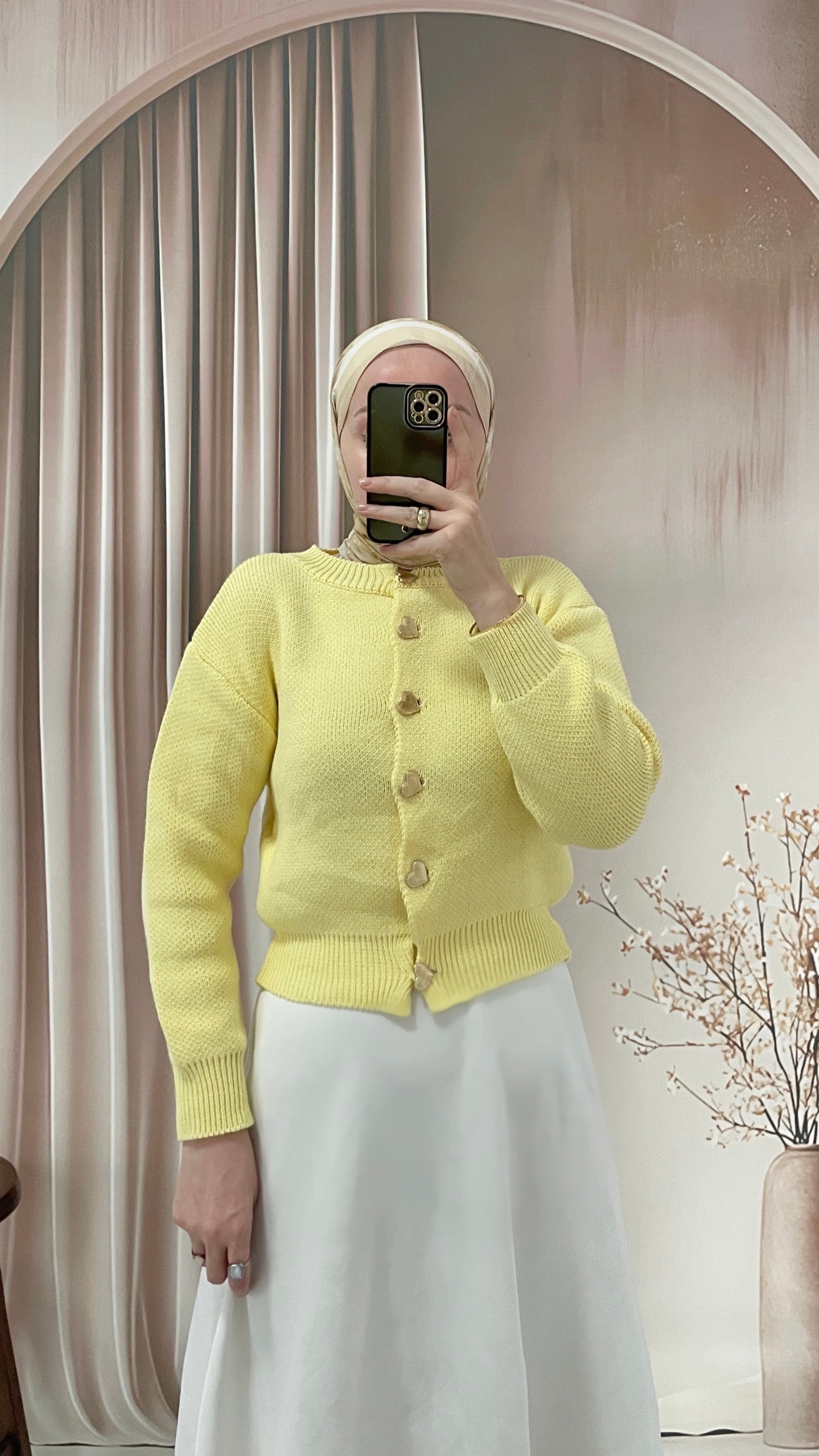 Kalp düğmeli hırka Sarı