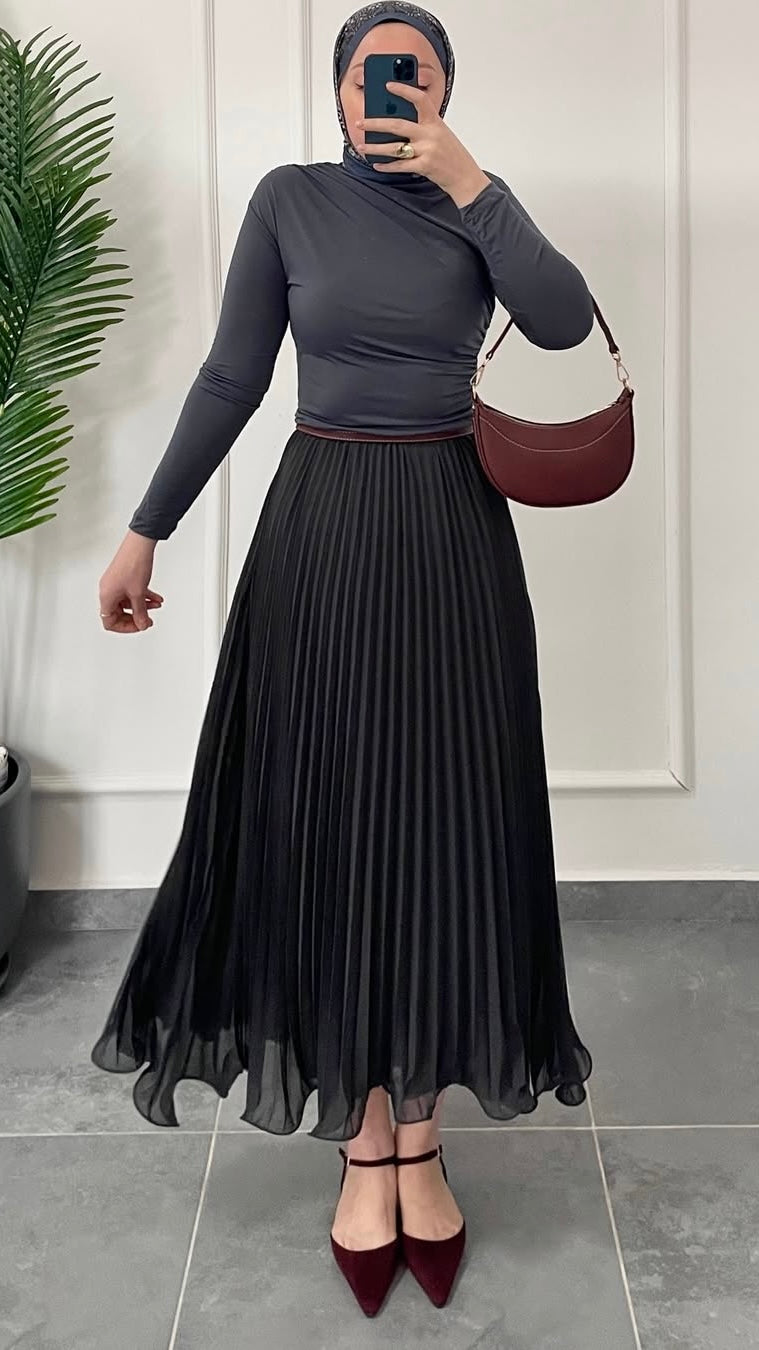 Şifon Piliseli Etek-Antrasit
