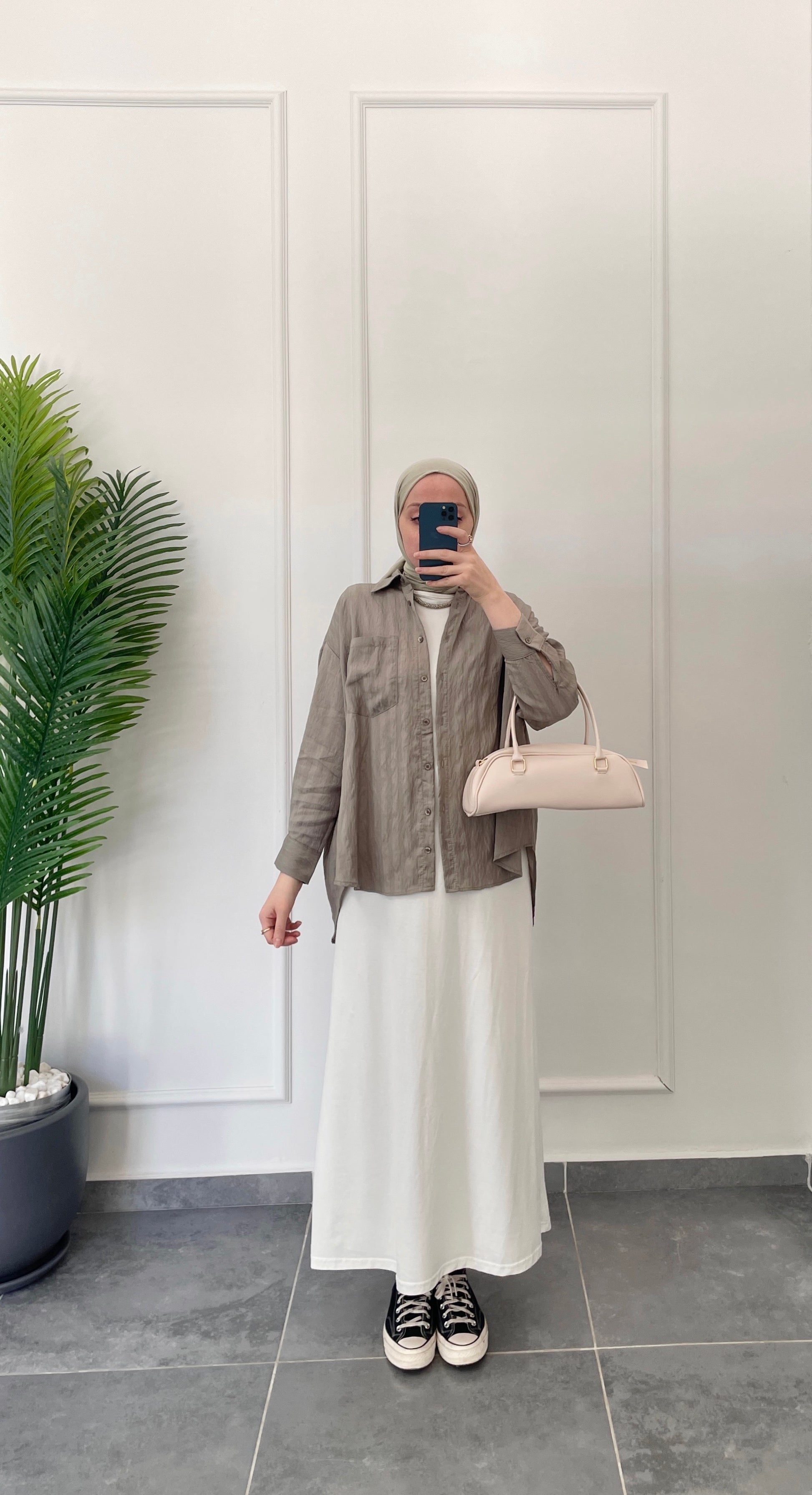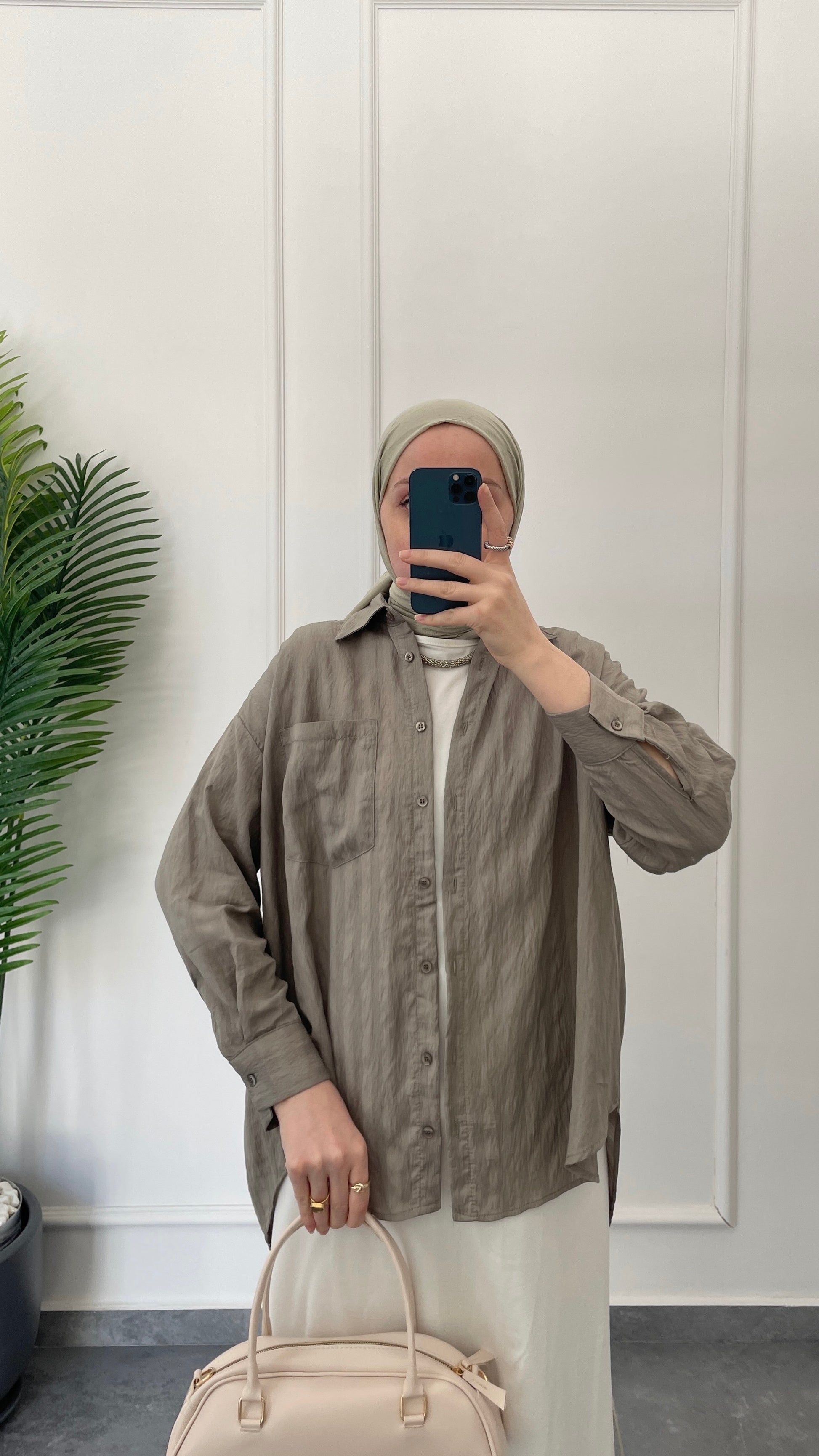 Kraş Kendinden Dokulu Gömlek-Çağla