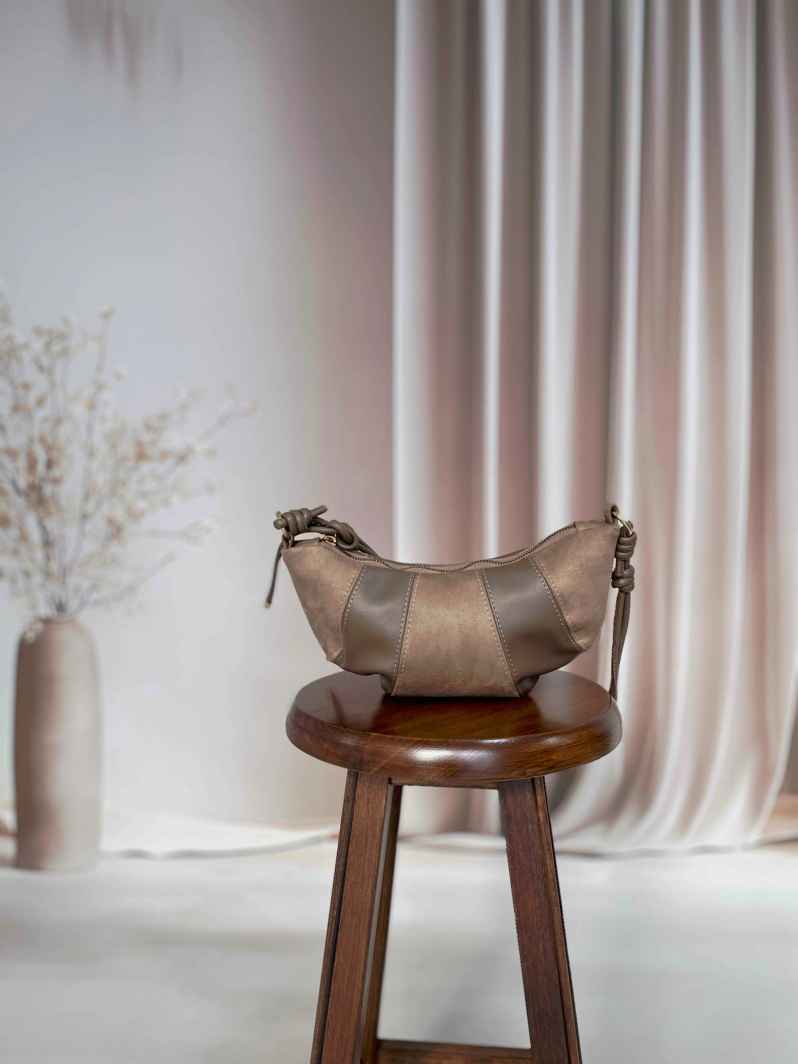 Kruvasan Yumuşak Derili Çanta Vizon