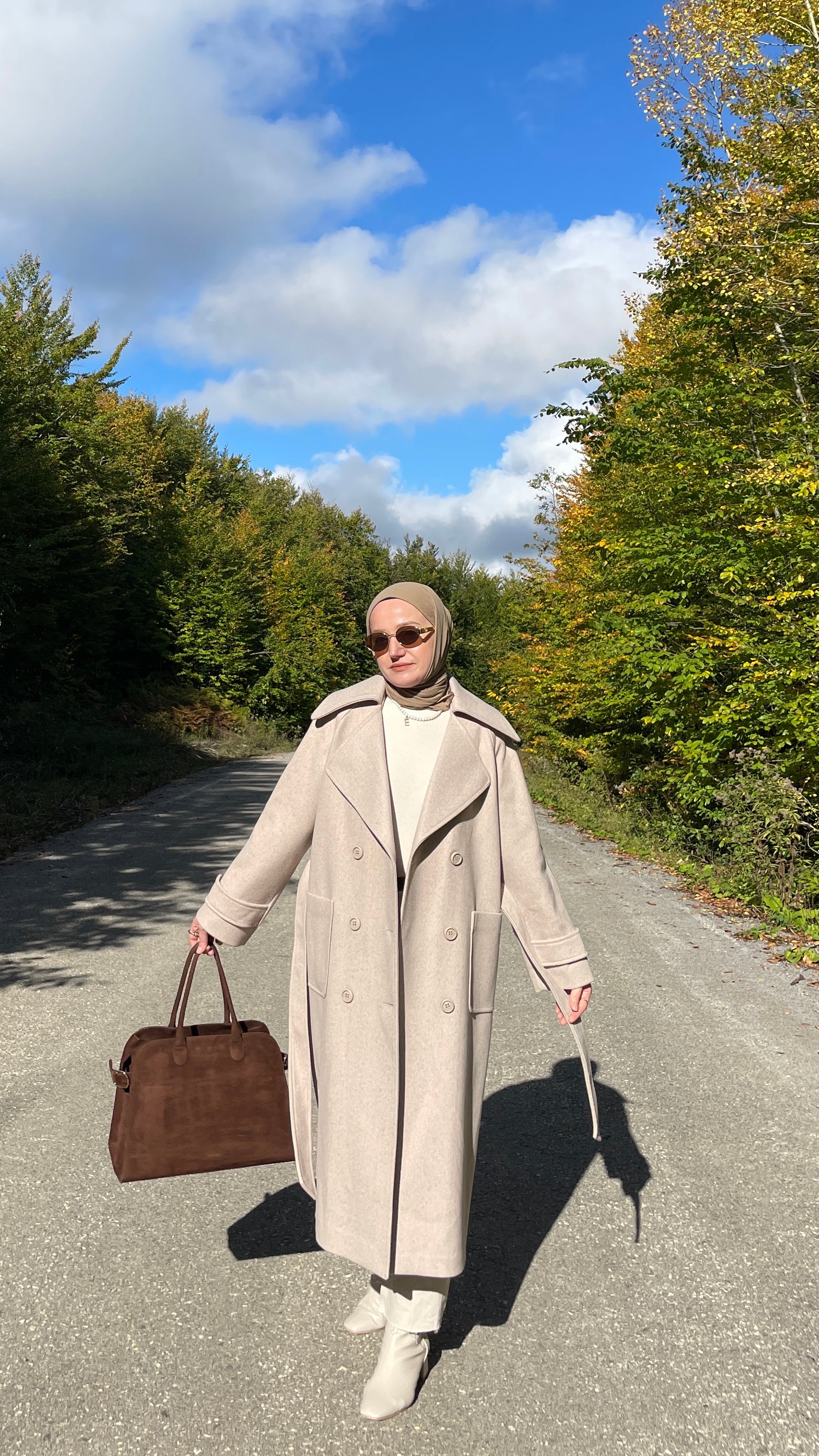 Kruvaze Yaka Premium Kaşe Kaban Bej