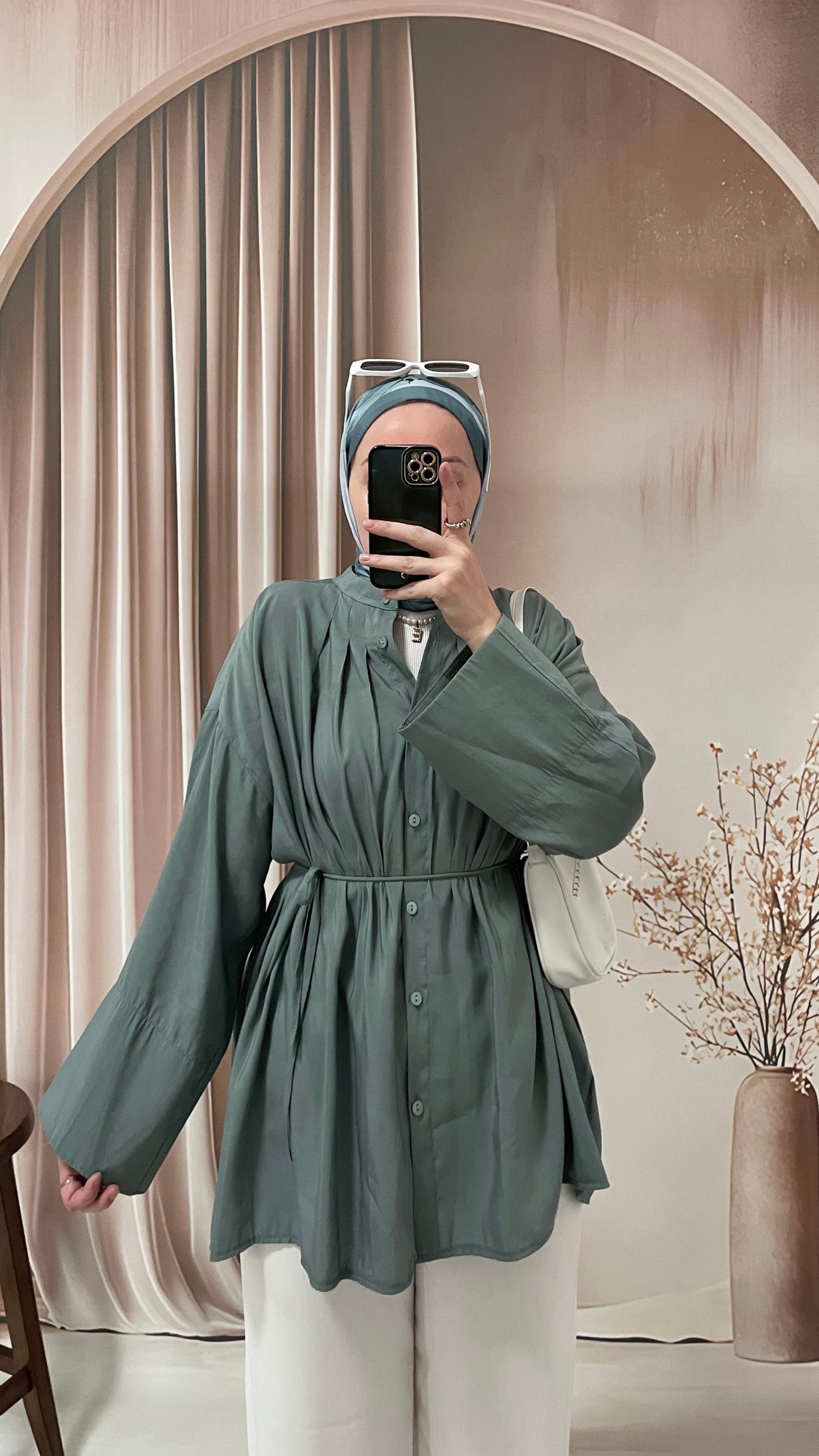 Manşet kol tencel gömlek Petrol Yeşili