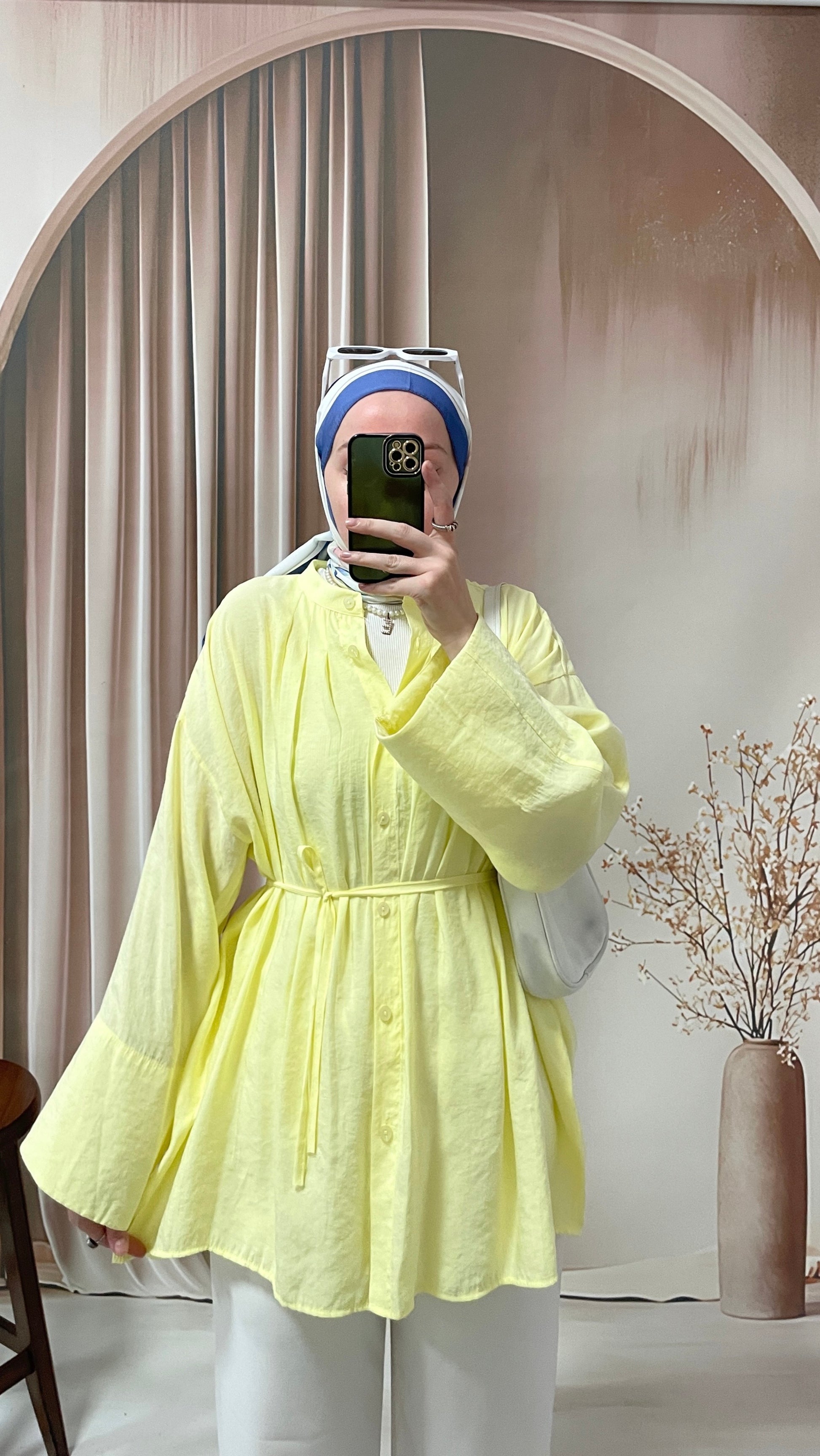 Manşet kol tencel gömlek Soft sarı