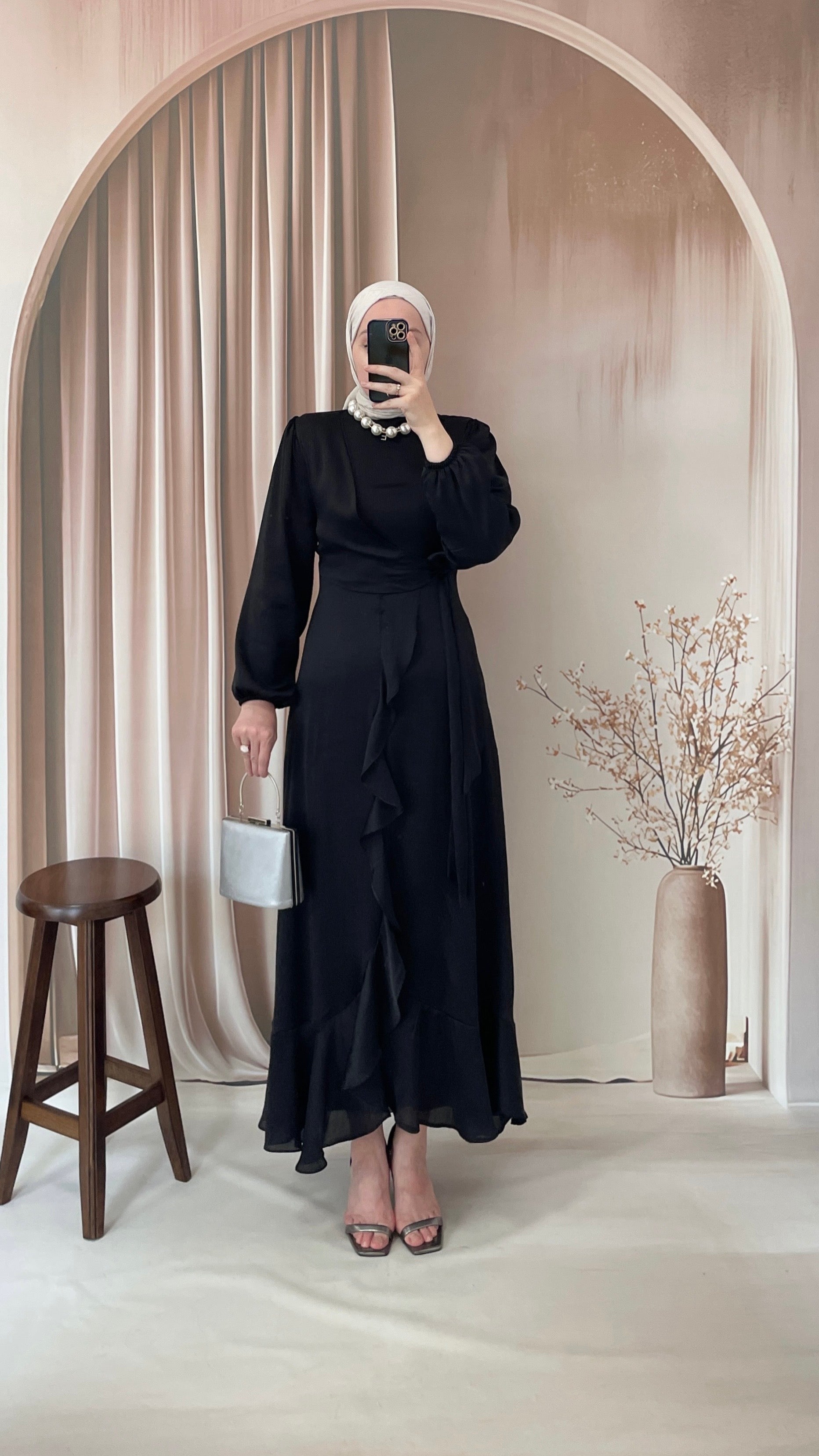 Nova Saten Elbise Siyah