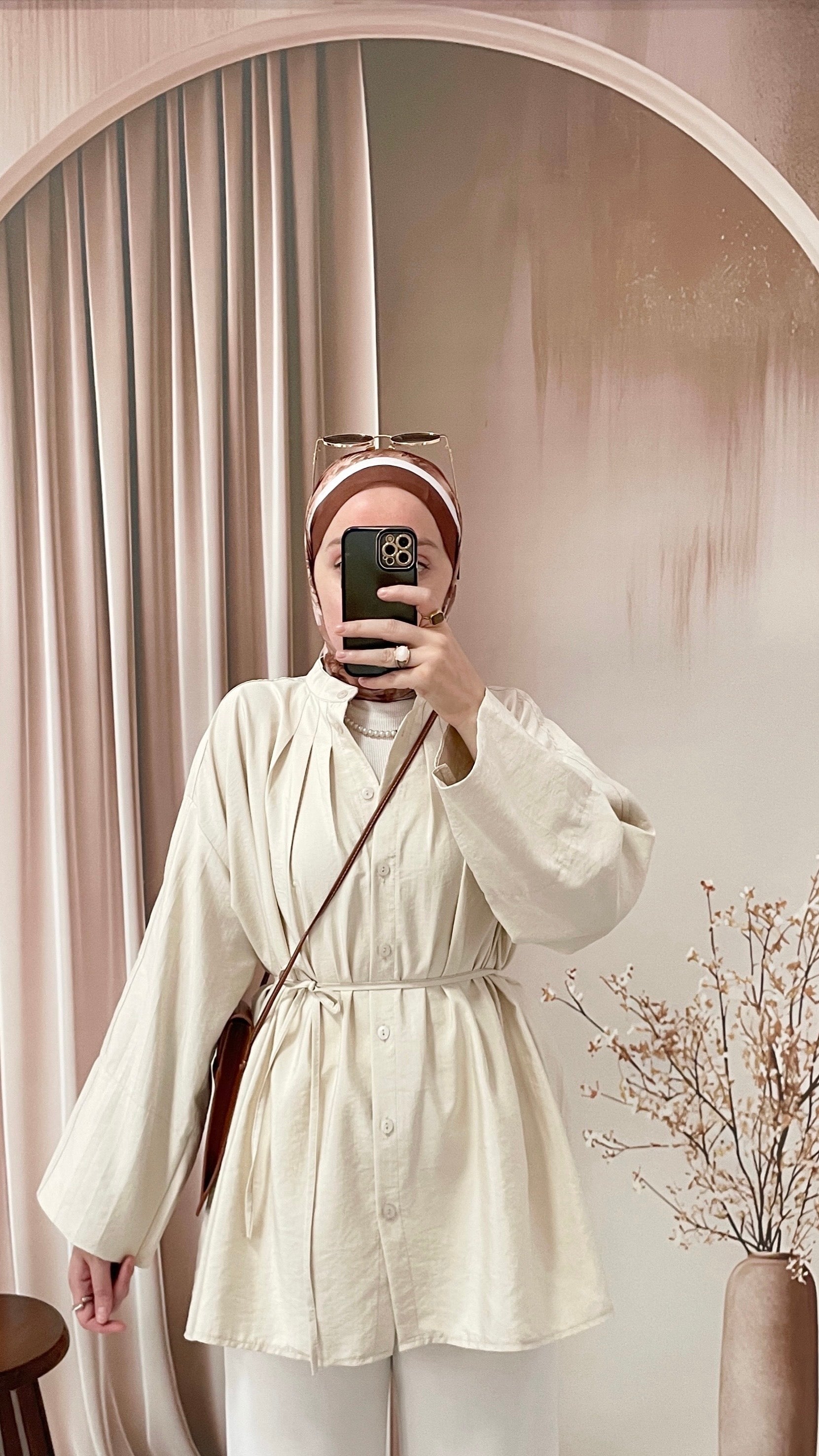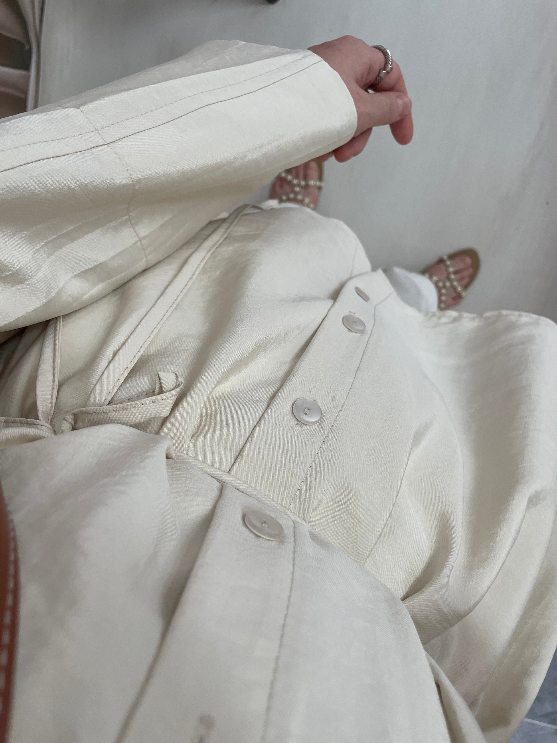 Önü Biyeli Manşet Kol gömlek Bej