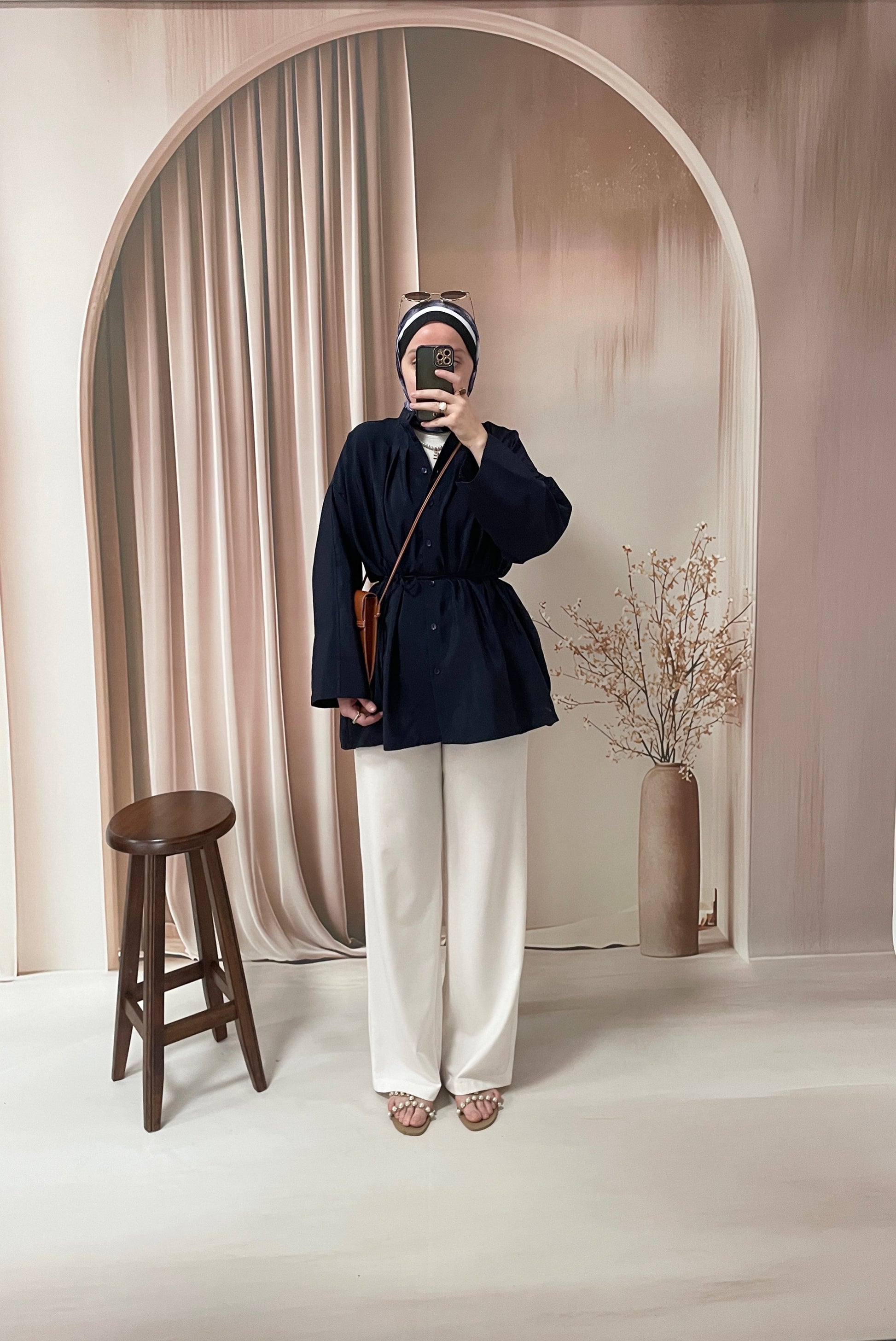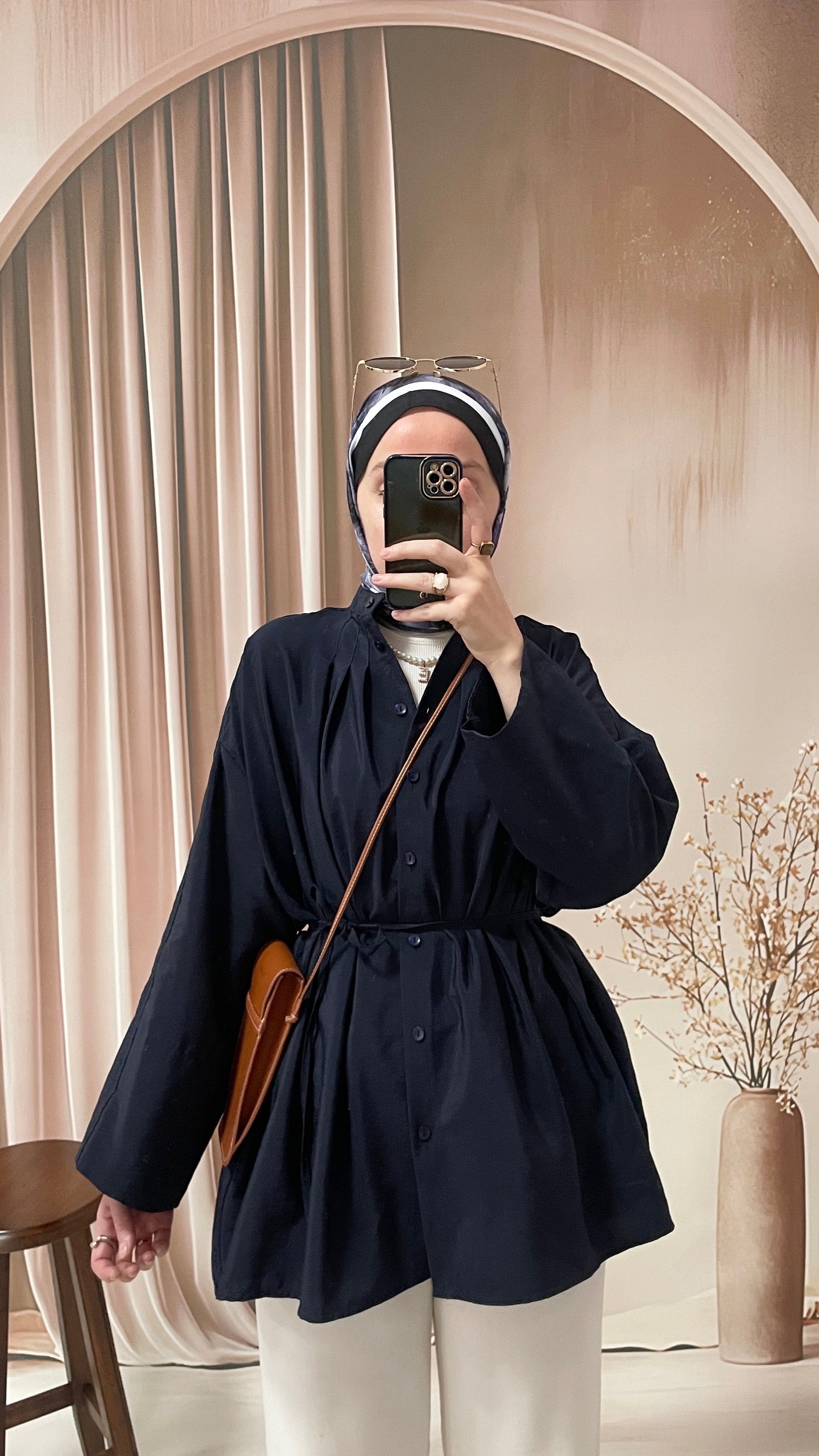 Önü Biyeli Manşet Kol gömlek Lacivert