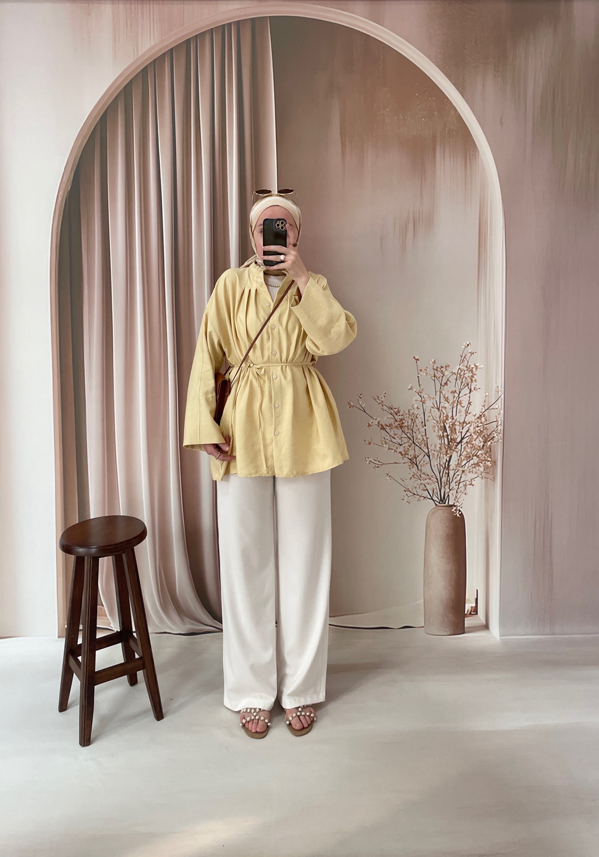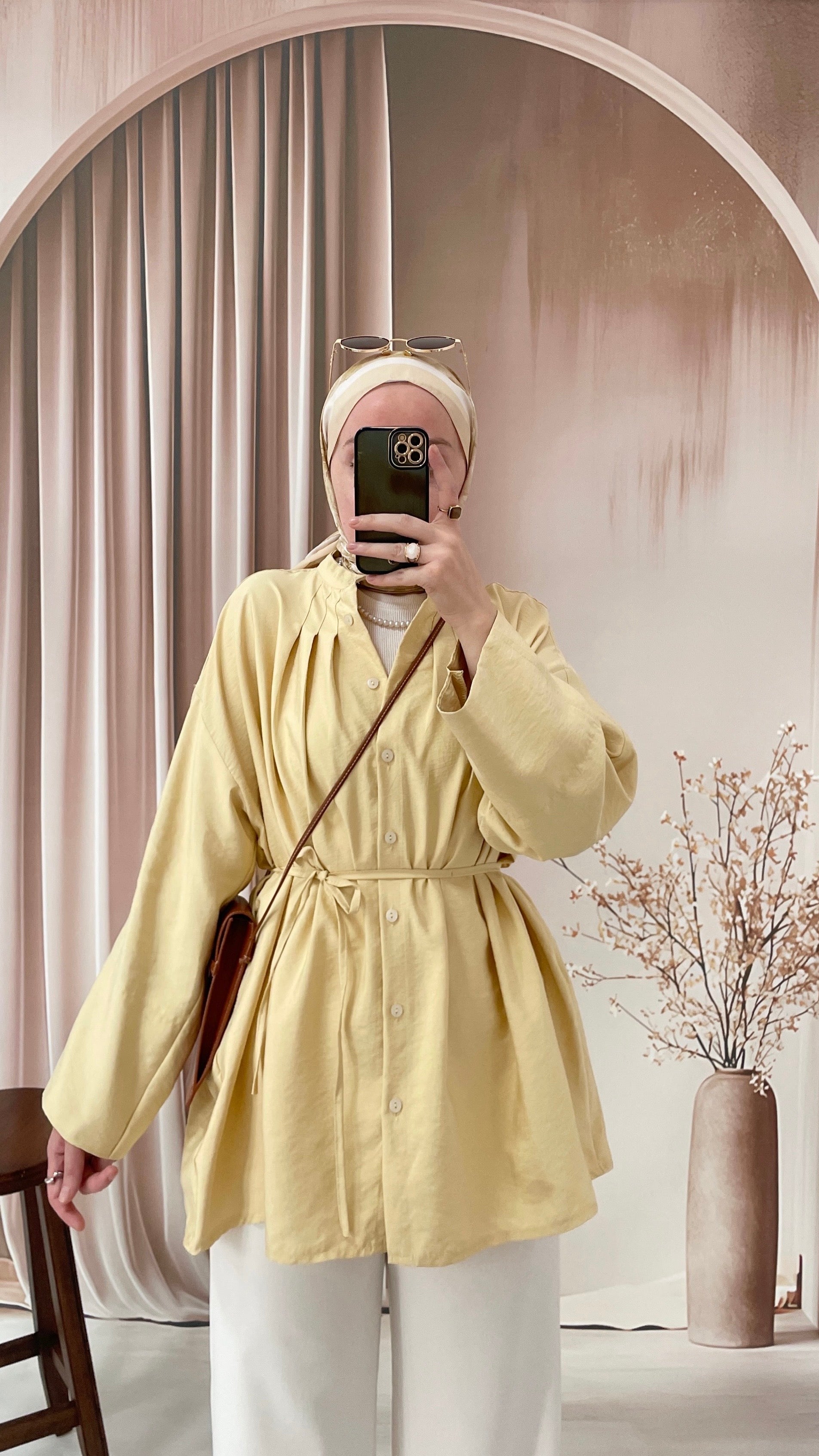 Önü Biyeli Manşet Kol gömlek Soft Sarı