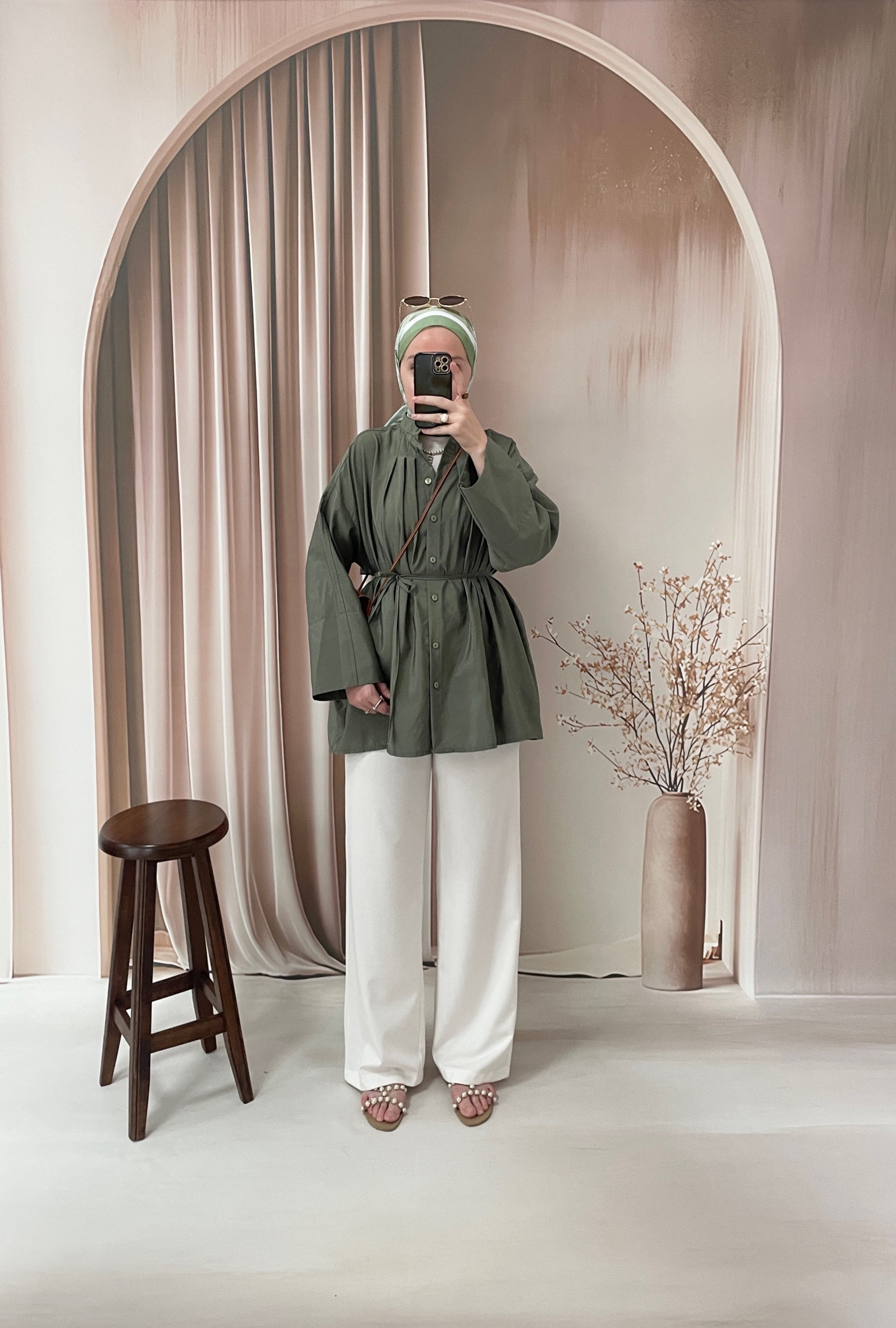 Önü Biyeli Manşet Kol gömlek Yeşil