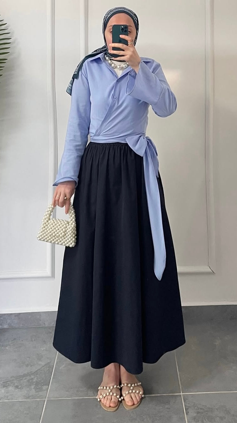 Poplin Kloş Etek Lacivert