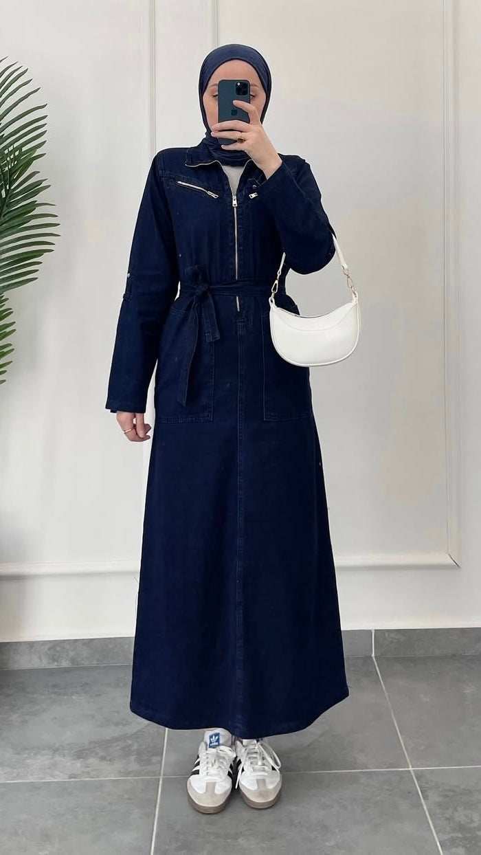 Premium Denim Elbise Lacivert