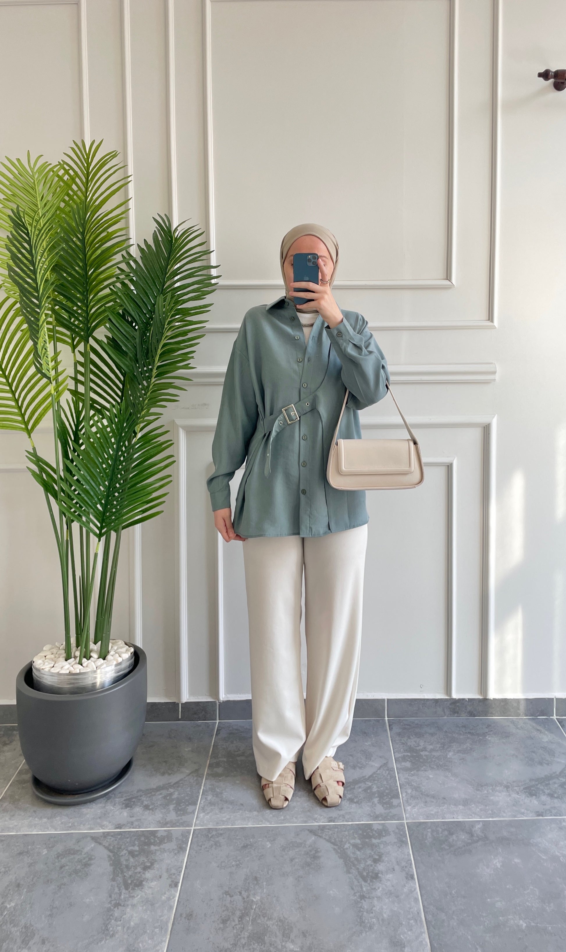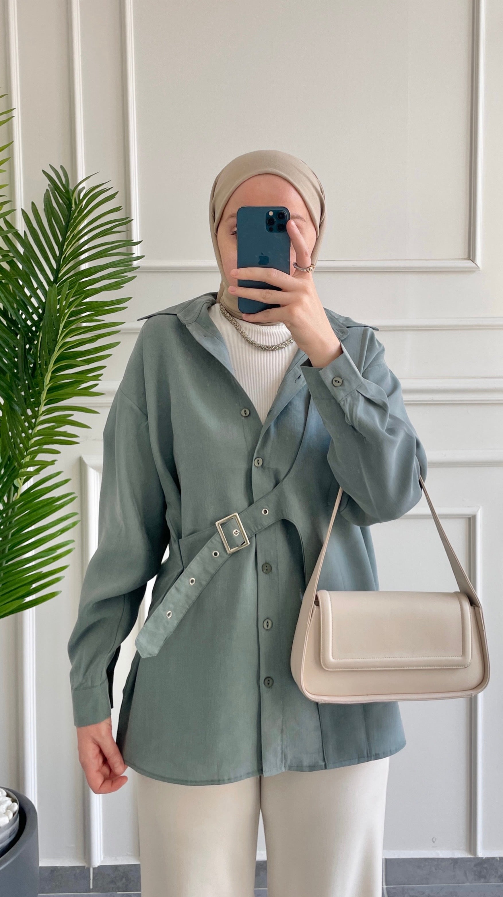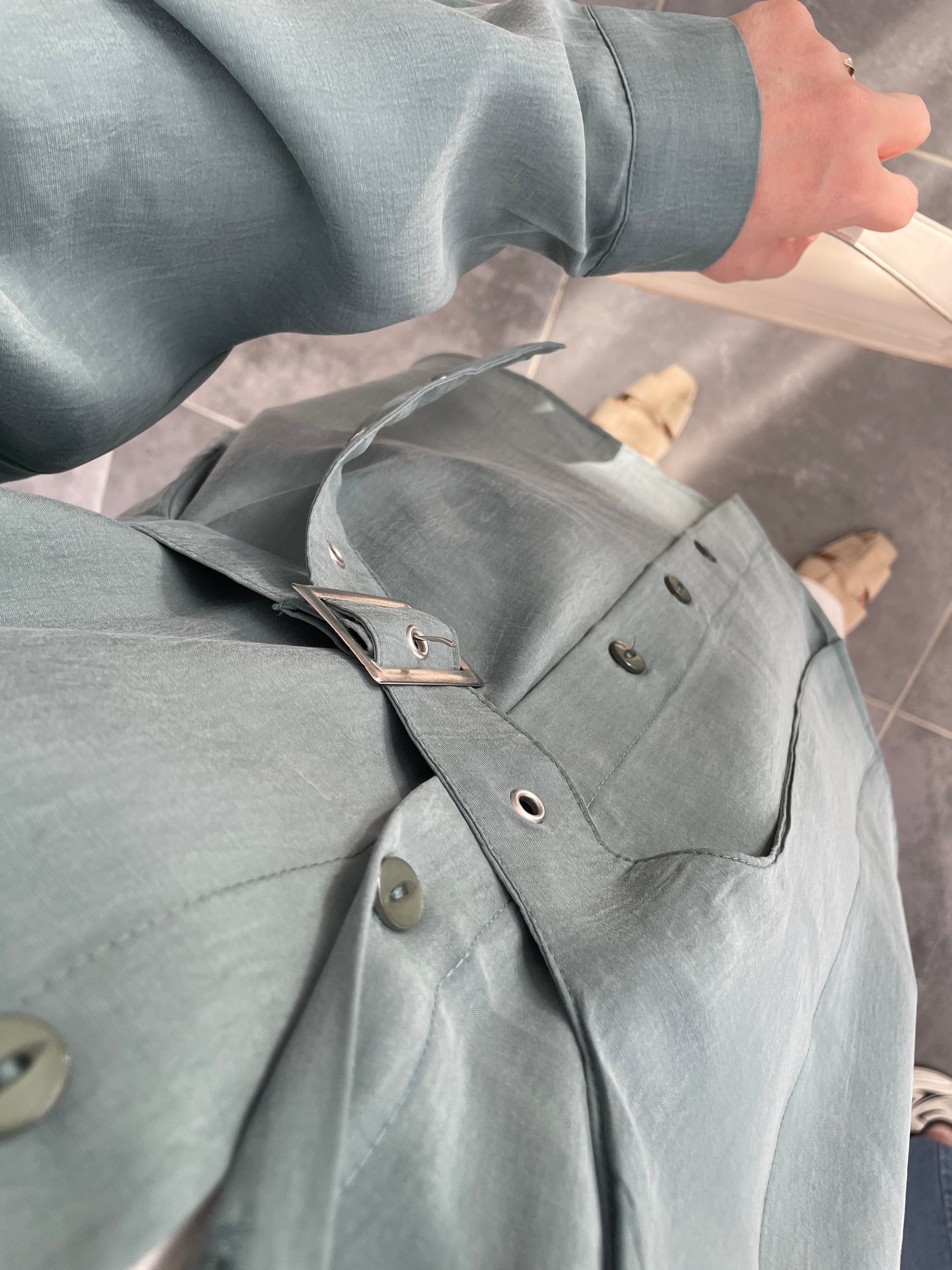 Premium Modal Kuşgözü Kemerli Gömlek Aqua