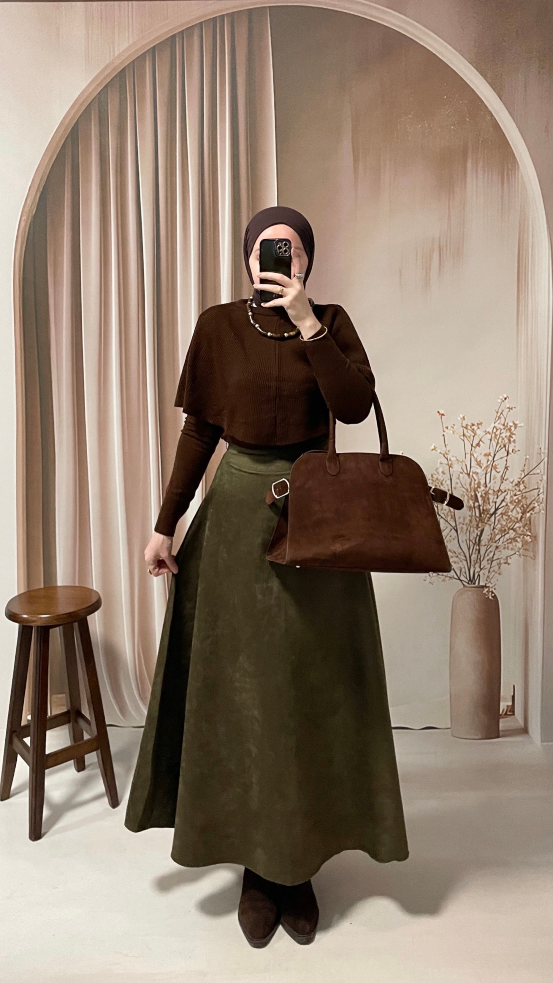 Premium Süet Çan Etek Haki Yeşil