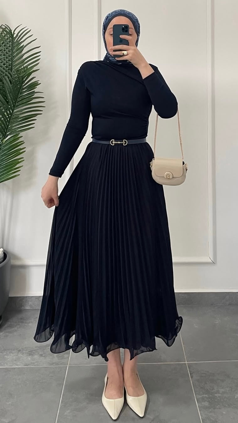 Şifon Piliseli Etek-Lacivert