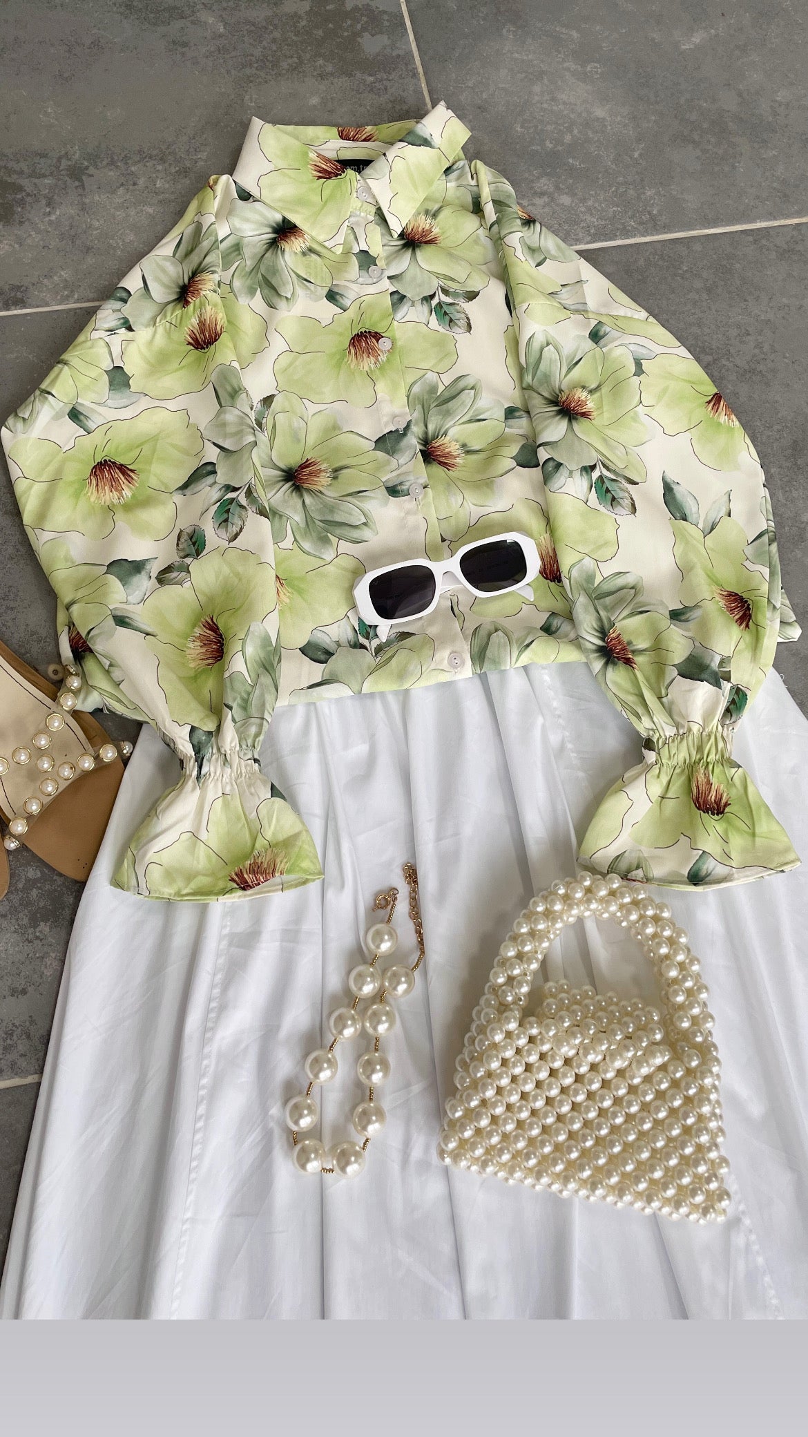 Sofia Kollar Volanlı Pamuk Saten Gömlek