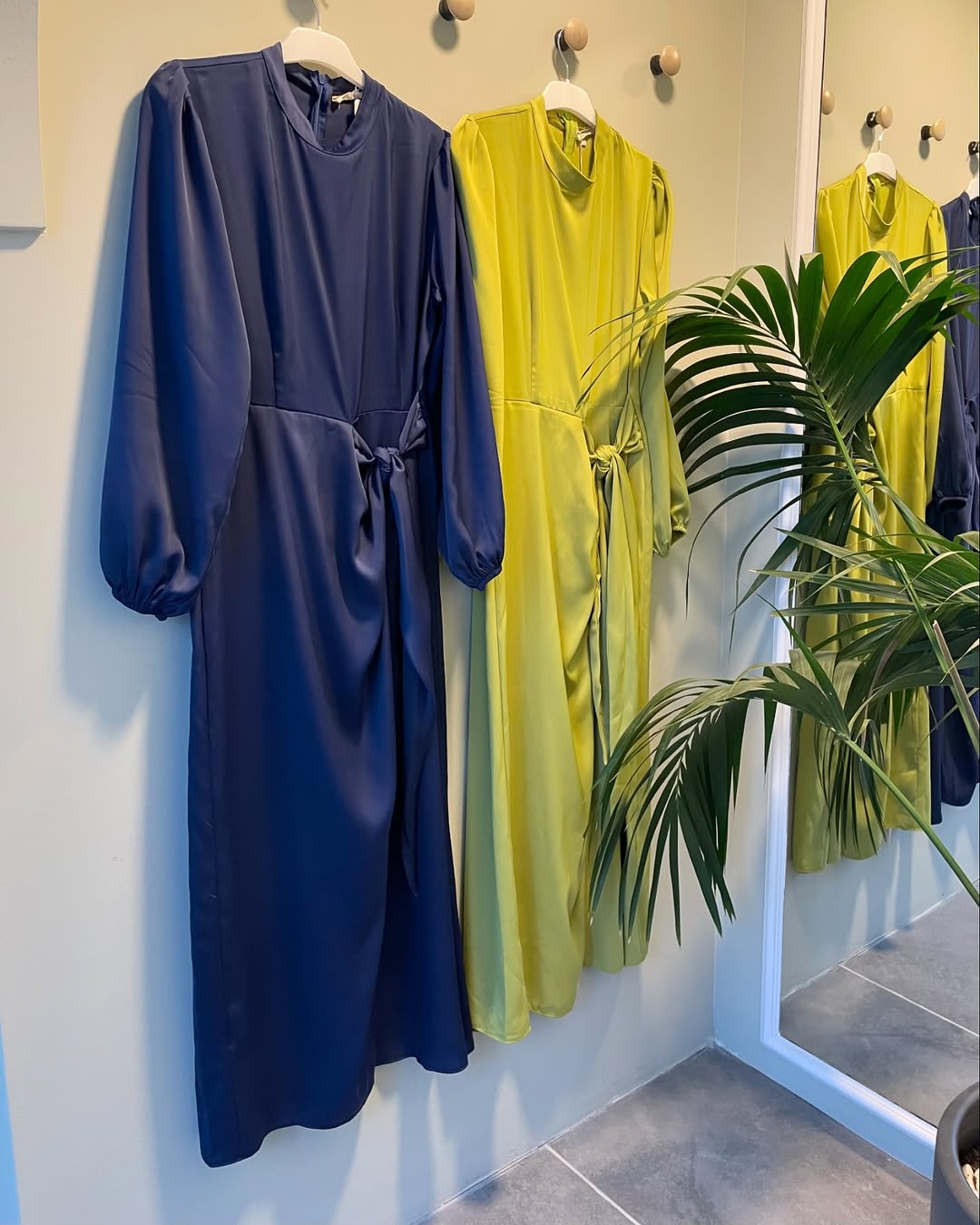 Şura bel bağlamalı saten elbise Lacivert