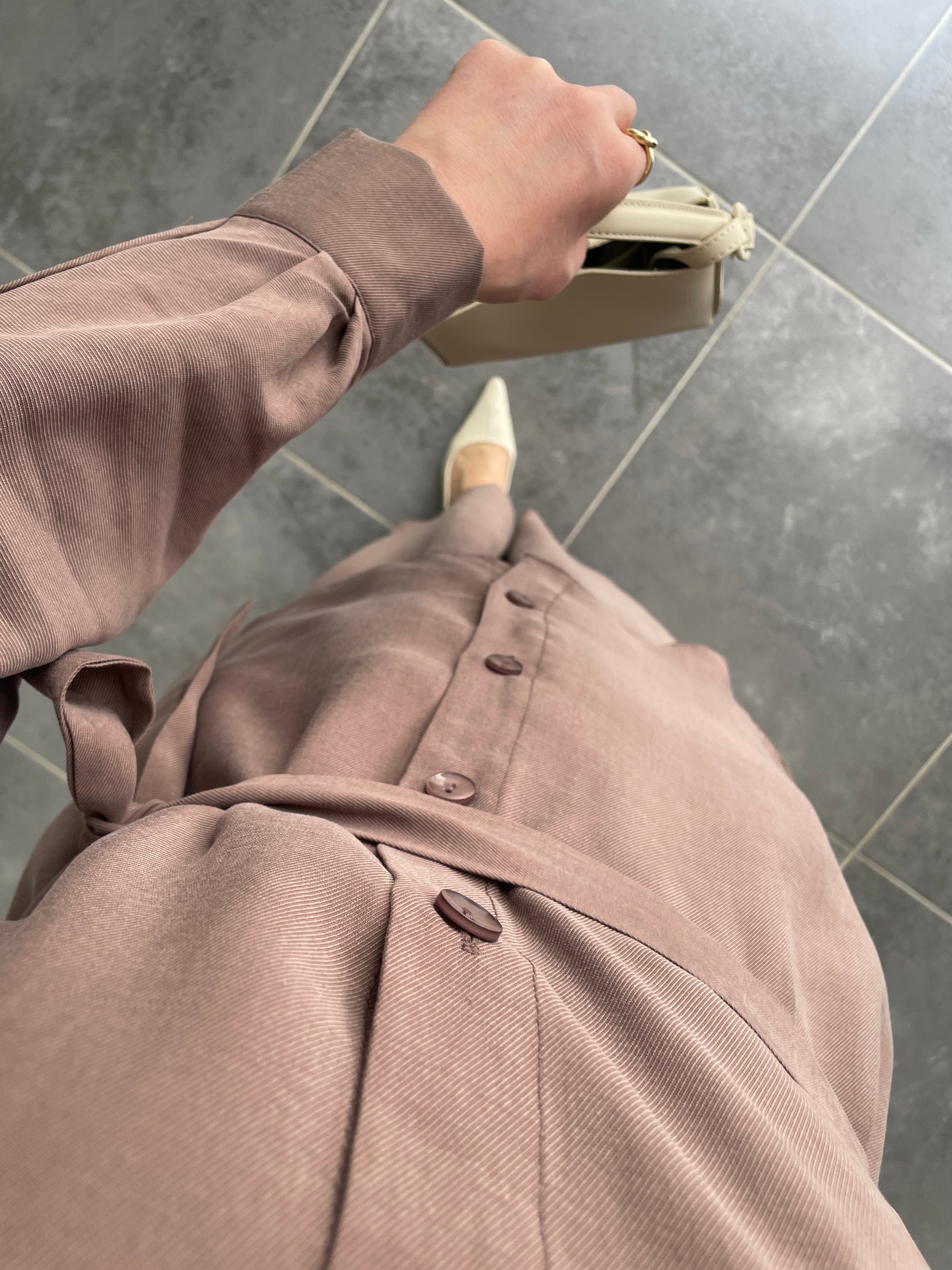 Tencel Keten Etek Pantolonlu Takım-Kahve